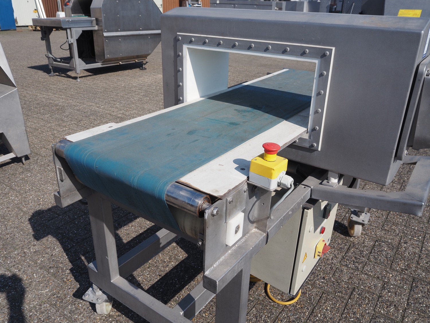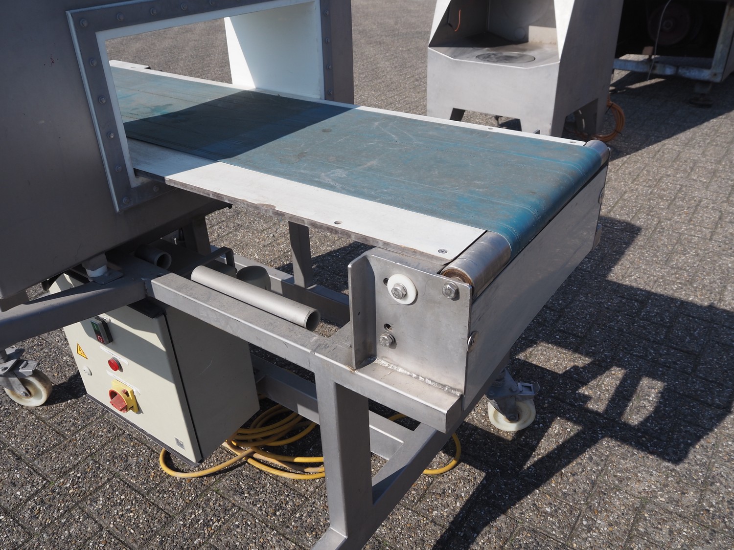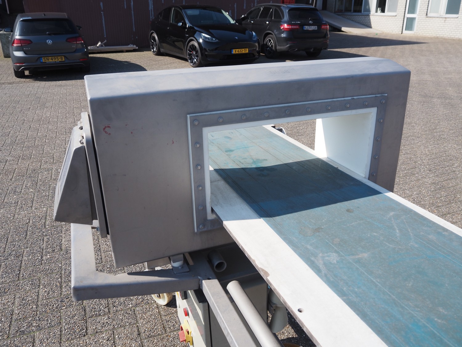 Mettler Toledo / Safeline metal detector, plastic belt, belt width: 370 mm, clearance: 500 mm x 210 mm, total dimensions: 1500 mm x 1100 mm x 1200 mm.