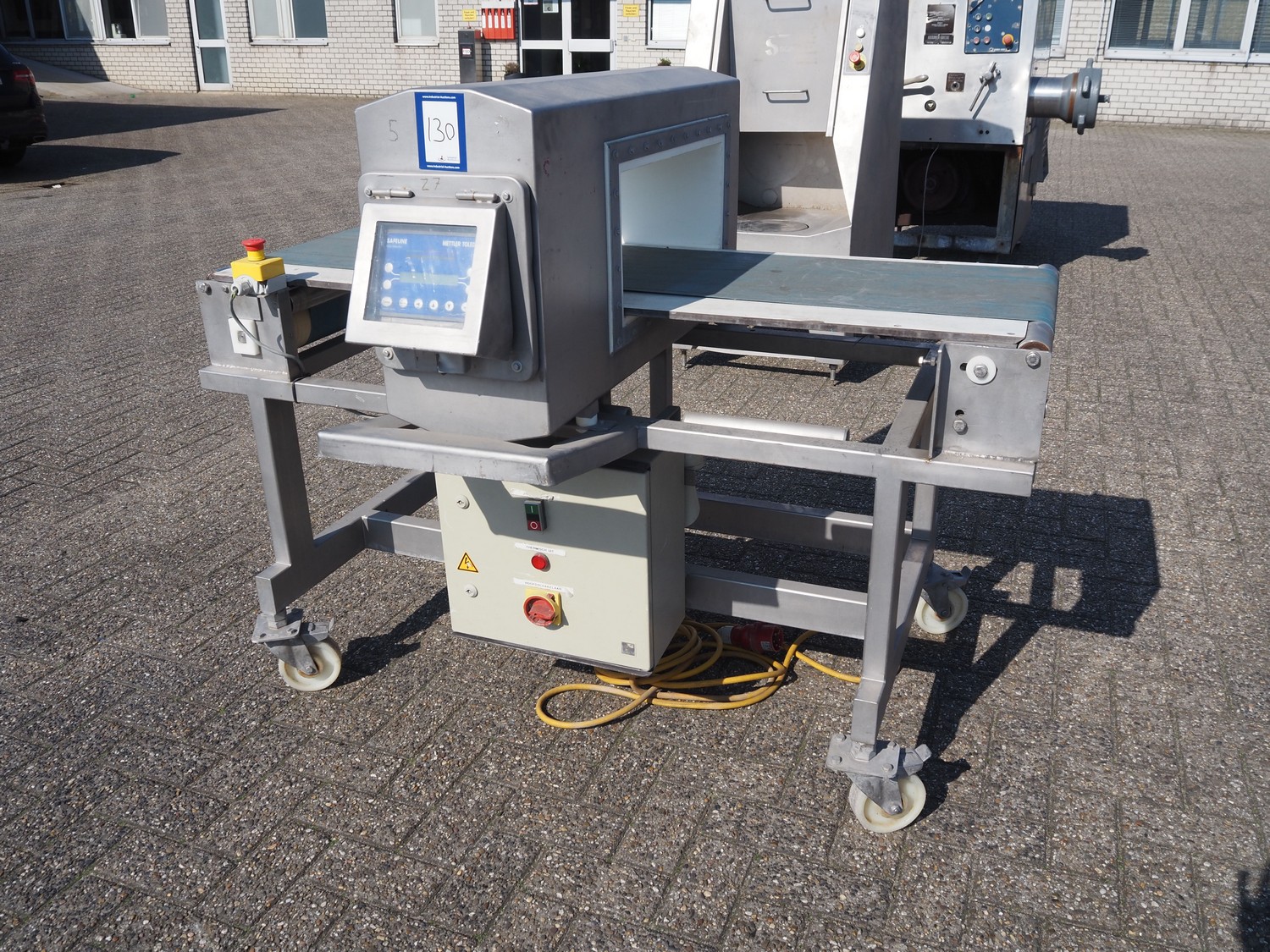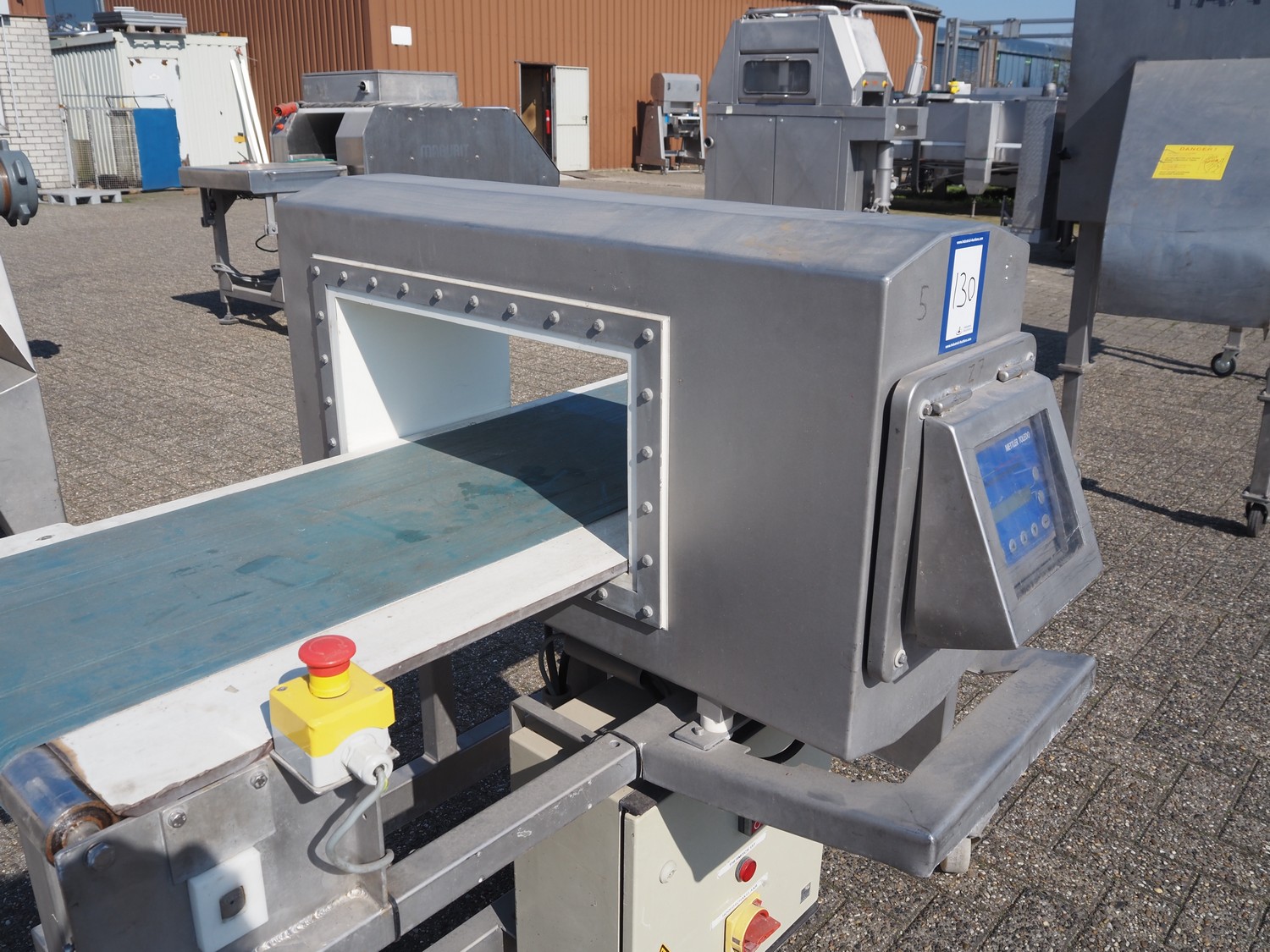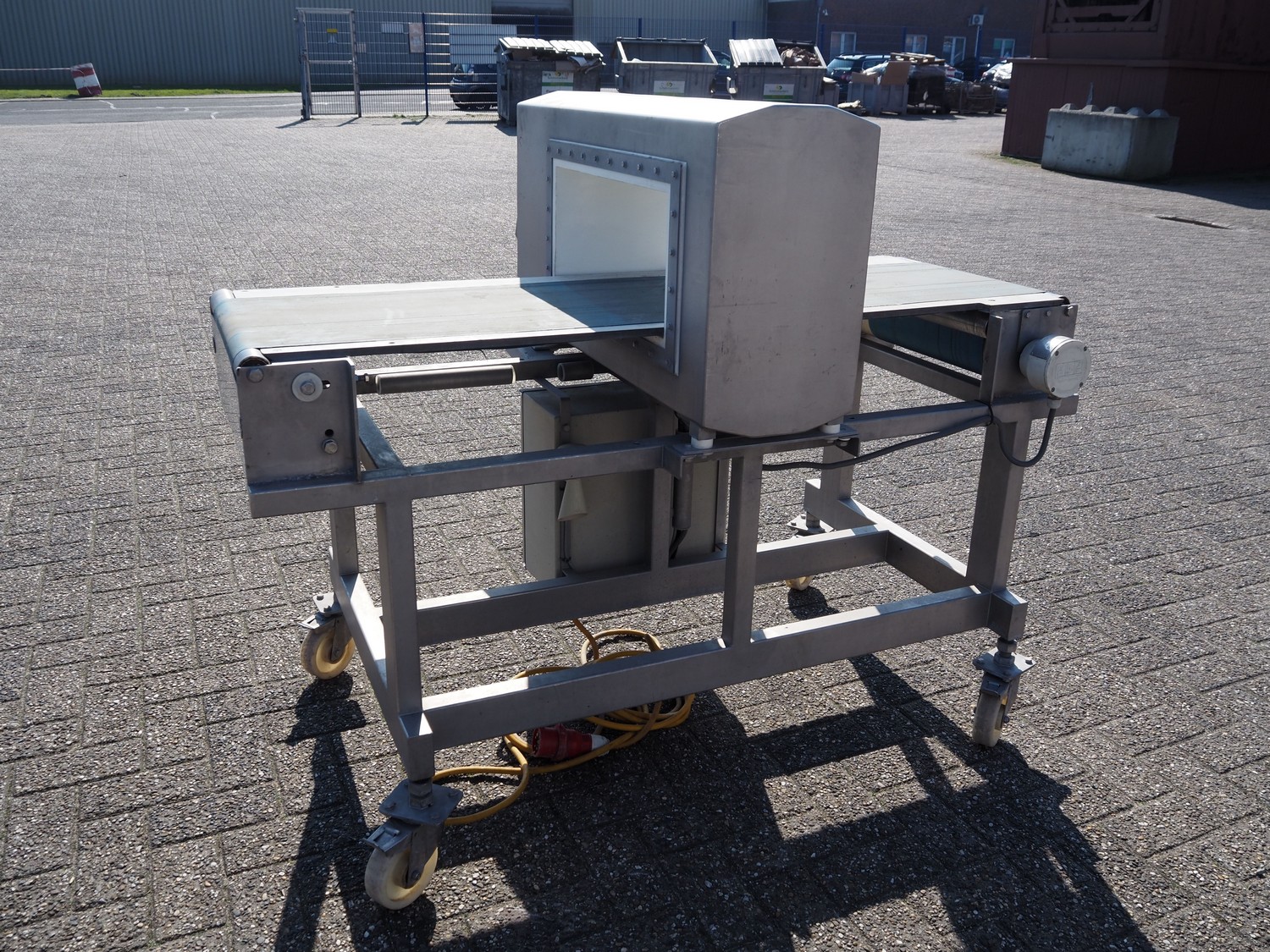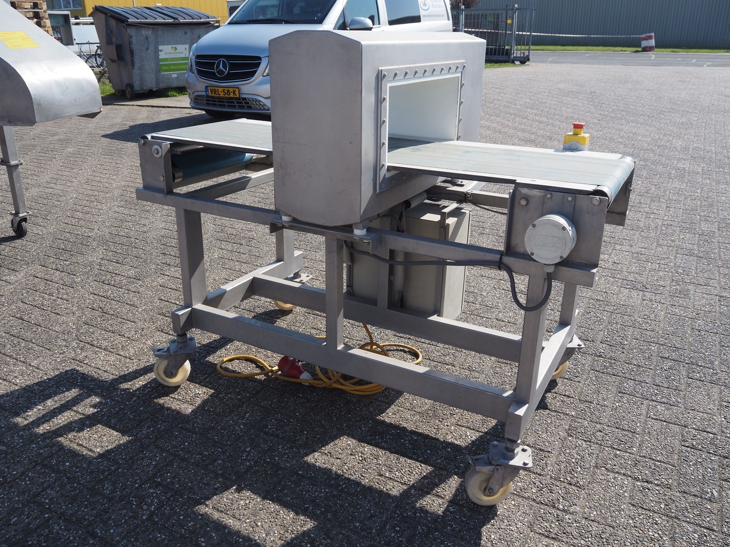 Mettler Toledo / Safeline metal detector, plastic belt, belt width: 370 mm, clearance: 500 mm x 210 mm, total dimensions: 1500 mm x 1100 mm x 1200 mm.