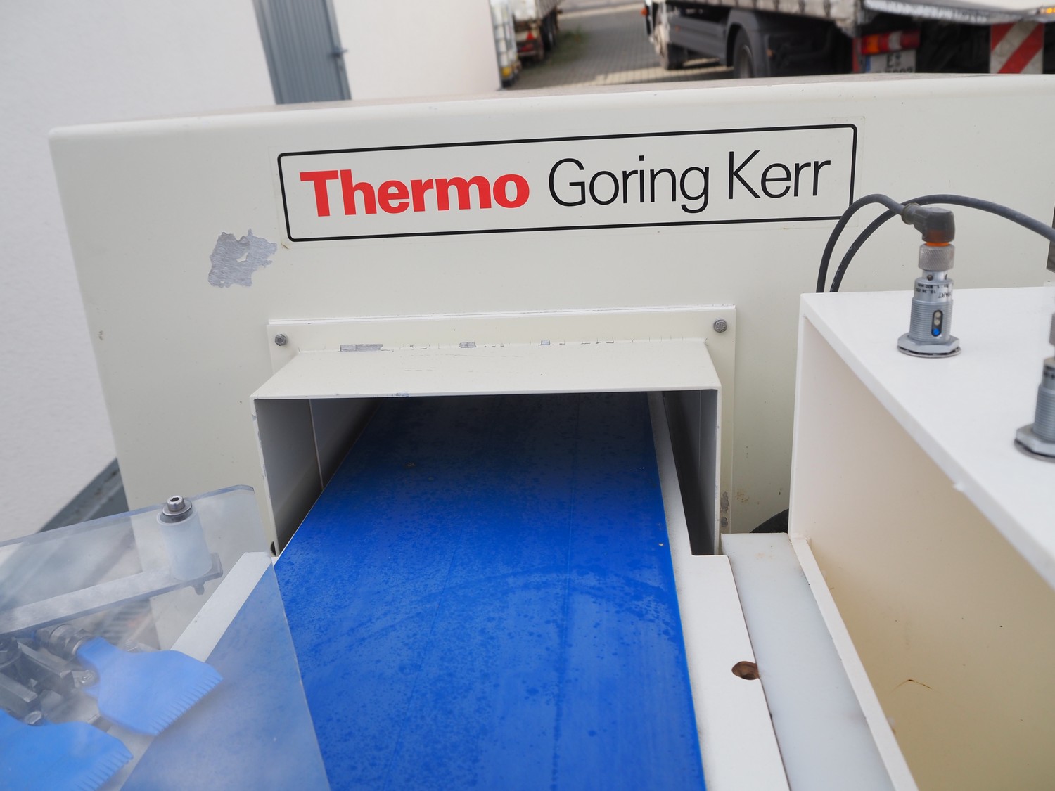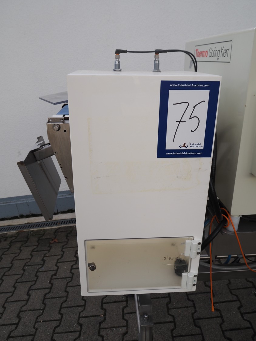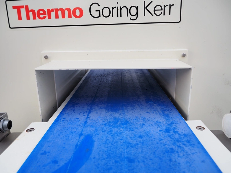 Thermo Electron Corporation metal detector, model: SPECGKDSP3NAS, serial number: 6277, year of construction: 2005, plastic belt, belt width: 250 mm, clearance: 300 mm x 100 mm, total dimensions: 1400 mm x 1100 mm x 1500 mm.