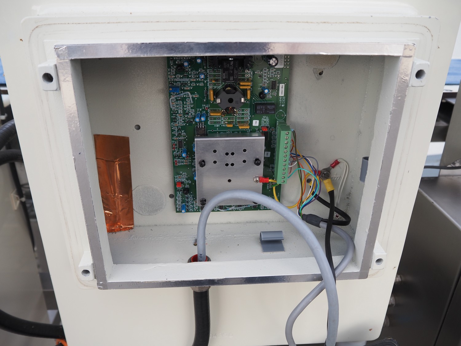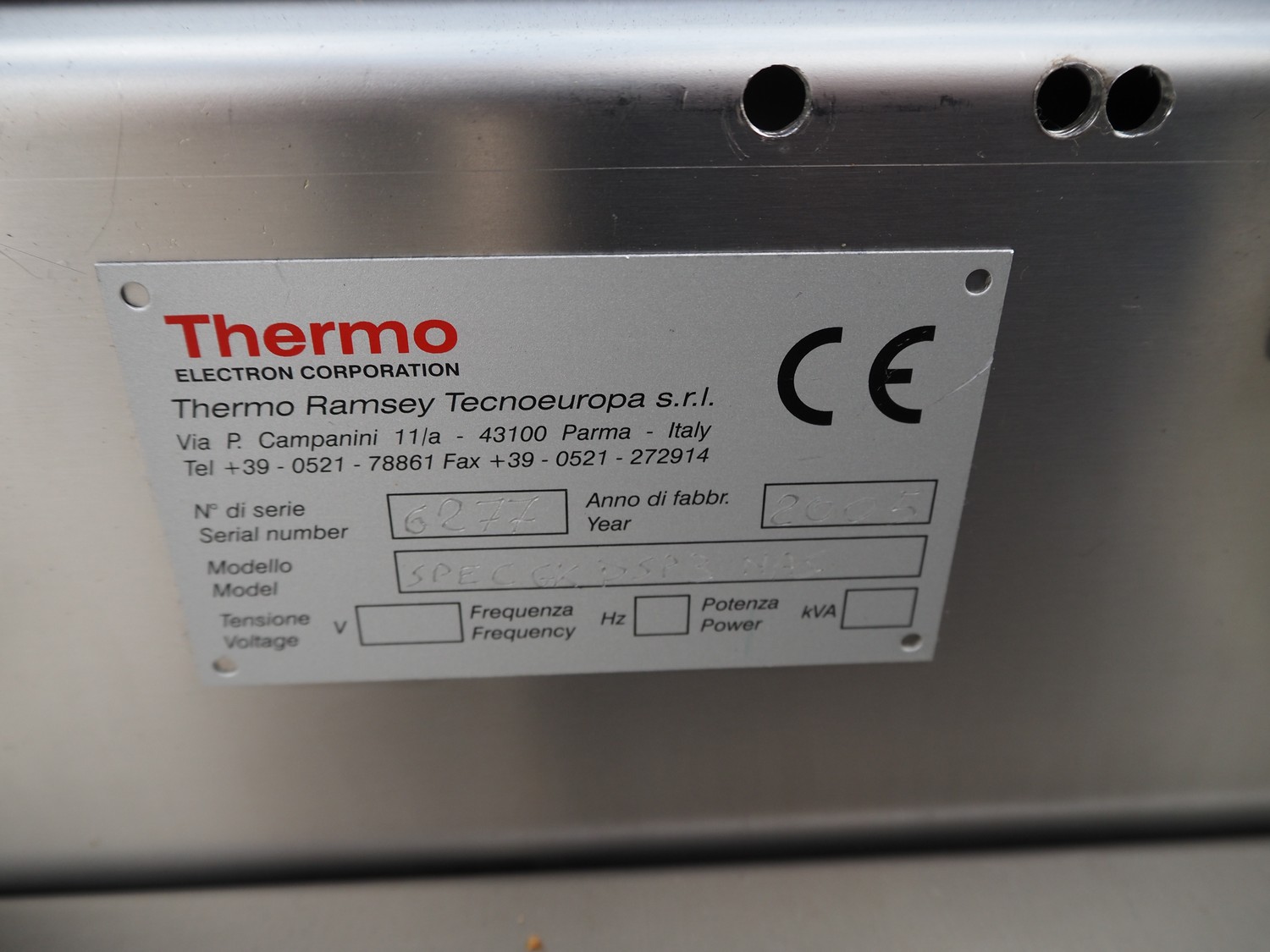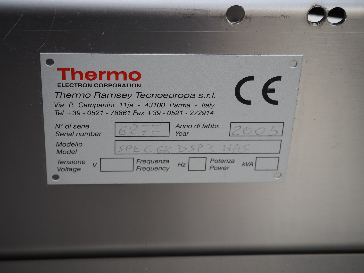Thermo Electron Corporation metal detector, model: SPECGKDSP3NAS, serial number: 6277, year of construction: 2005, plastic belt, belt width: 250 mm, clearance: 300 mm x 100 mm, total dimensions: 1400 mm x 1100 mm x 1500 mm.