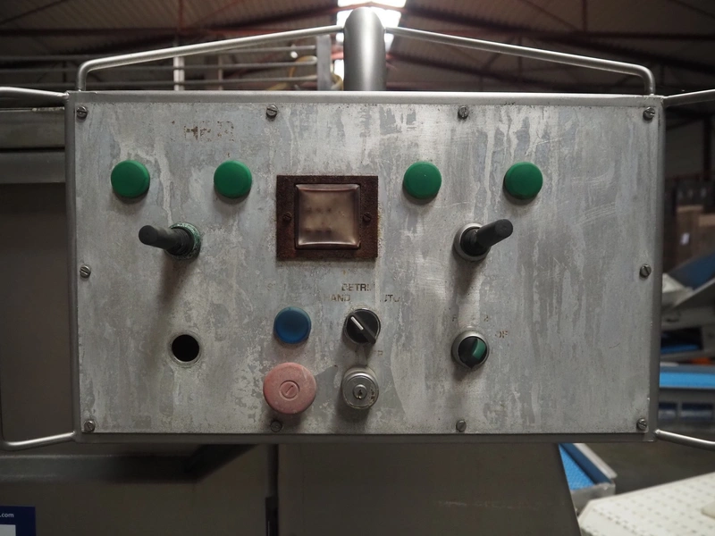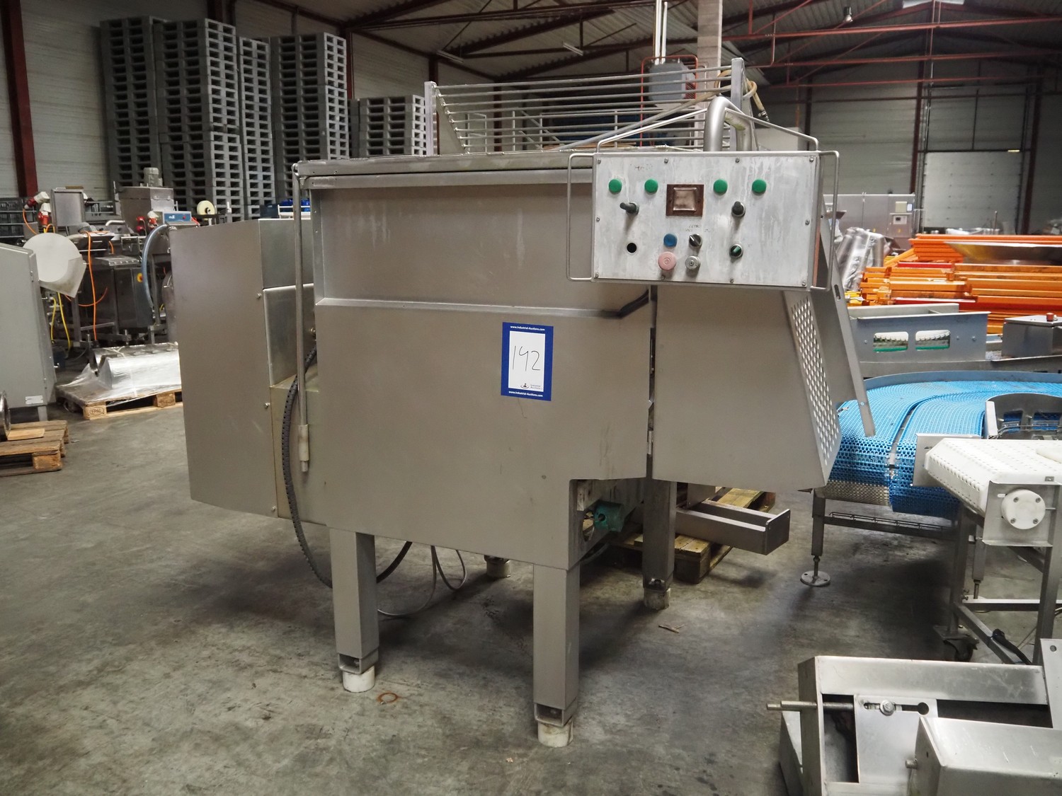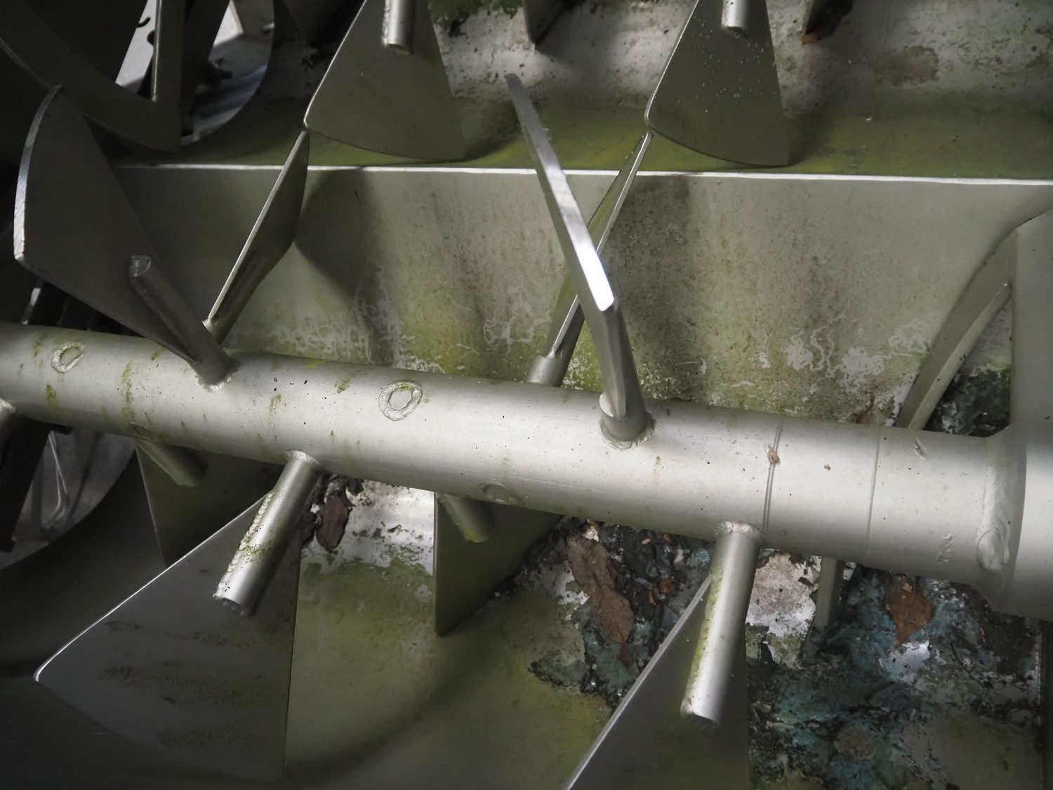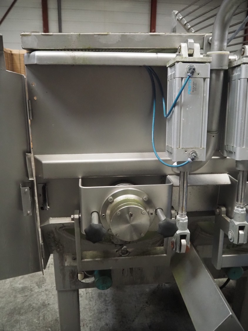 Double shaft paddle mixer, inside dimensions: 1000 mm x 1000 mm x 700 mm, total dimensions: 1400 mm x 2000 mm x 2000 mm.