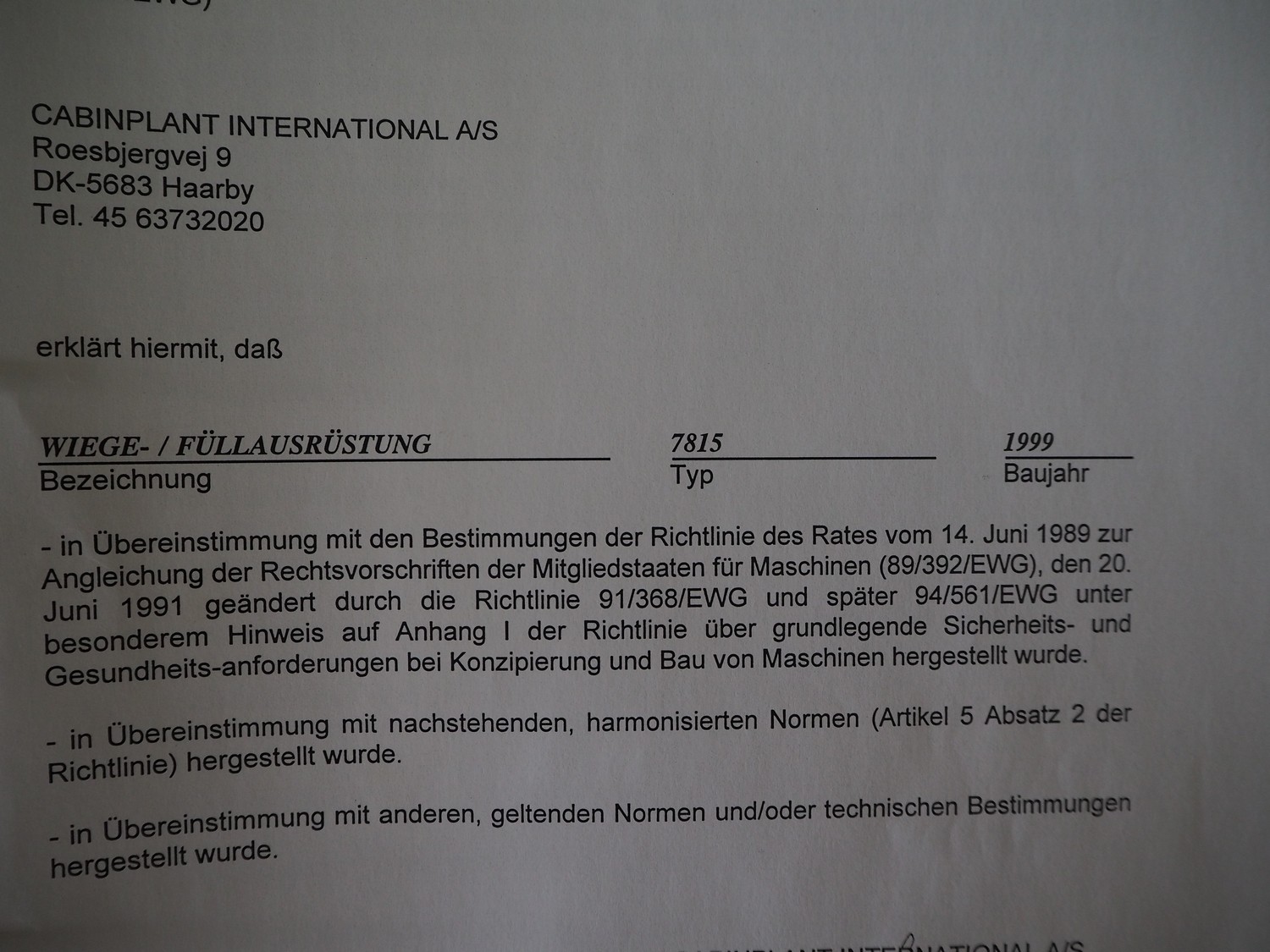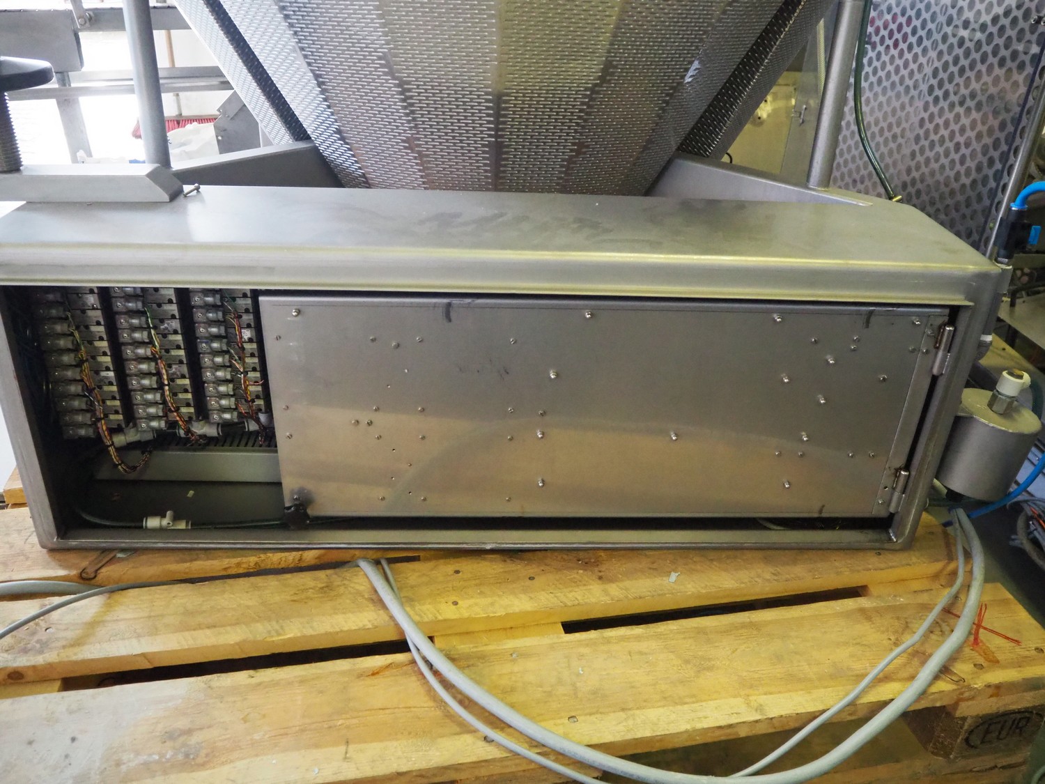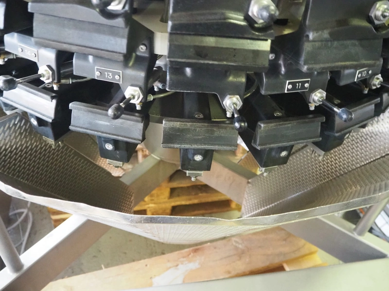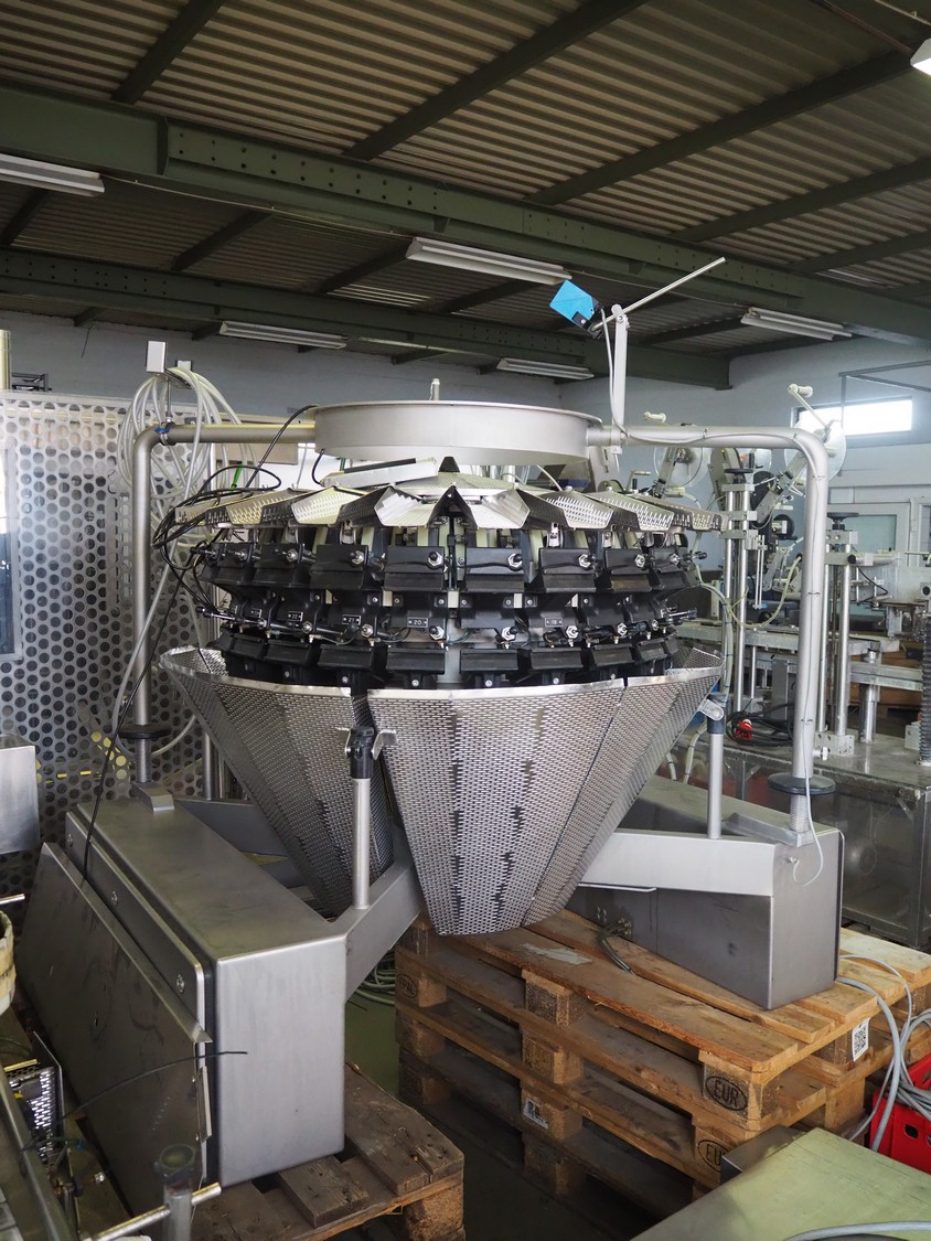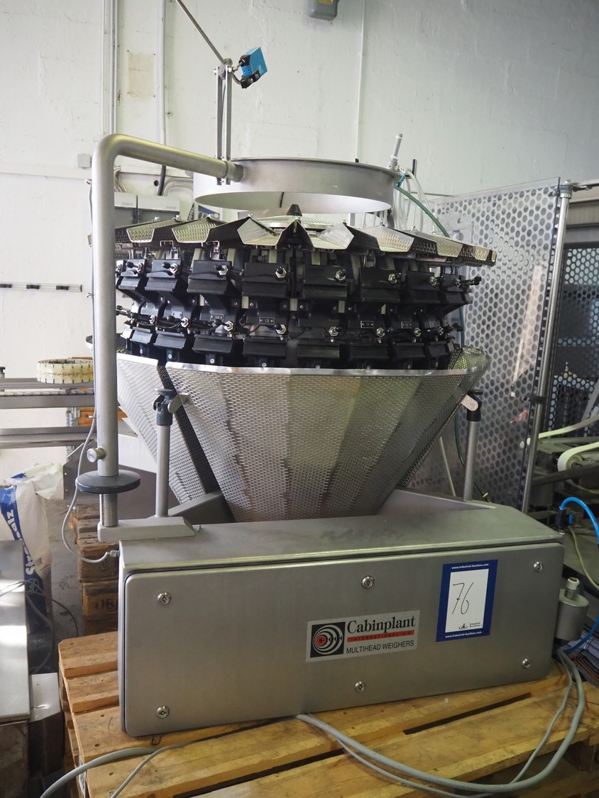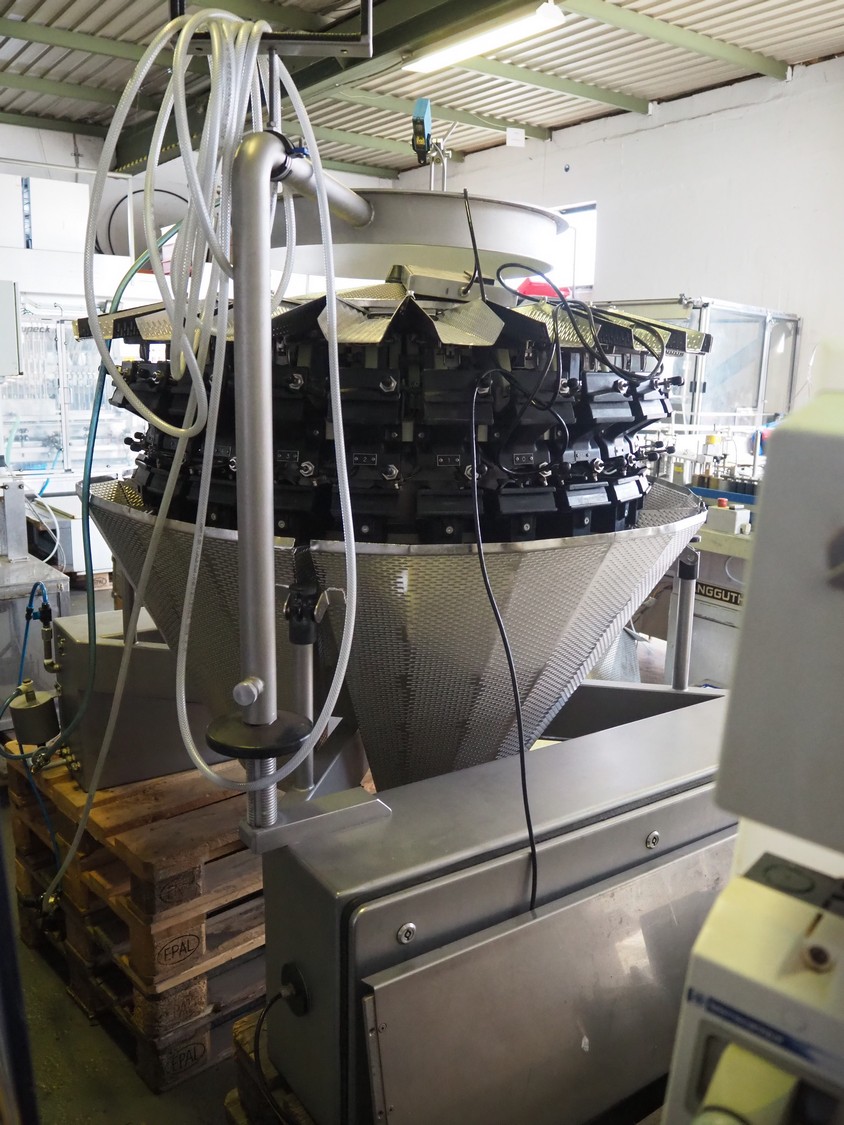 Cabinplant 24-heads multihead weigher, type: 7815, year of construction: 1999, weight: 1325 kg, dimensions: 1500 mm x 1250 mm x 1850 mm. Including switch cabinet, 2 pallets with parts and weighing baskets, dimensions weighing basket: 95 mm x 130 mm.