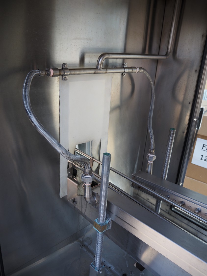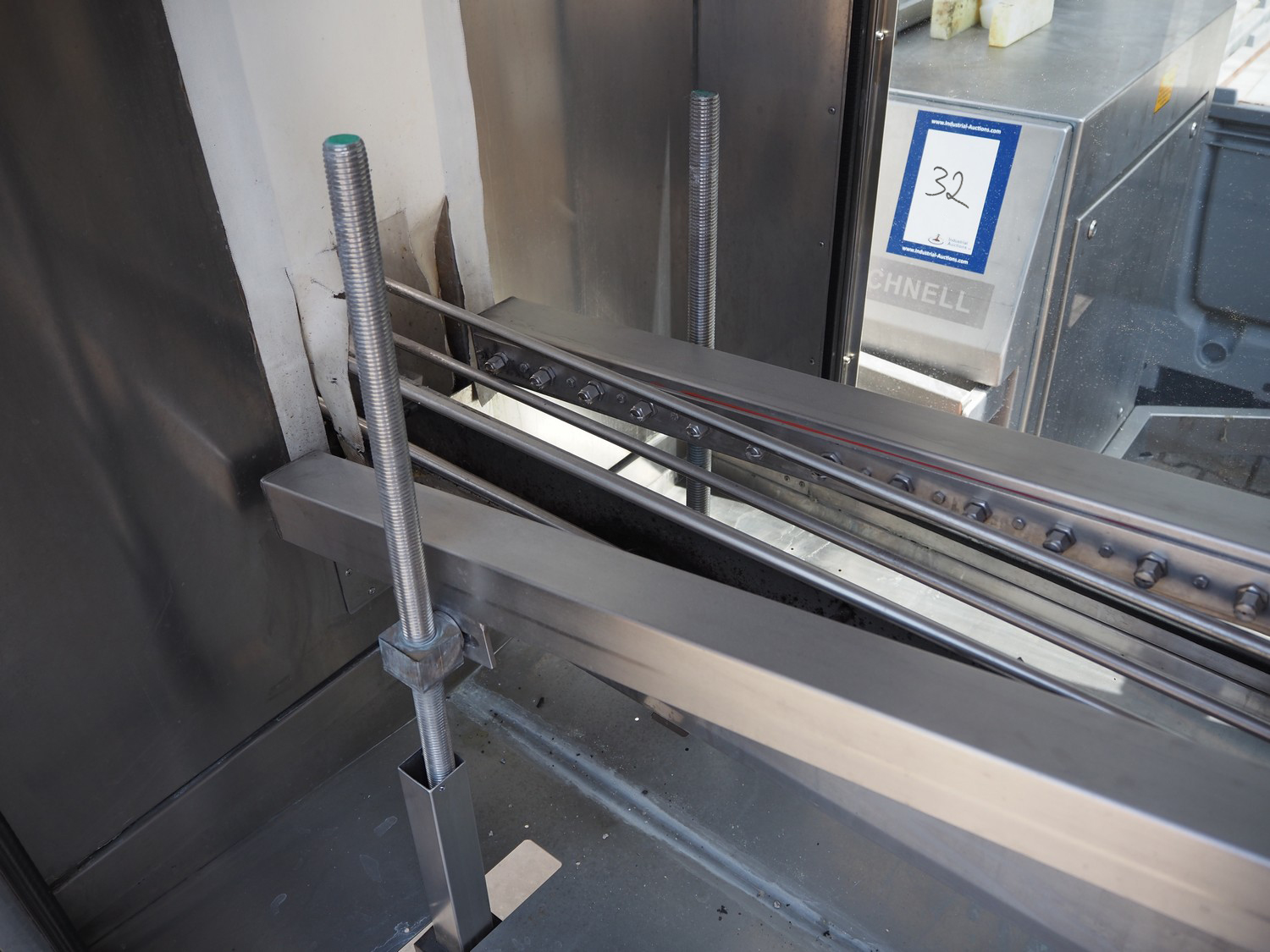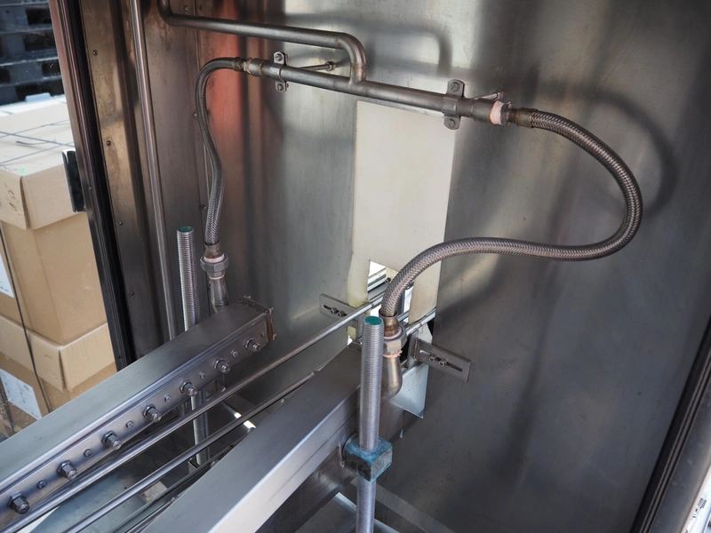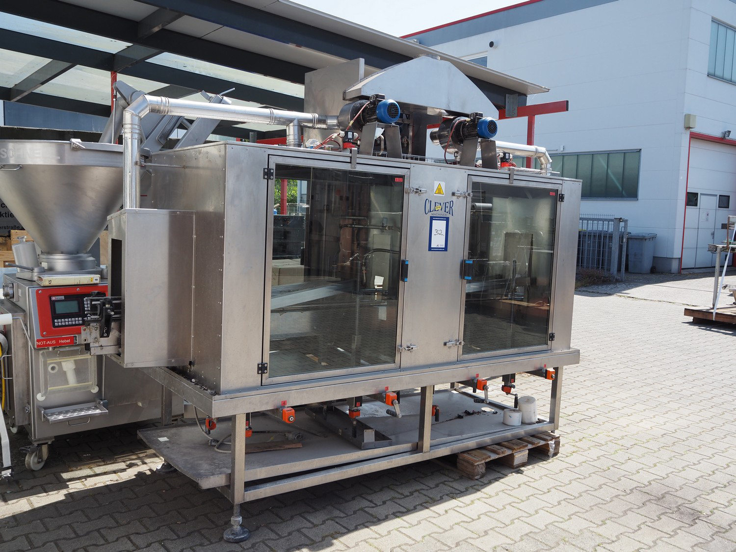 Clever Machines shrink tunnel, type: STJ 2, serial number: 0147 – 2009, year of construction: 2009, 400 V, 50 Hz, 3 kW, weight: 1200 kg, belt width: 85 mm, film width: 105 mm, steam heated, V.I.M.E.C. blowers, total dimensions: 4200 mm x 1100 mm x 2310 mm.
