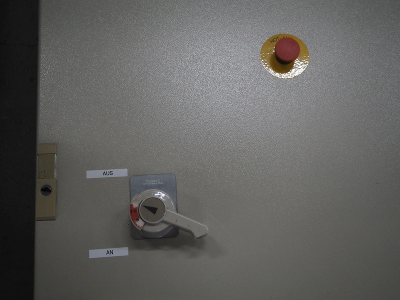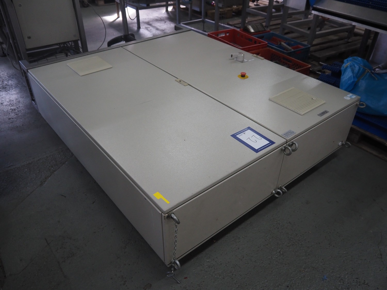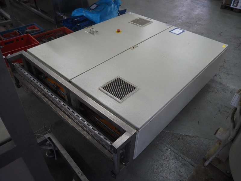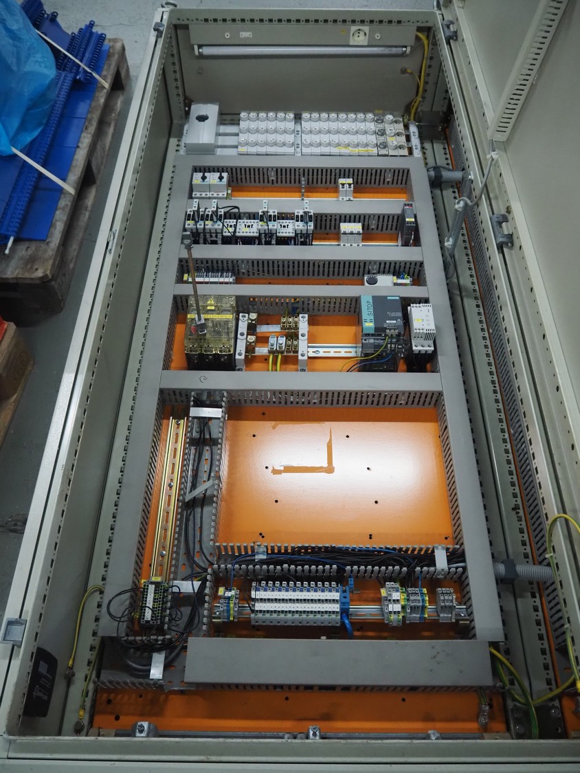 Steel switch cabinet, dimensions: 2100 mm x 1600 mm x 530 mm.