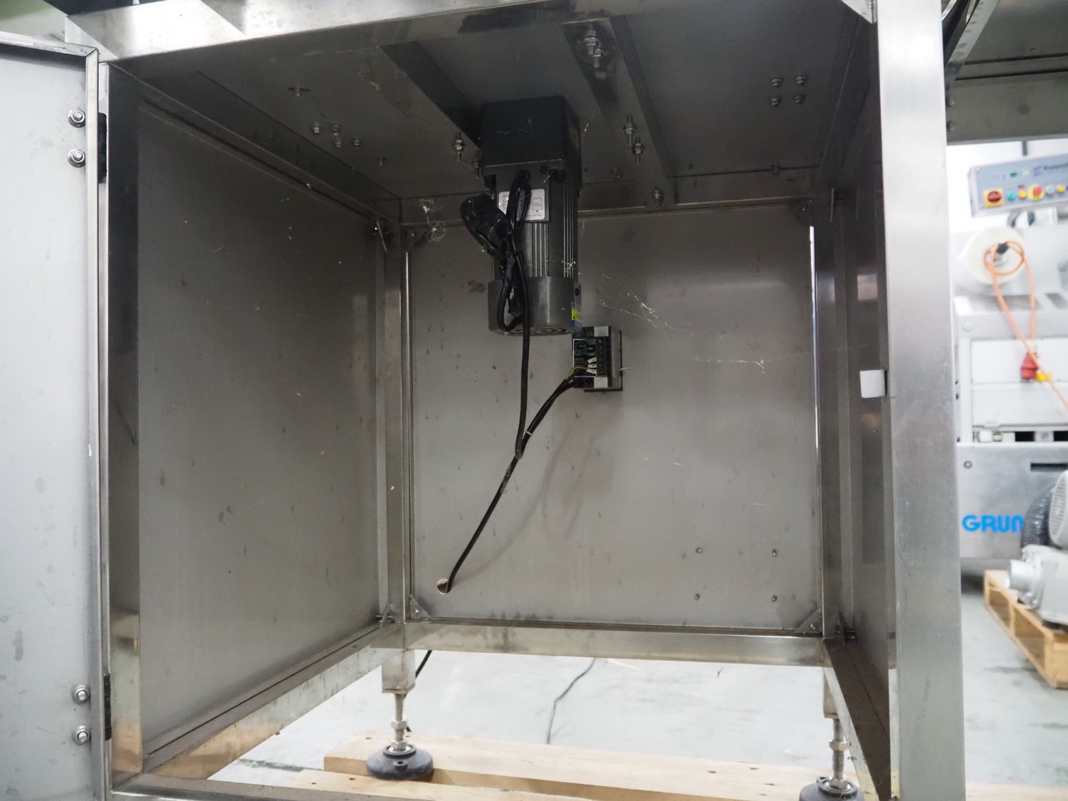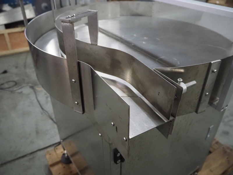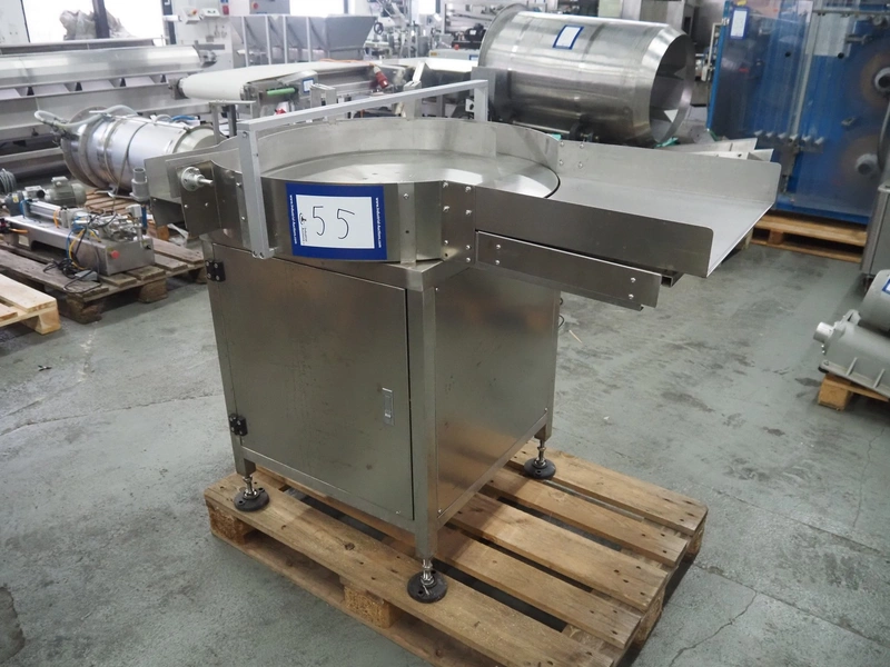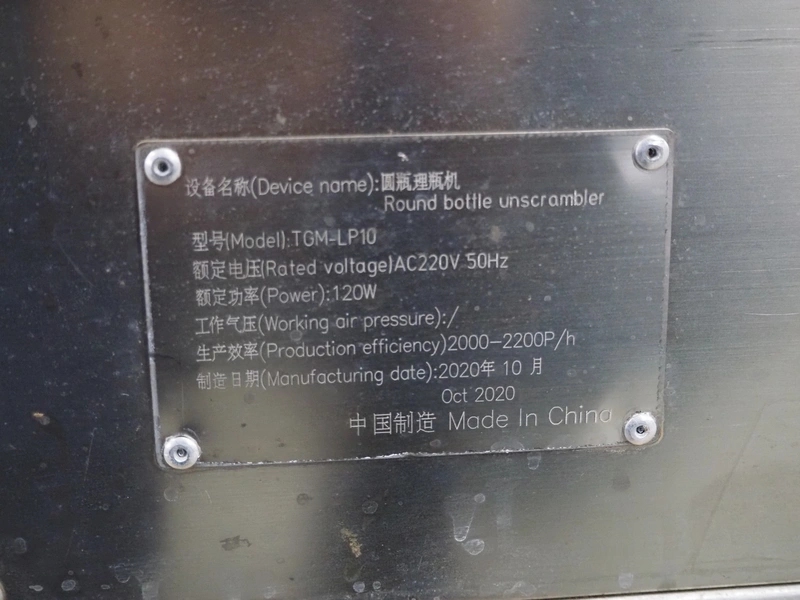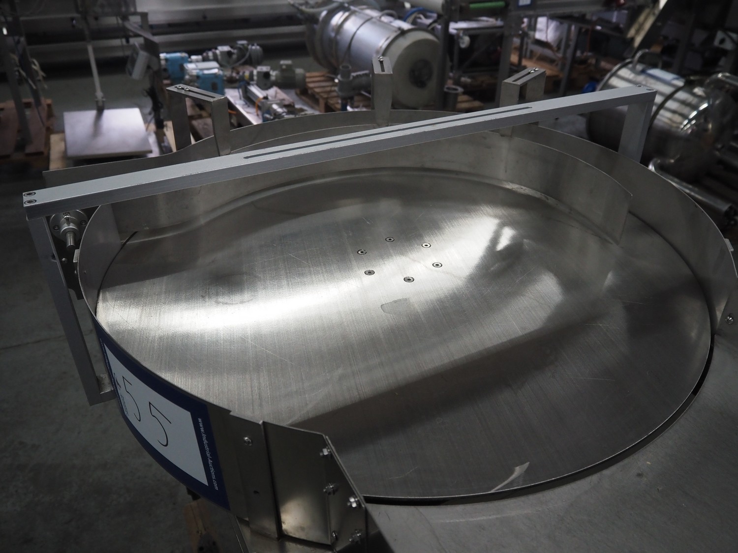 S/s turning table, type: Round bottle unscrambler, model: TGM-LP10, year of construction: 10-2020, 220 V, 50 Hz, 120 W, table diameter: 800 mm, total dimensions: 1200 mm x 870 mm x 1100 mm.