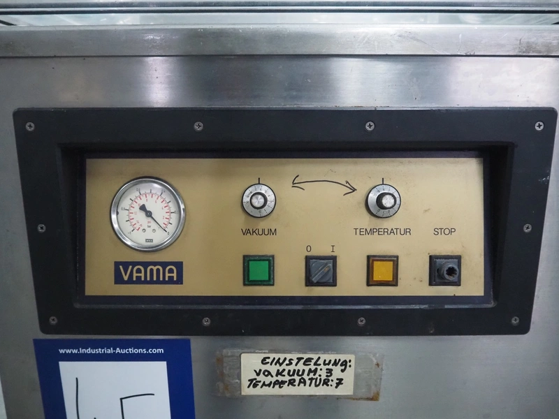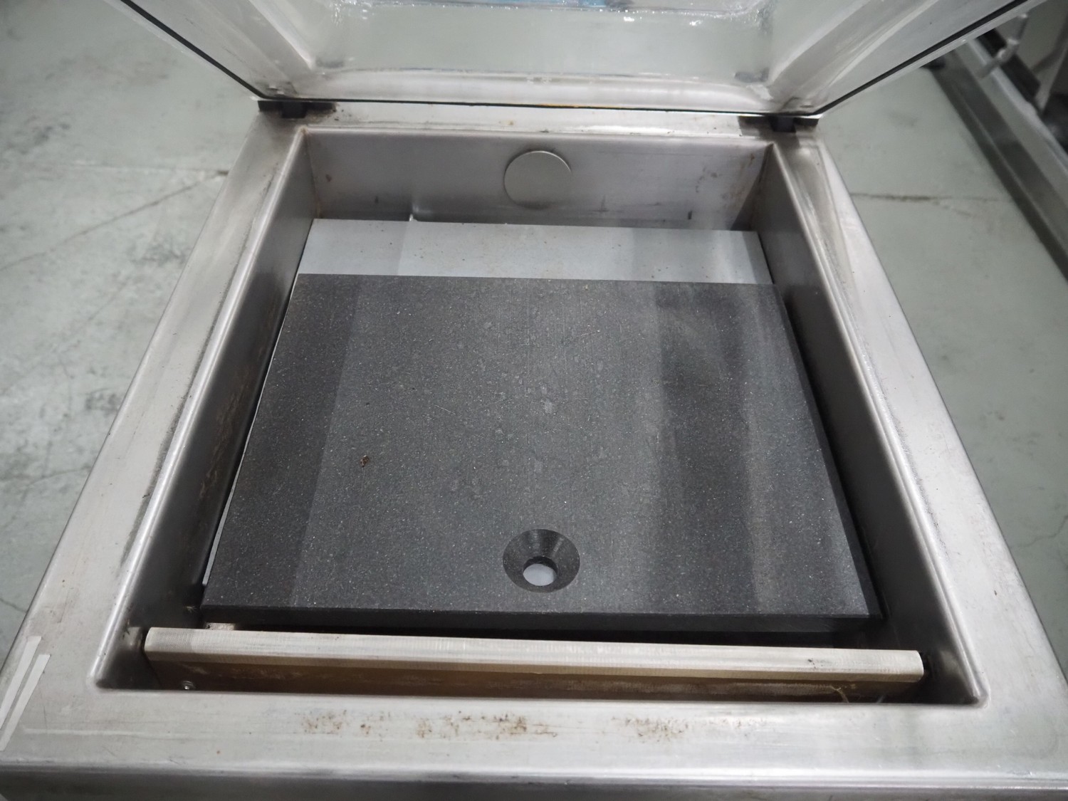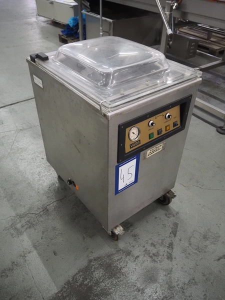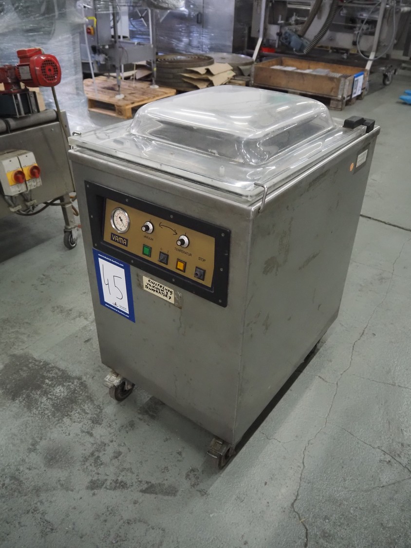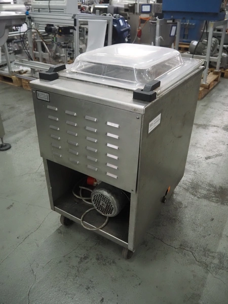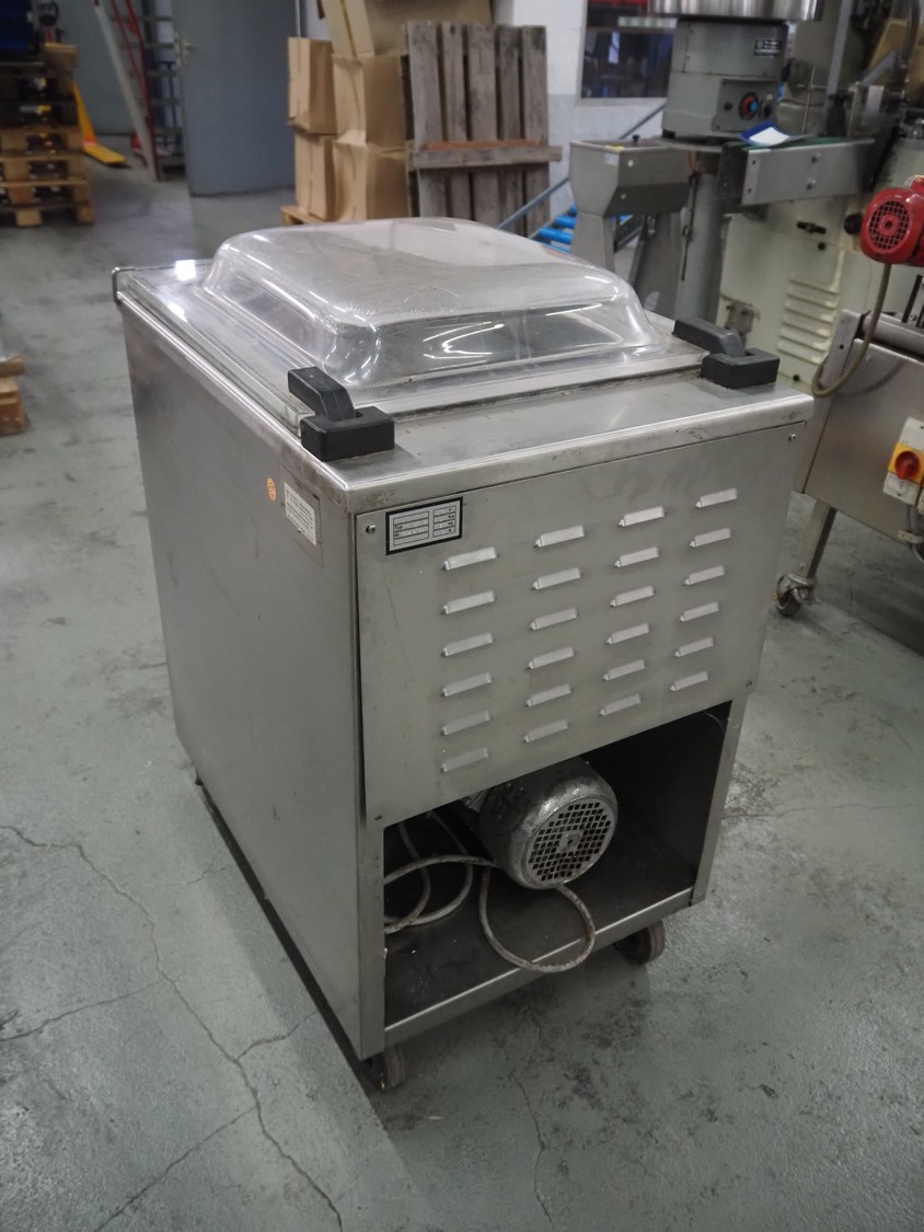 Vama mobile vacuum machine, model: VP 530S, serial number: 3921-199, chamber dimensions: 435 mm x 500 mm, seal length: 430 mm, total dimensions: 570 mm x 750 mm x 1000 mm.