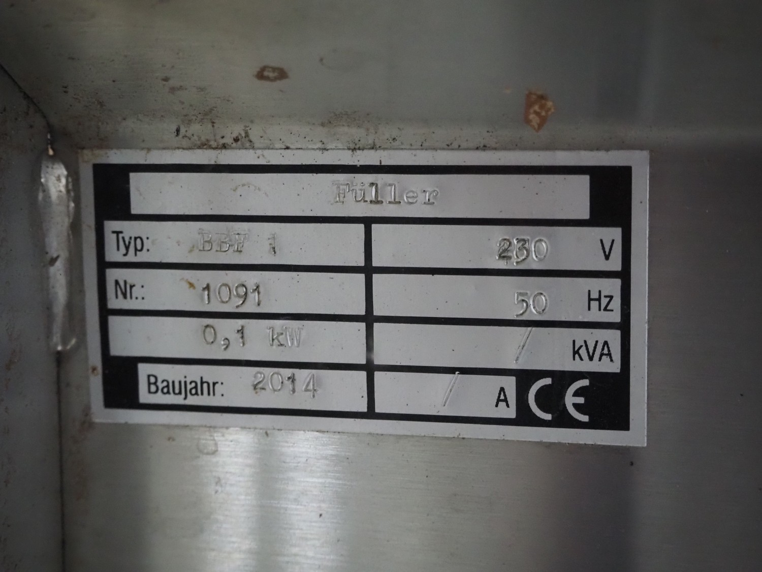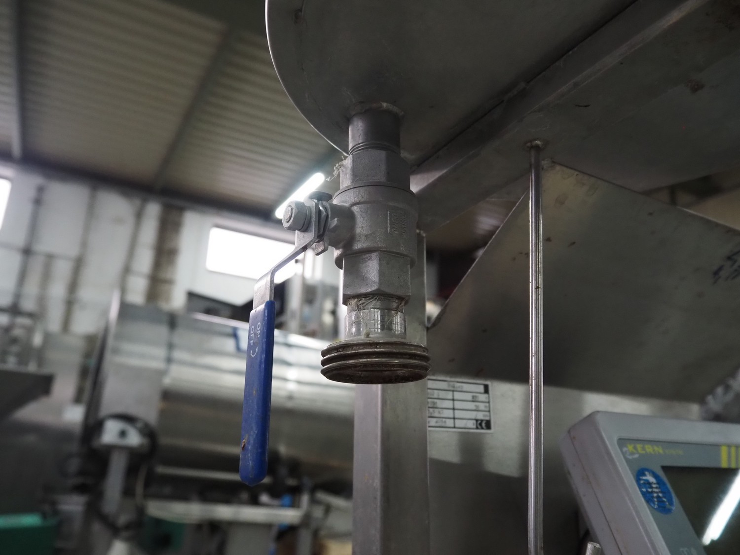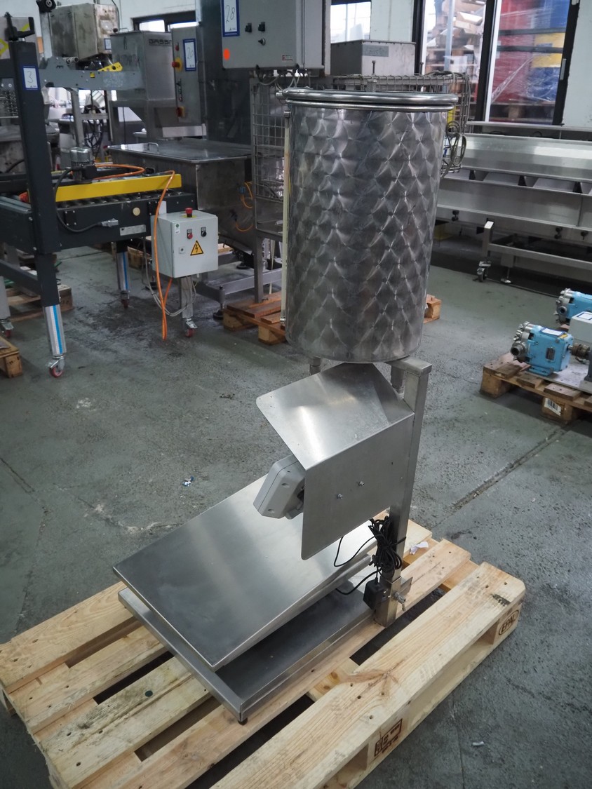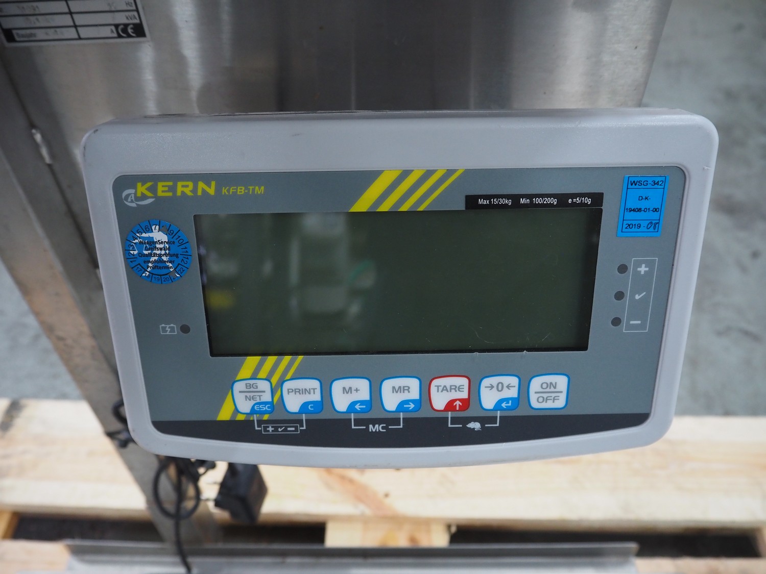 Kern weighing scale with depositor, type: BBF 1, number: 1091, year of construction: 2014, 230 V, 50 Hz, 0.1 kW, scale dimensions: 580 mm x 400 mm, total dimensions: 700 mm x 550 mm x 1260 mm.