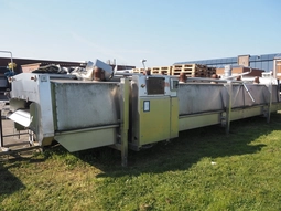 Cooking belt, s/s mesh belt, belt width: 1100 mm, total dimensions: 9000 mm x 2200 mm x 2750 mm.