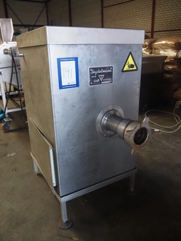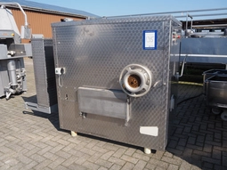 Grinder with lifter for 200 liter meat bins, plate diameter: 160 mm, total dimensions: 2500 mm x 1600 mm x 1700 mm.