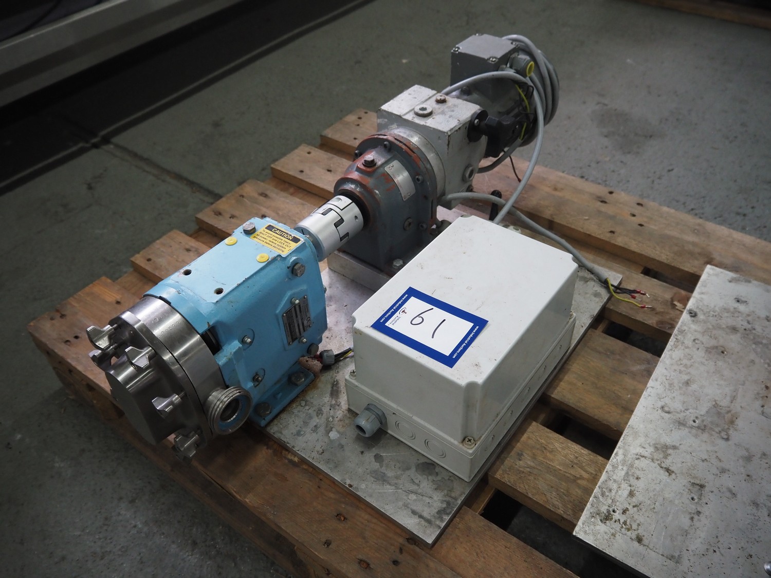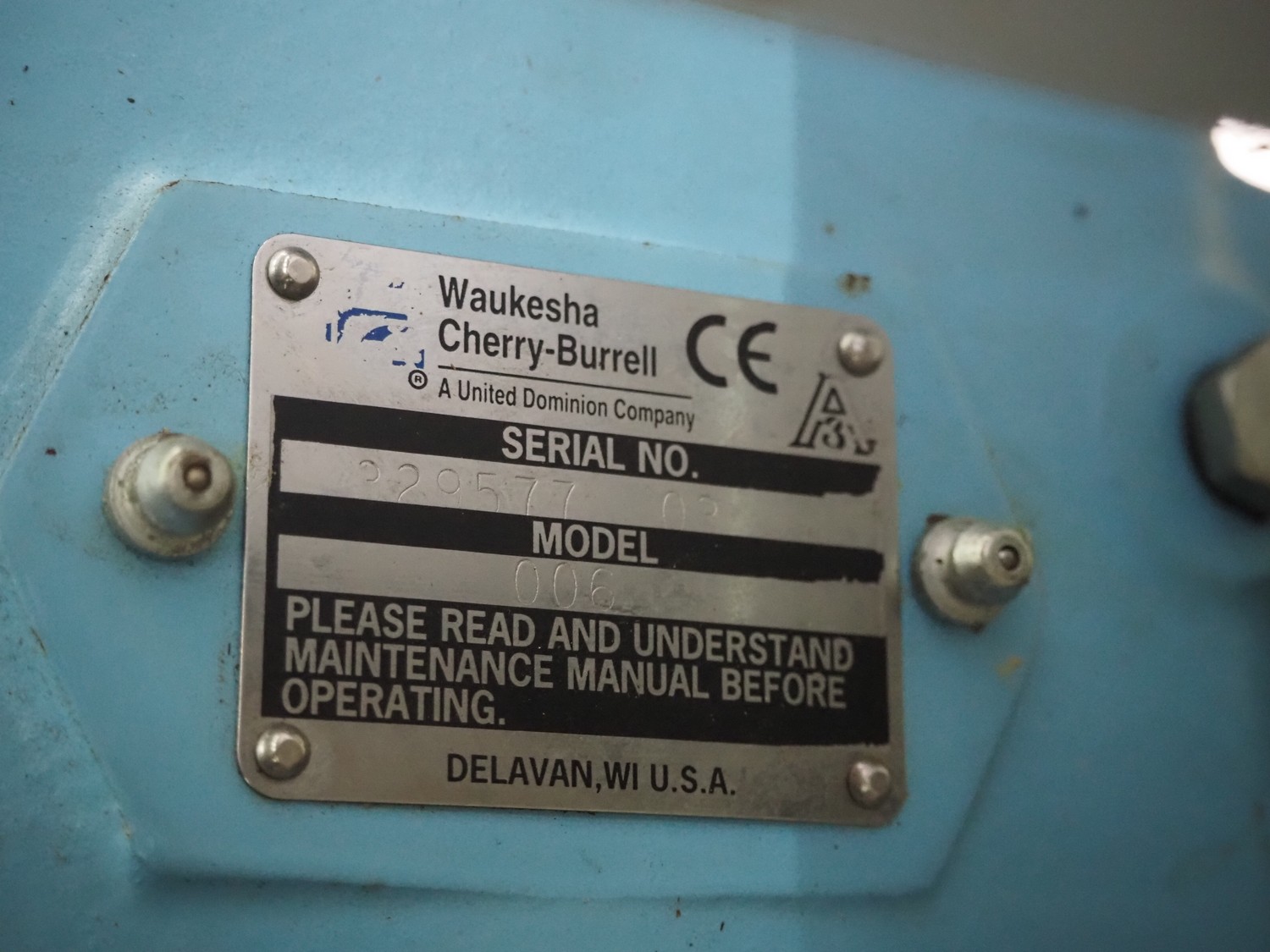 Waukesha Cherry-Burrel lobe pump, model: 006, serial number: 329577 03, dimensions: 850 mm x 400 mm x 250 mm.