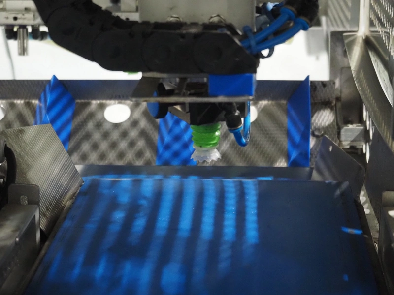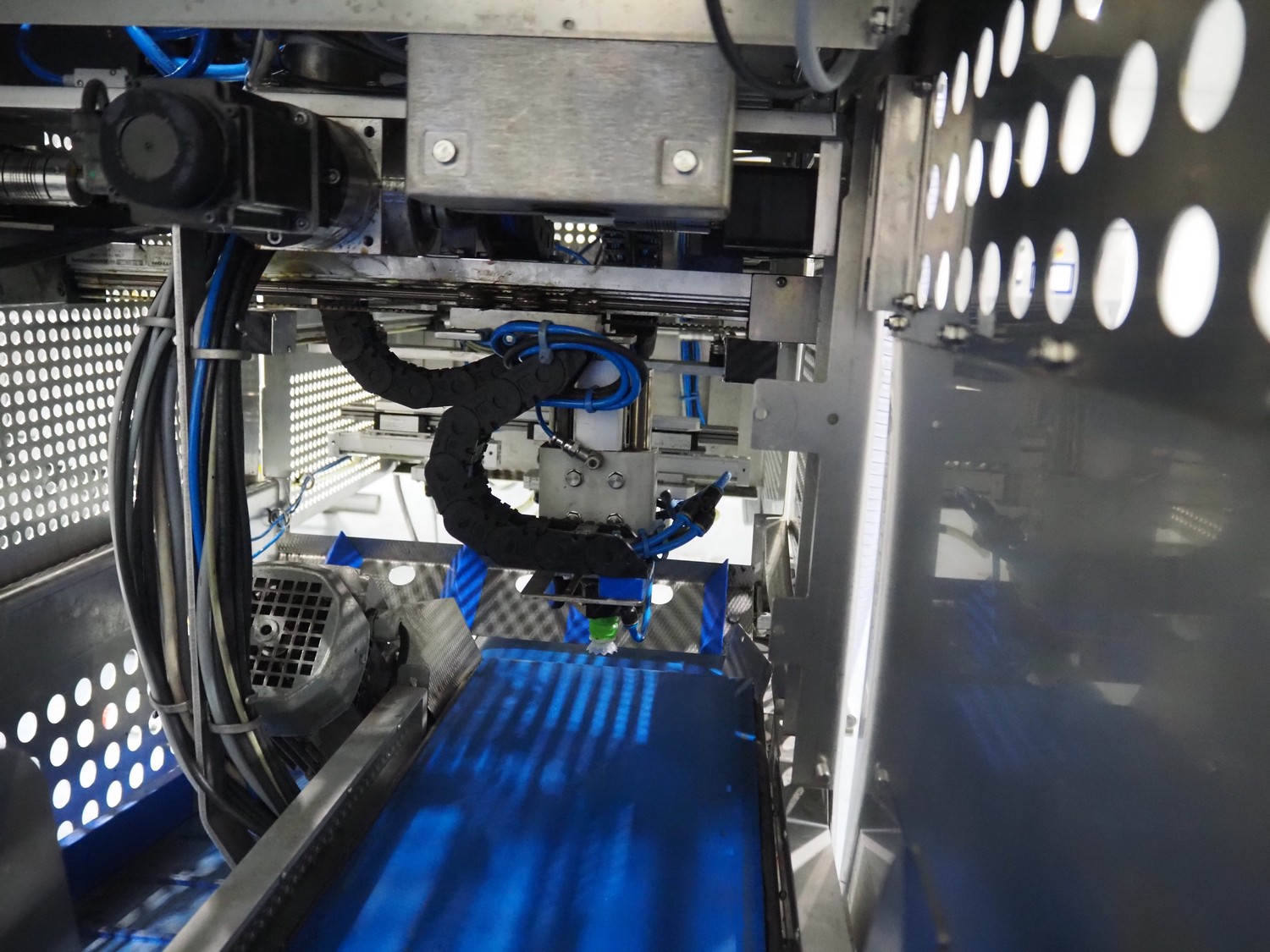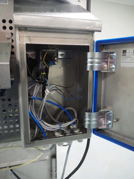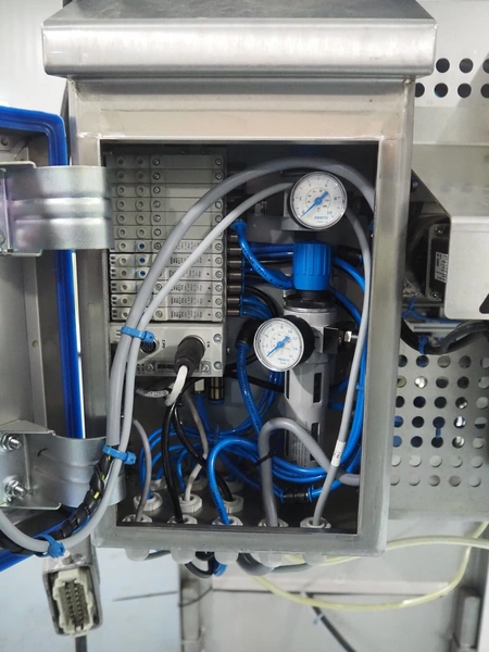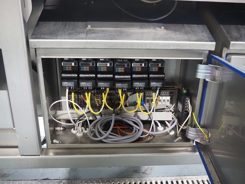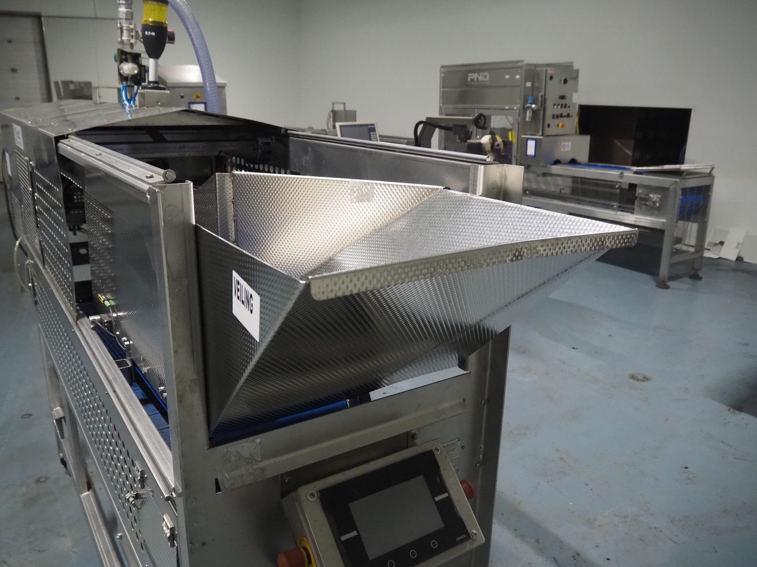 Rutec Engineering mobile feeding system, type: Salad Pouch Handling, serial number: 216387, year of construction: 09-2017, 380 Vac, 10 A, 950 kg, belt width: 250 mm, total dimensions: 3150 mm x 700 mm x 2000 mm.
