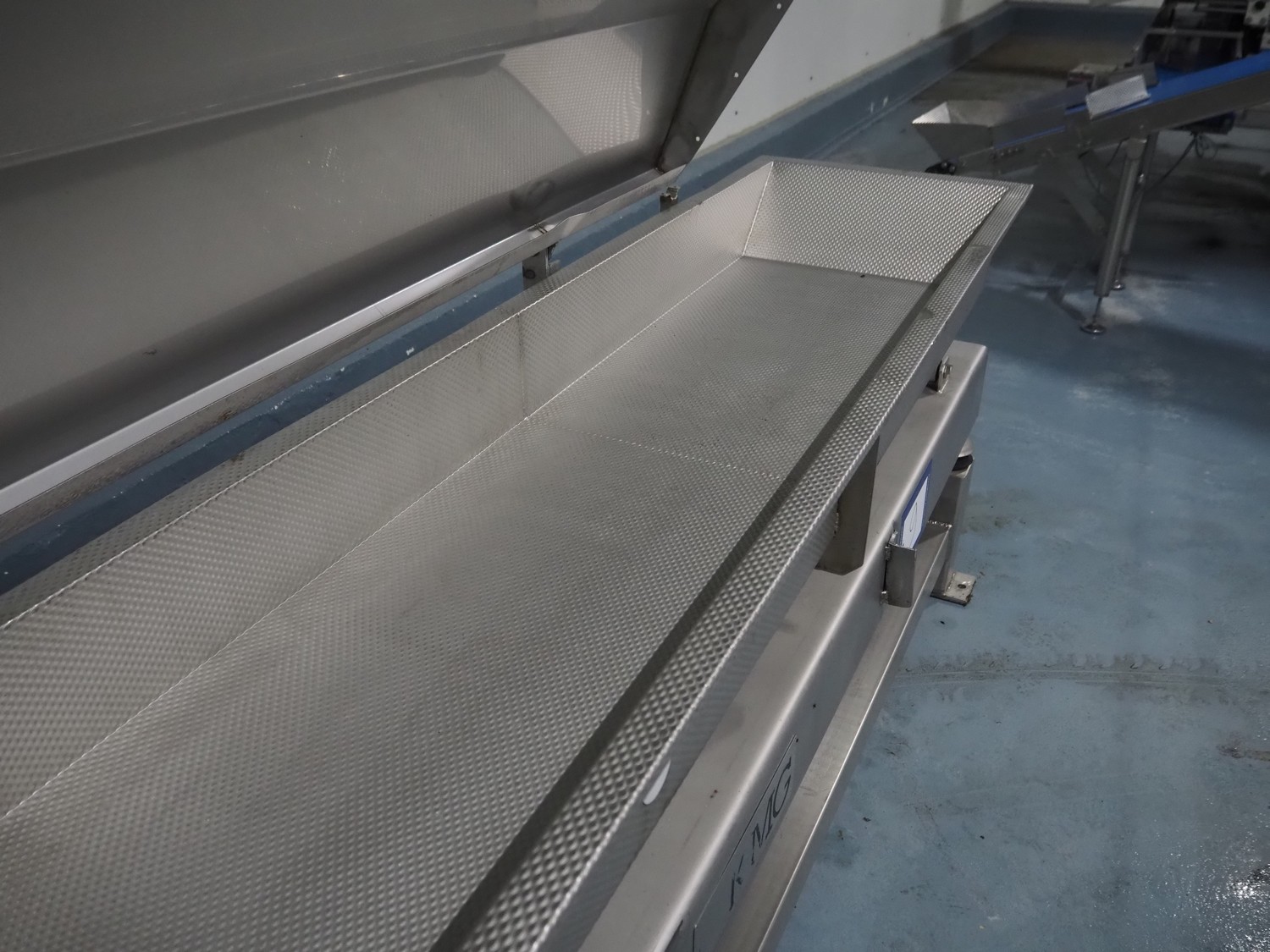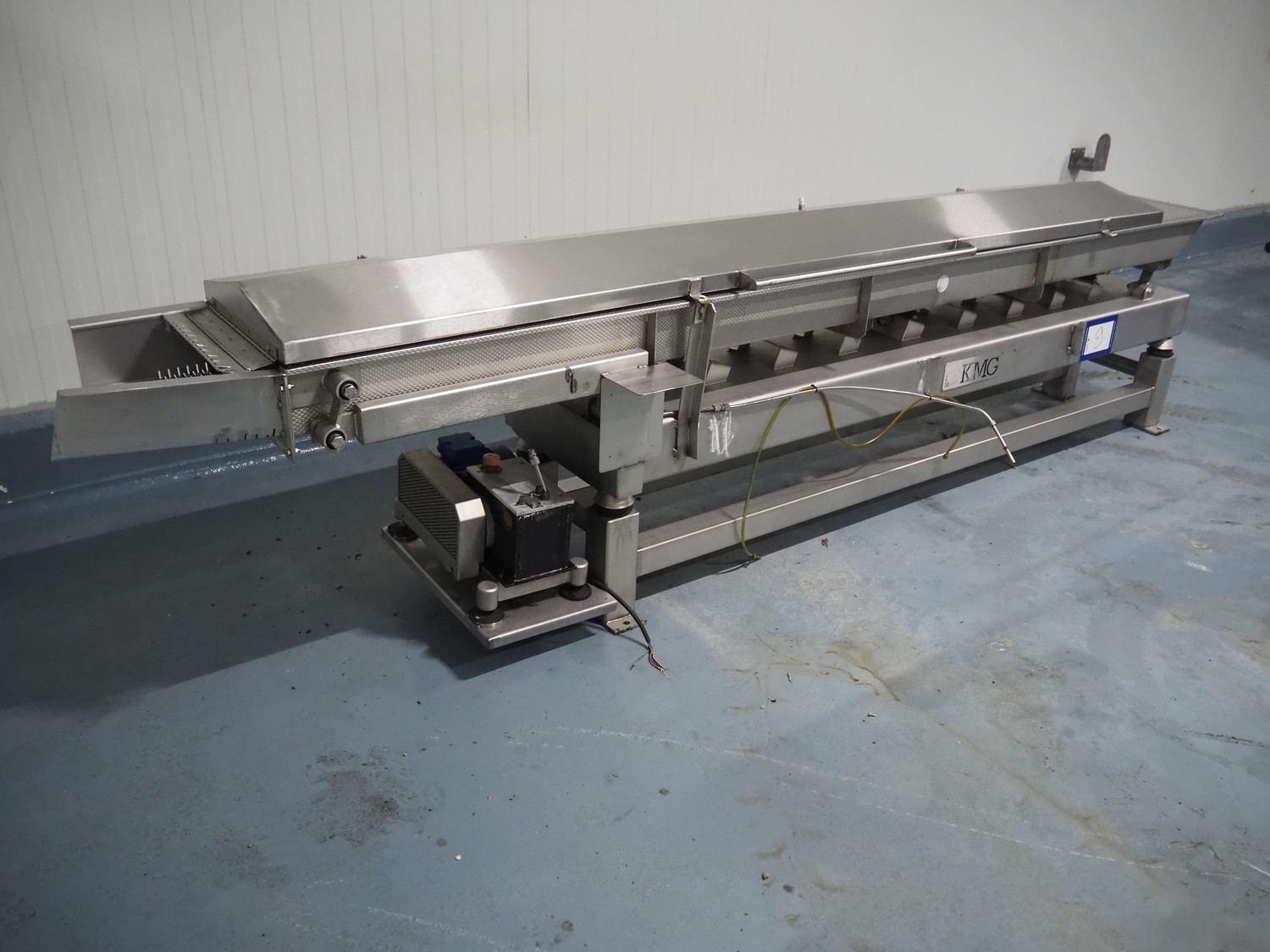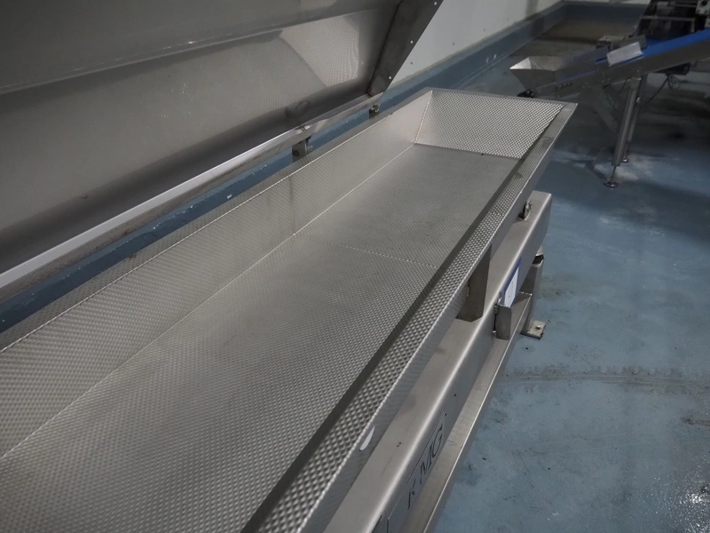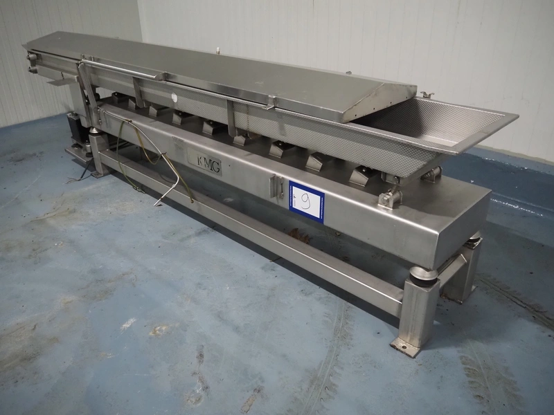 KMG s/s vibrating gutter, gutter width: 450 mm, total dimensions: 3850 mm x 650 mm x 950 mm.