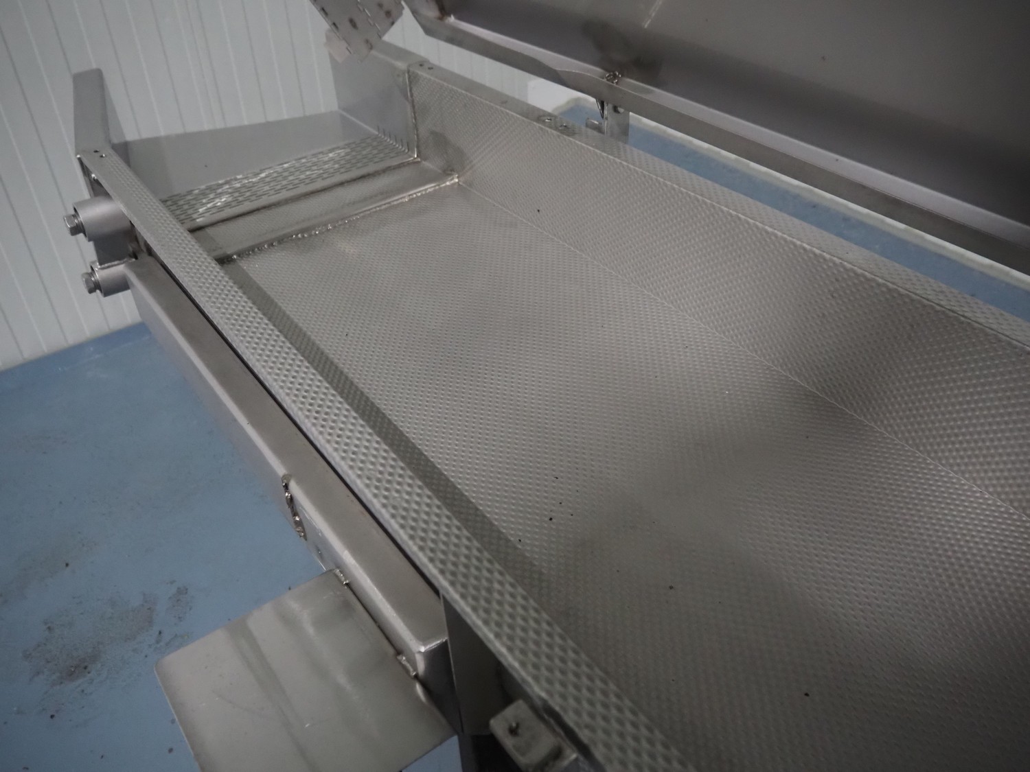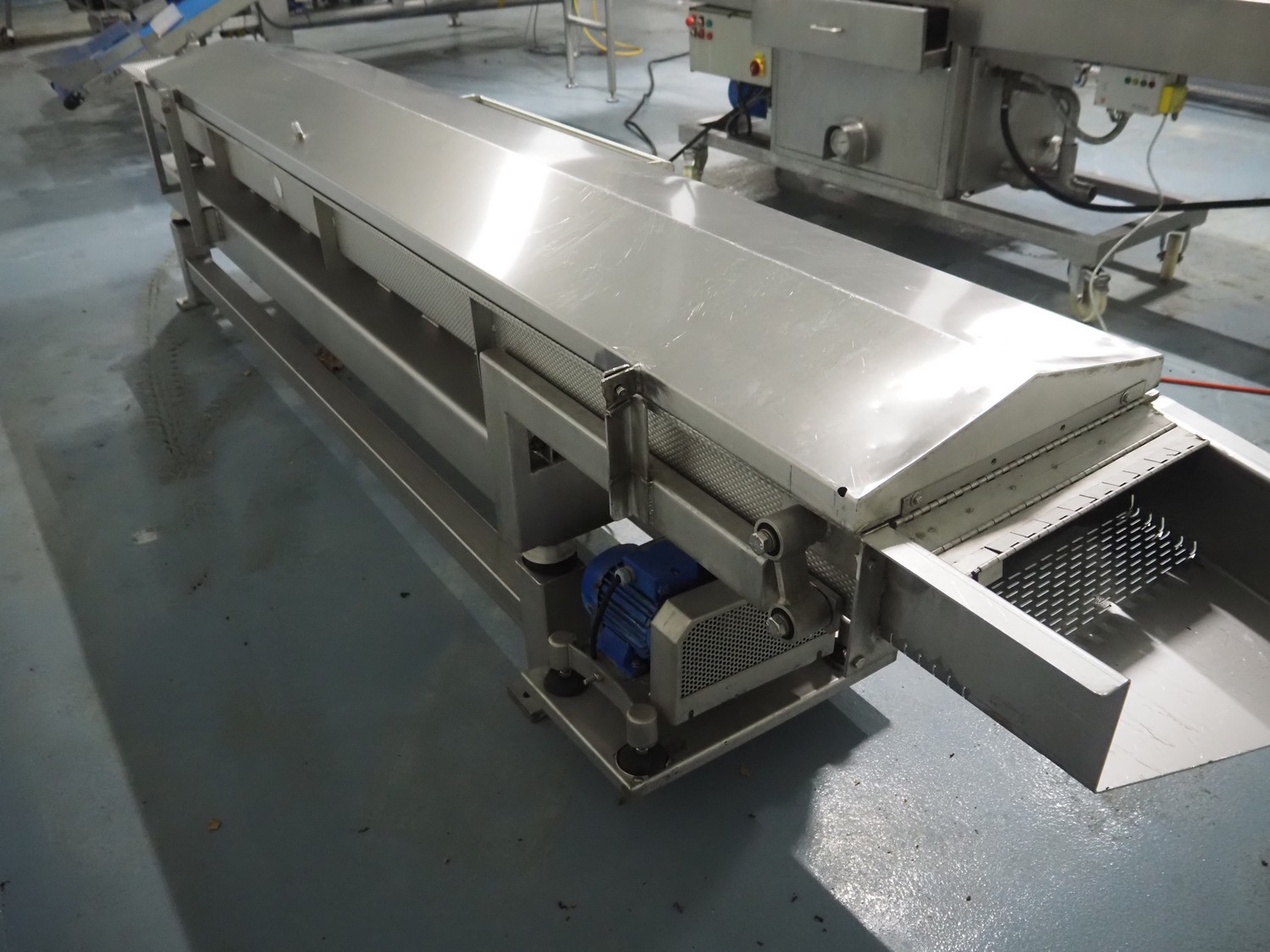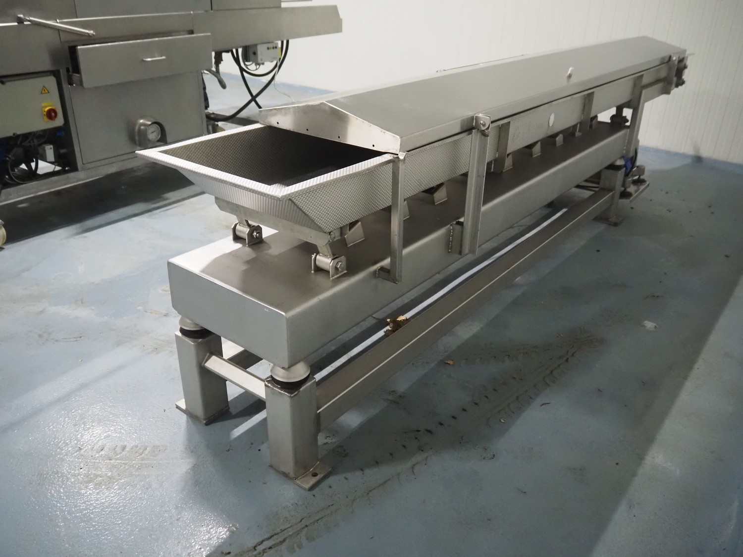 KMG s/s vibrating gutter, gutter width: 450 mm, total dimensions: 3850 mm x 650 mm x 950 mm.