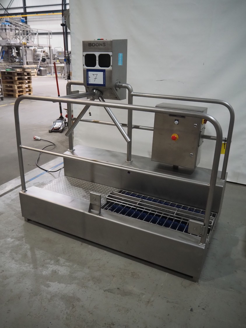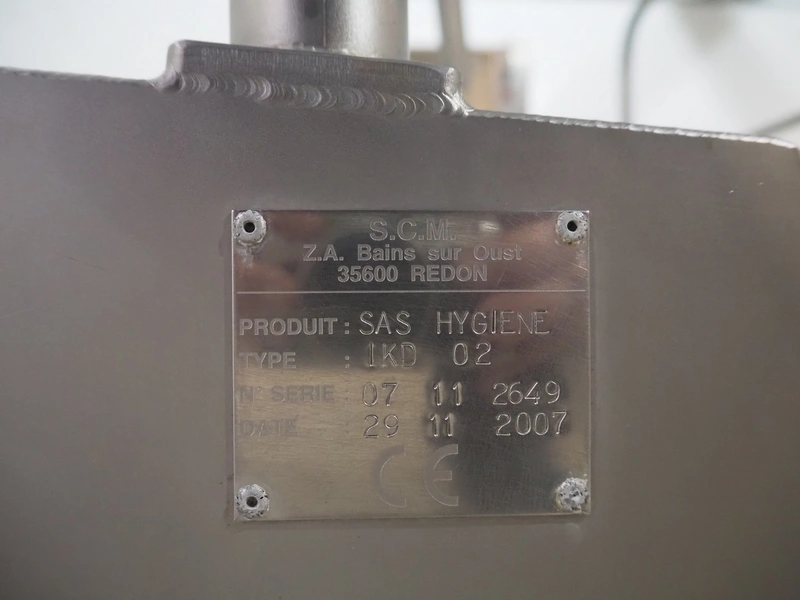 S.C.M. hygiene station, type: IKD 02, serial number: 07 11 2649, year of construction: 2007, consisting of: hand disinfection unit, tourniquette, sole cleaner, length brush: (2x) 750 mm, total dimensions: 1600 mm x 900 mm x 1570 mm.