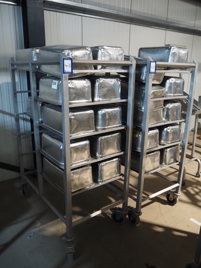 S/s trolley, 2x 5 floors, dimensions each floor: 700 mm x 540 mm, total dimensions: 1210 mm x 700 mm x 1710 mm.