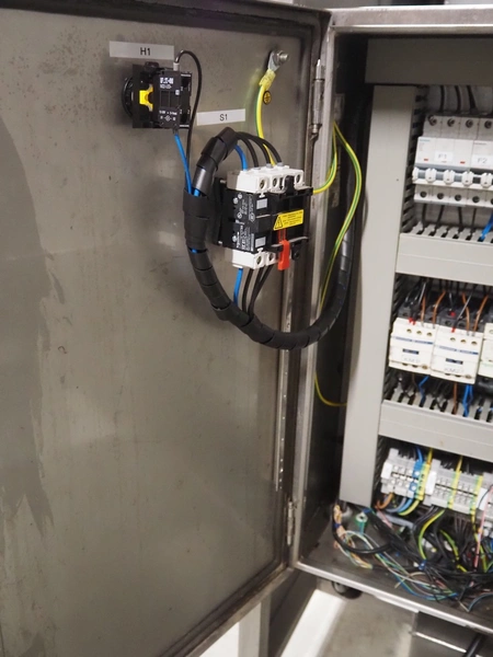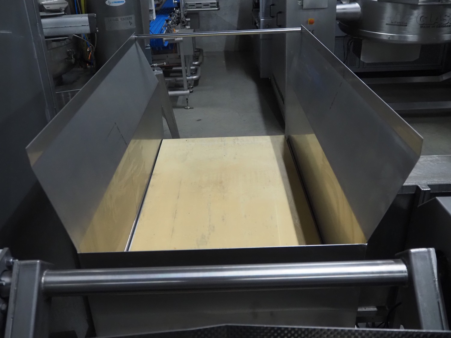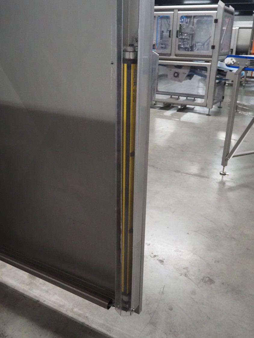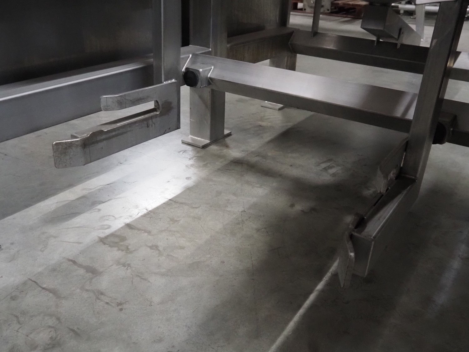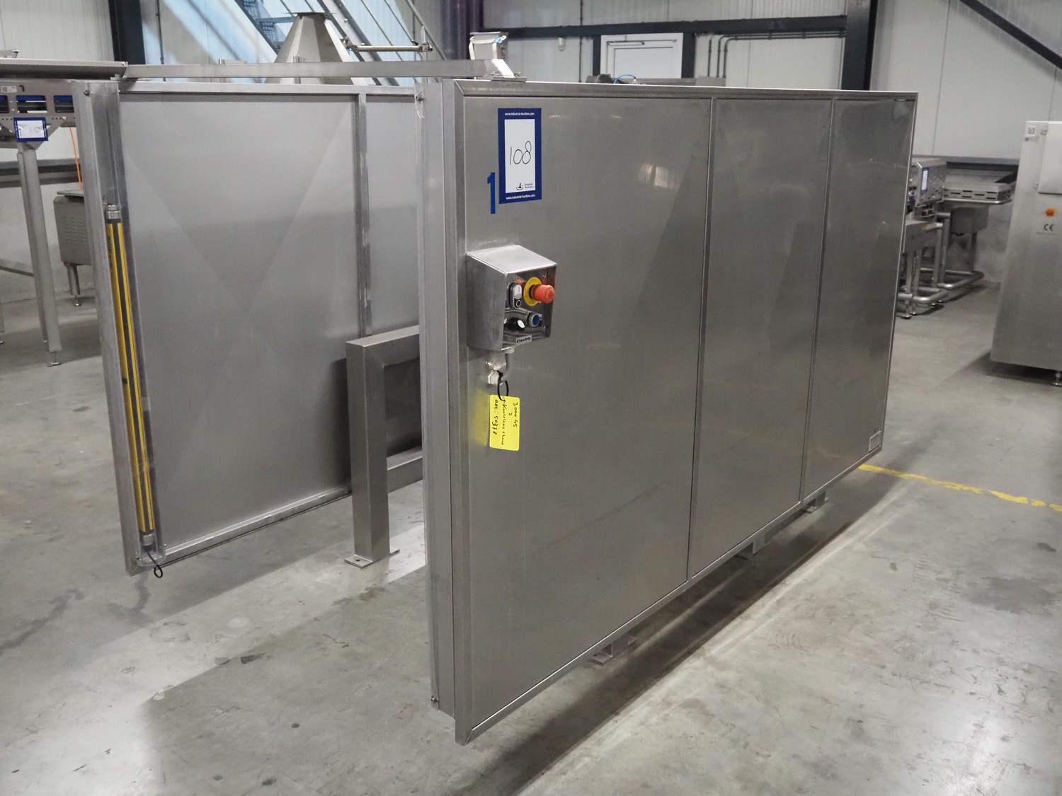 SAS DISPAC tilting device for 200 liter meat bins with outfeed belt, type: VIDEP, serial number: 08V26, year of construction: 06/08, plastic belt, belt width: 600 mm, total dimensions: 3400 mm x 1580 mm x 1810 mm.