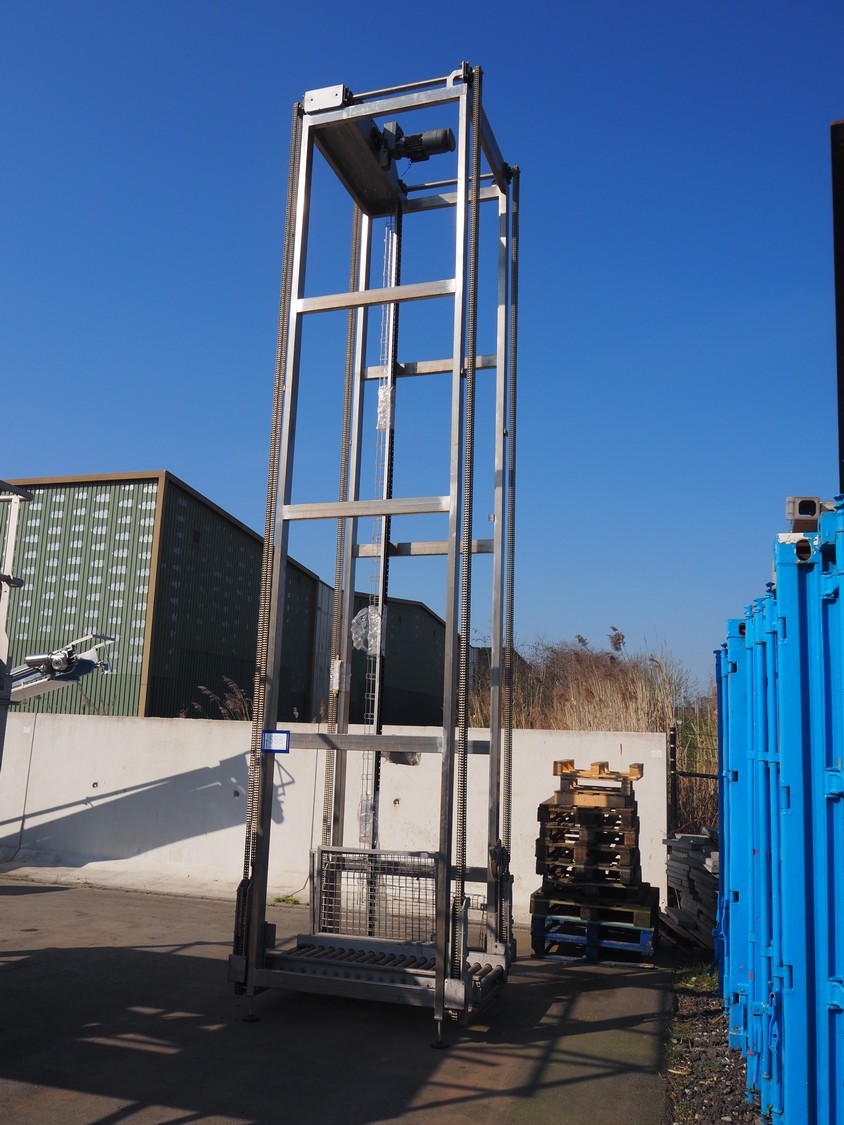 Lifter, s/s rollers, roller width: 620 mm, lifting height: approximately 6500 mm, total dimensions: 1550 mm x 1340 mm x 7000 mm.