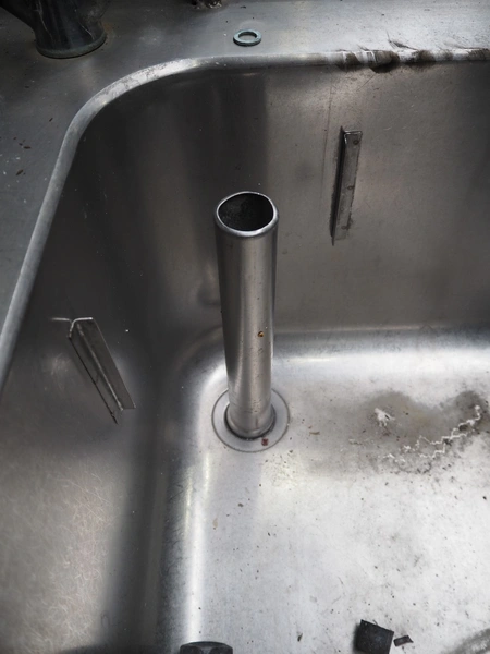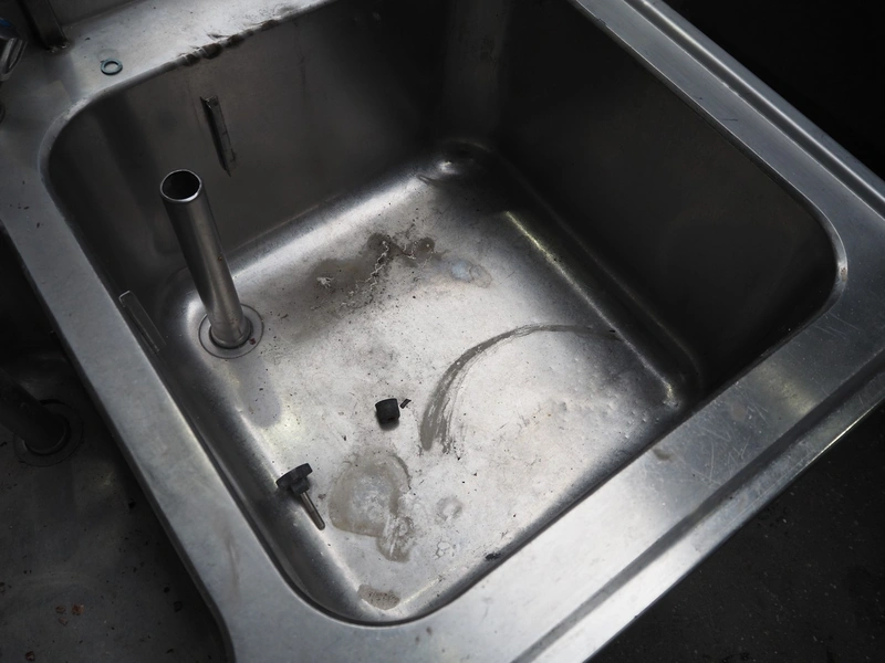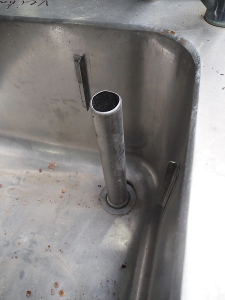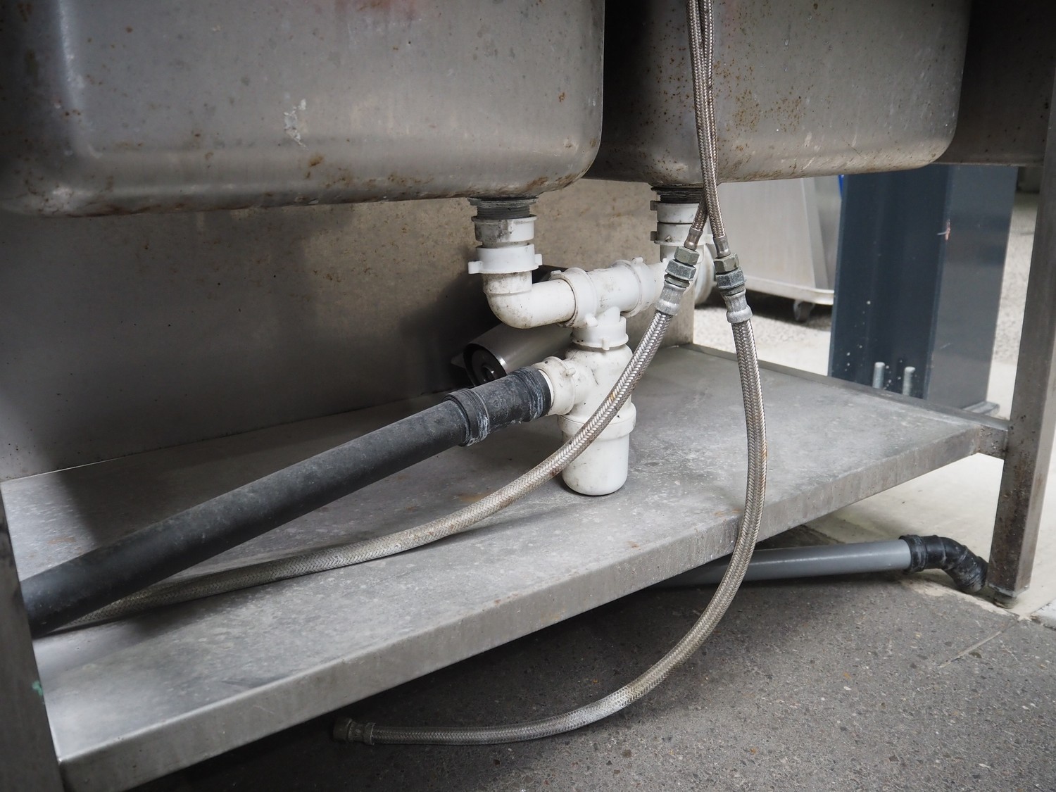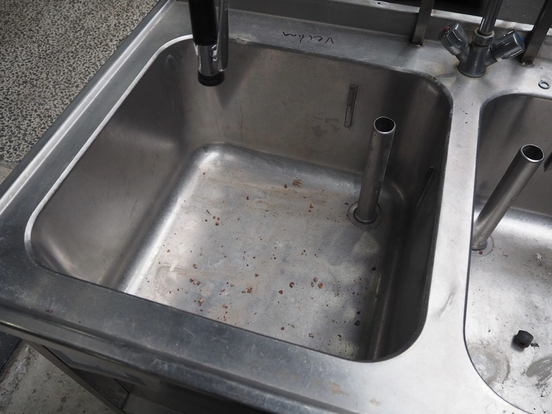 S/s double sink with faucet, dimensions: 1200 mm x 700 mm x 1940 mm.