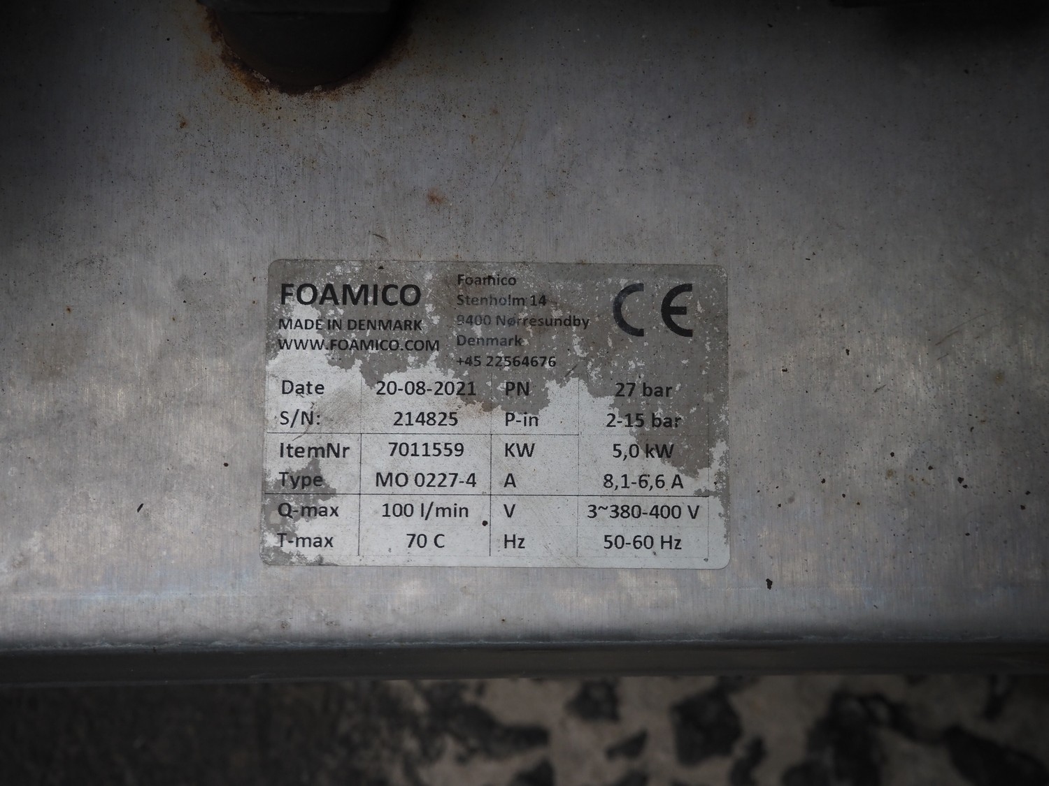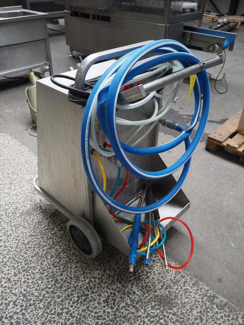 Foamico hygiene trolley with Grundfos circulation pump, type: MO 0227-4, serial number: 214825, year of construction: 20-08-2021, 380-400 V, 3 Ph, 50-60 Hz, 7.7-6.9 A, 3.2 kW, type Grundfos: CRNE1-9 X-CA-T-E-HQQE, dimensions: 900 mm x 650 mm x 1100 mm.