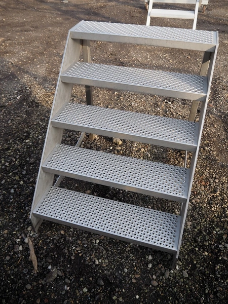 S/s stairs, 5 steps, working height: 910 mm, total dimensions: 960 mm x 820 mm x 910 mm.