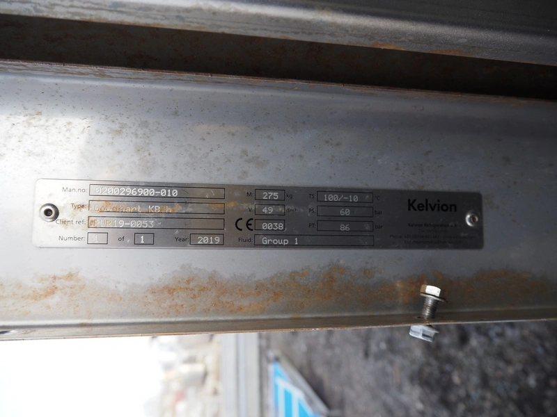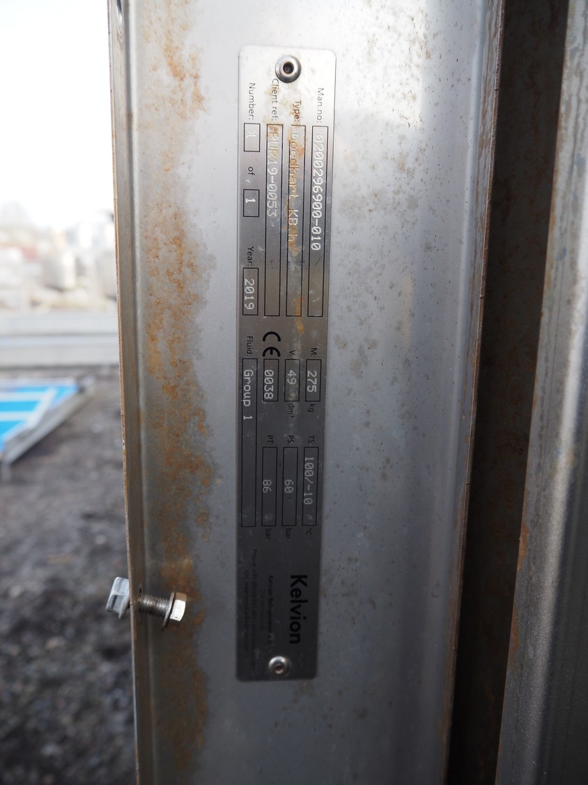 Kelvion s/s evaporator, type: Goedhart KB.h, year of construction: 2019, weight: 275 kg, V: 49 dm³, dimensions: 3100 mm x 650 mm x 1750 mm.