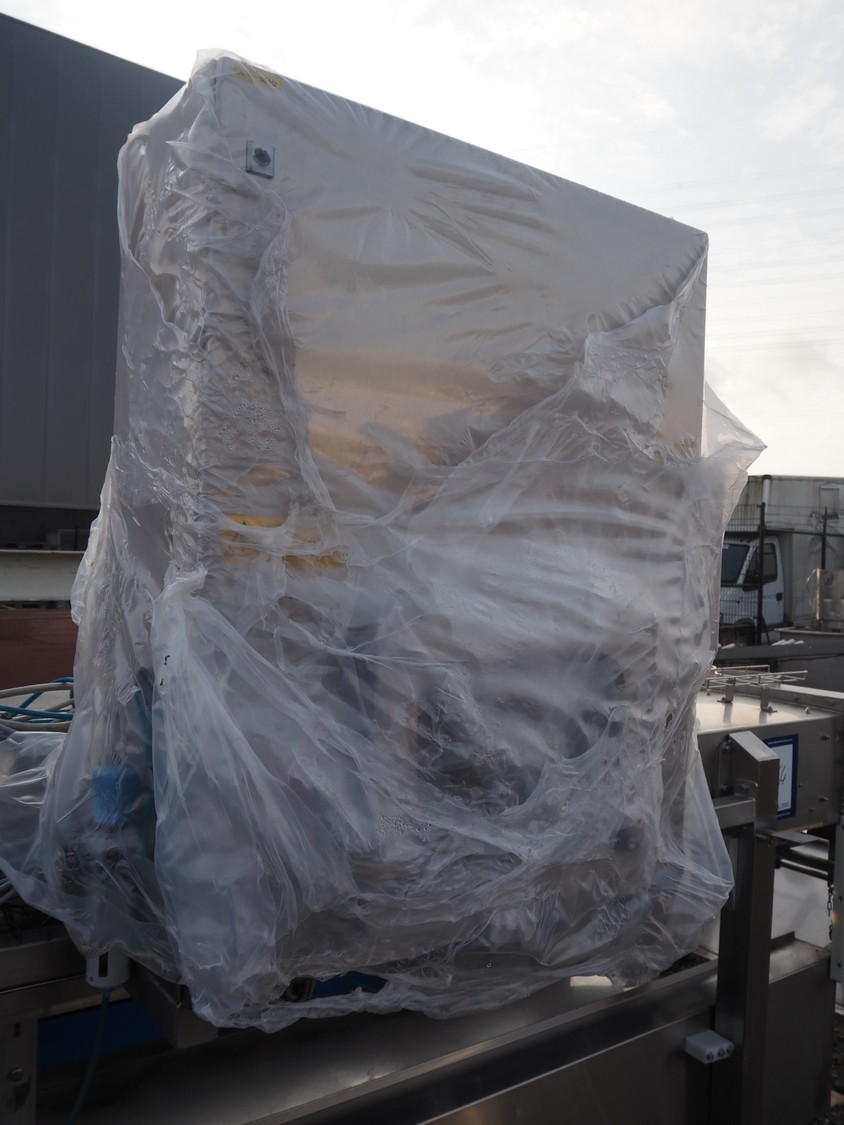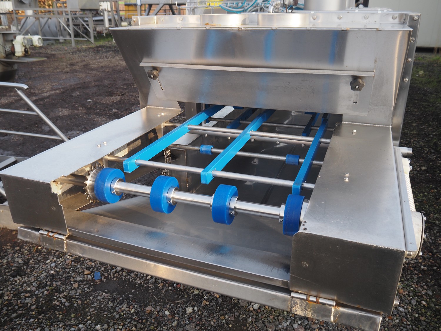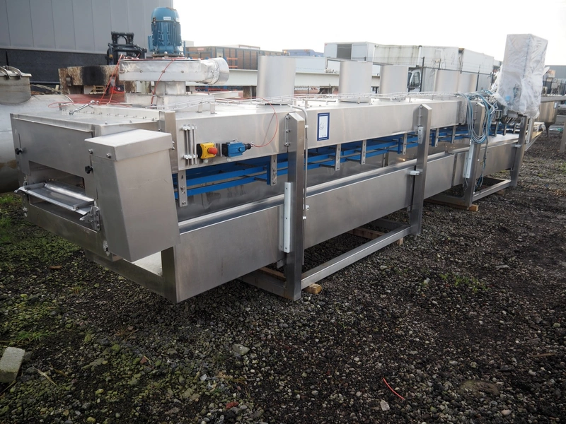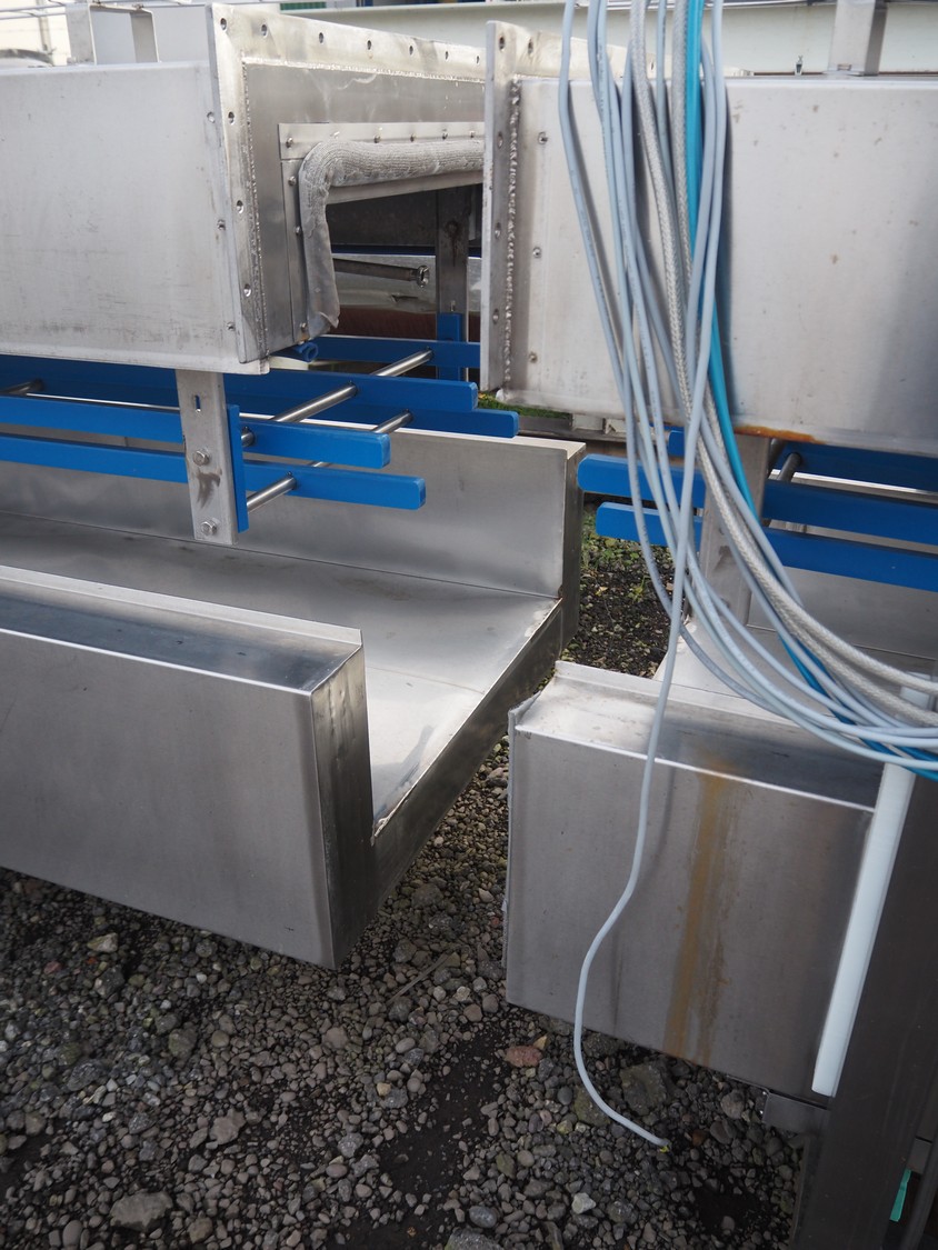 S/s cooking tunnel, clearance: 660 mm x 60 mm, total dimensions: 8450 mm x 1550 mm x 2280 mm. Including s/s mesh belt, belt width: 700 mm.