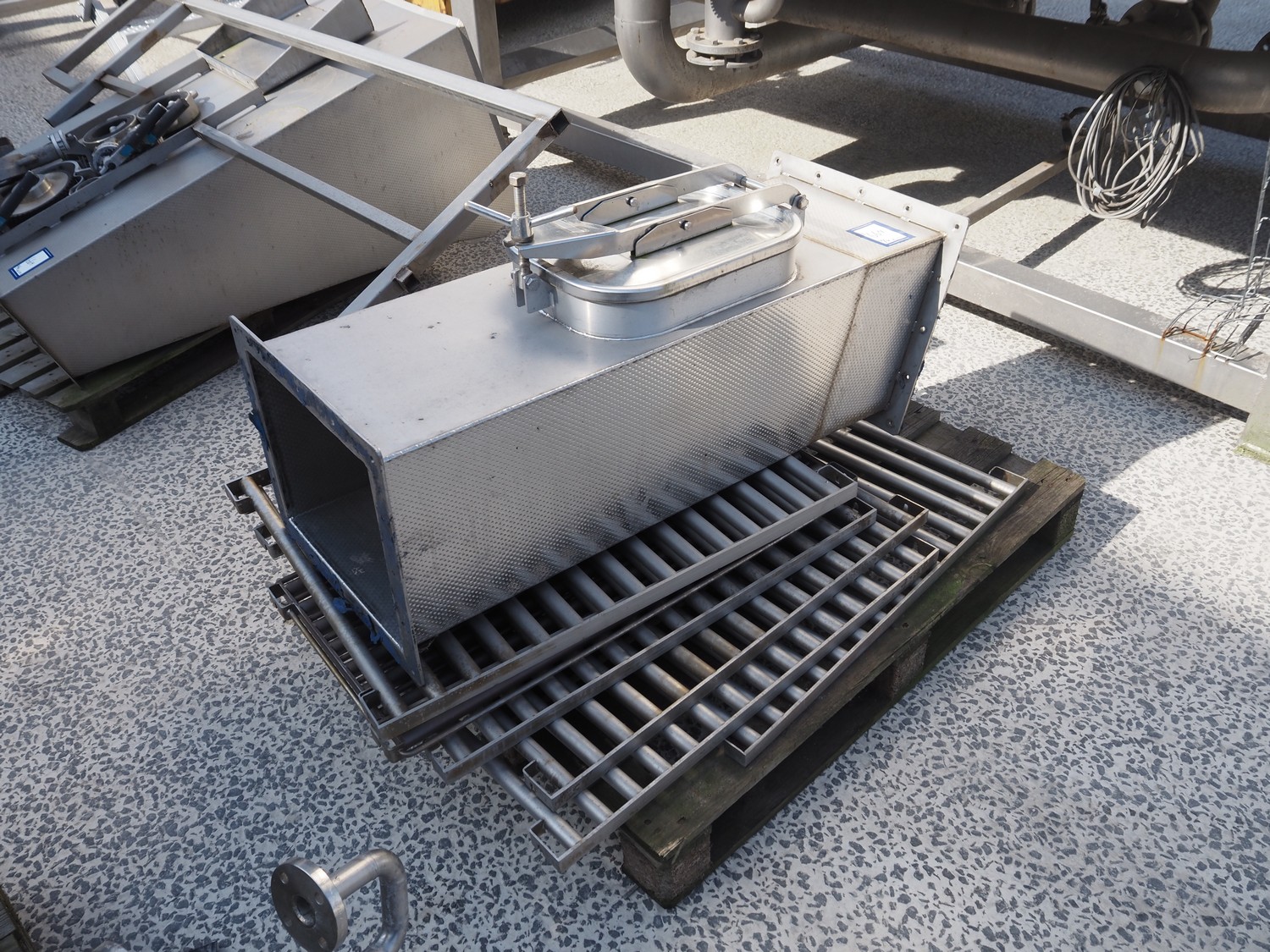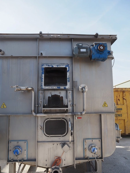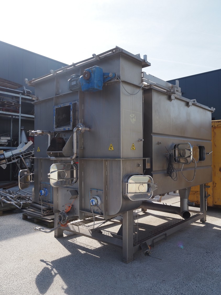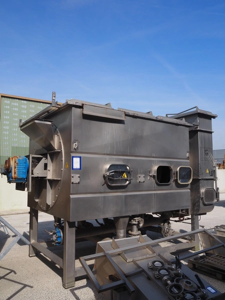 FT NON blanching machine, steam heated, diameter drum: 1150 mm, dimensions gaps: 20 mm x 4 mm, total dimensions: 4200 mm x 2350 mm x 3100 mm. Including 3 pallets with parts.