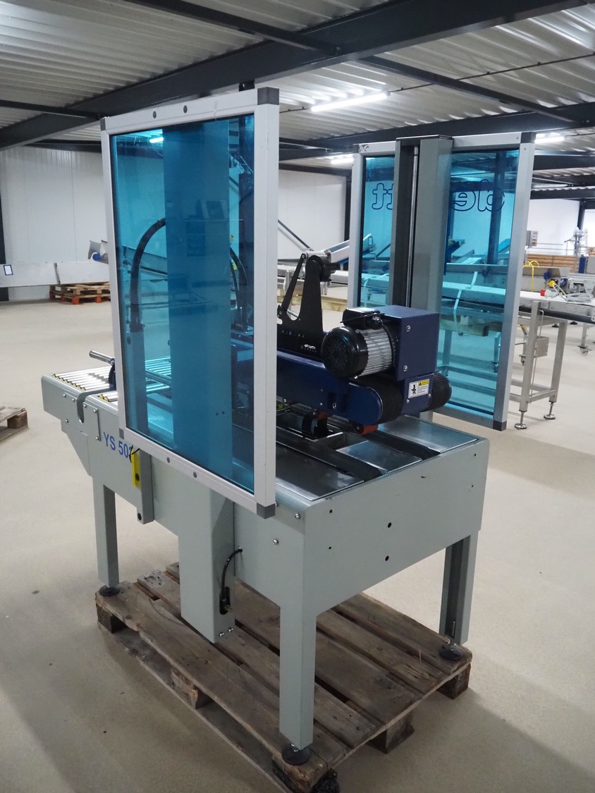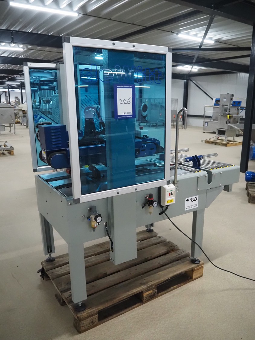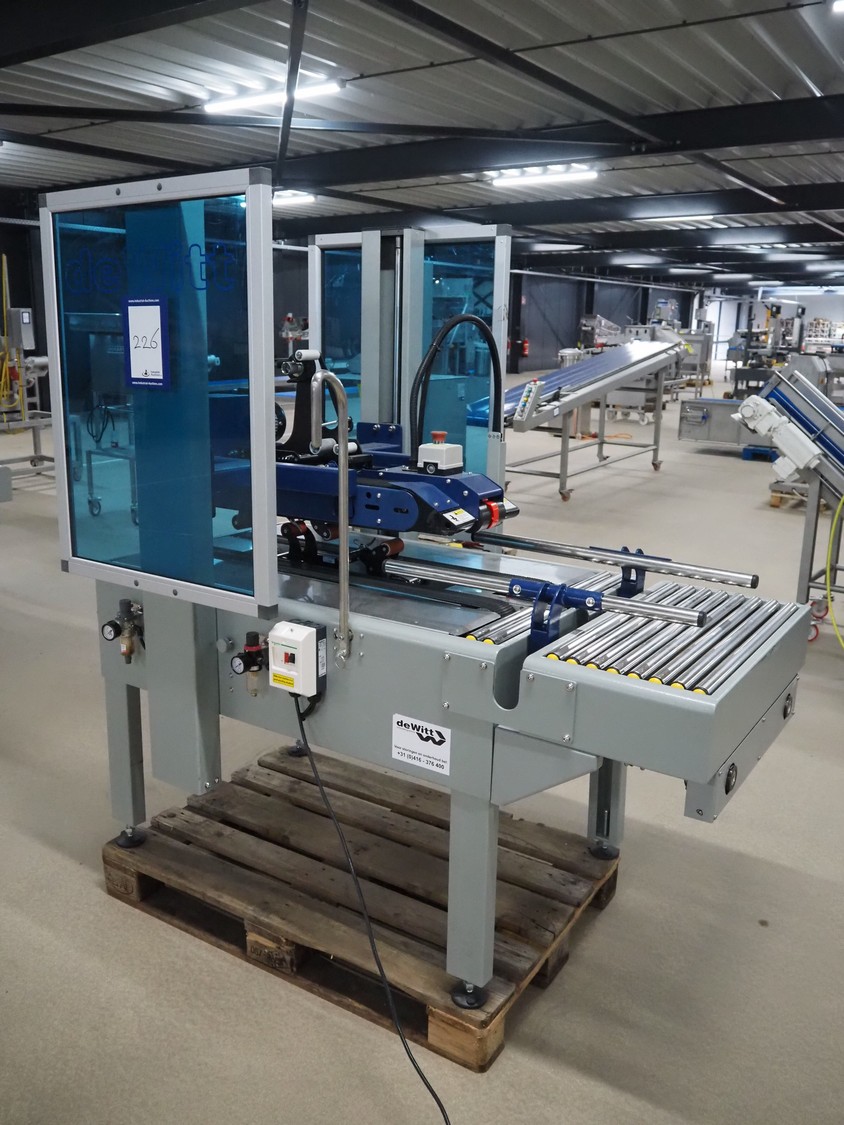 De Witt box taper with top and bottom taper, model: YS 502 D, plastic belts, belt width: 75 mm, s/s rollers, roller width: 680 mm, total dimensions: 1610 mm x 970 mm x 1690 mm.