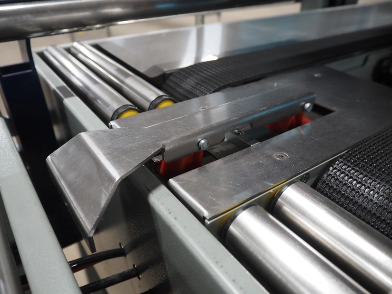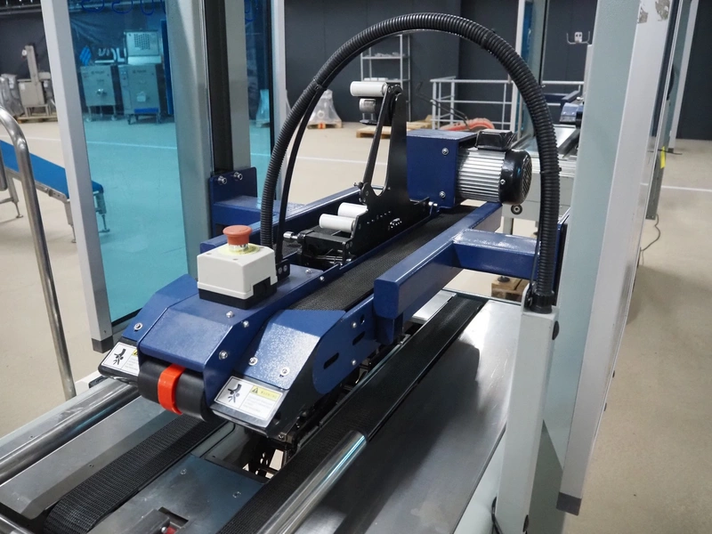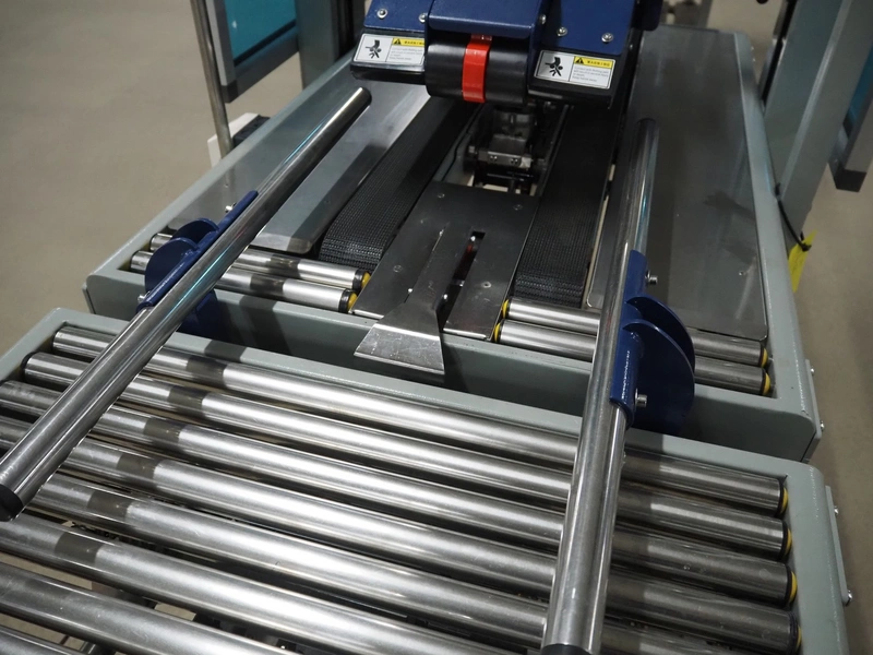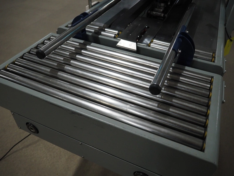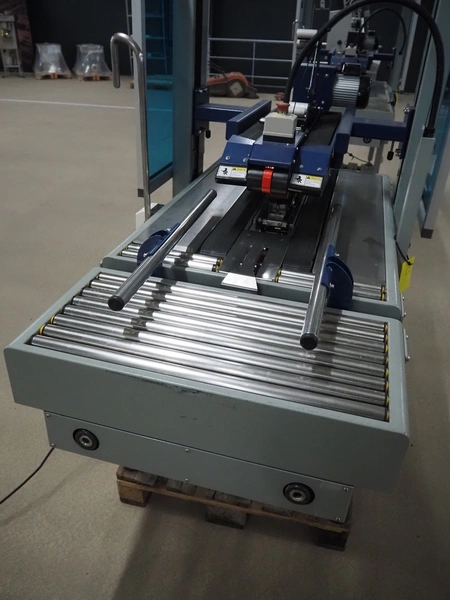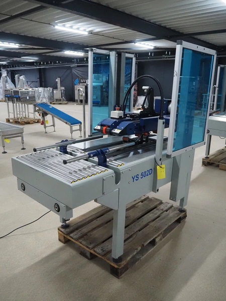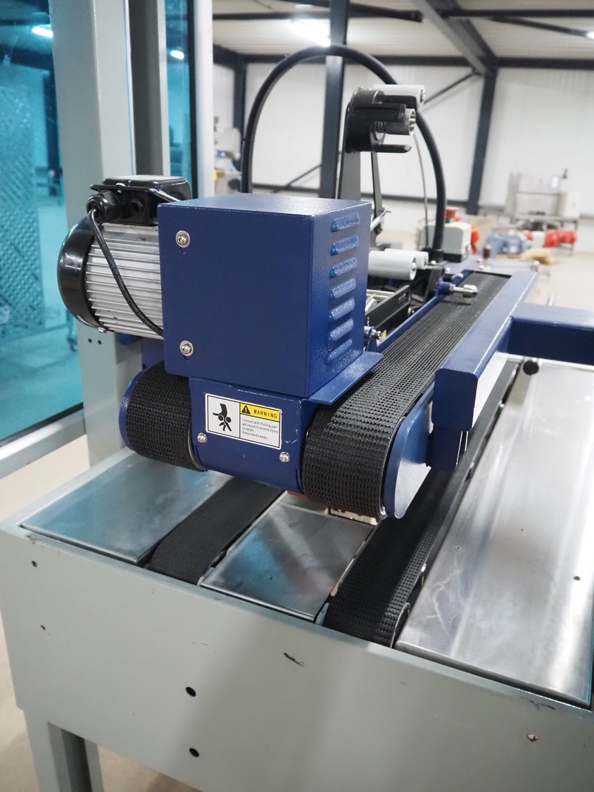 De Witt box taper with top and bottom taper, model: YS 502 D, plastic belts, belt width: 75 mm, s/s rollers, roller width: 680 mm, total dimensions: 1610 mm x 970 mm x 1690 mm.