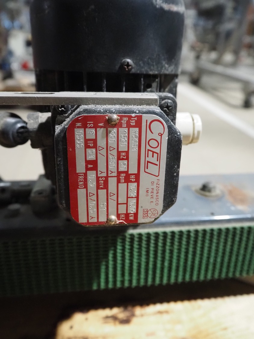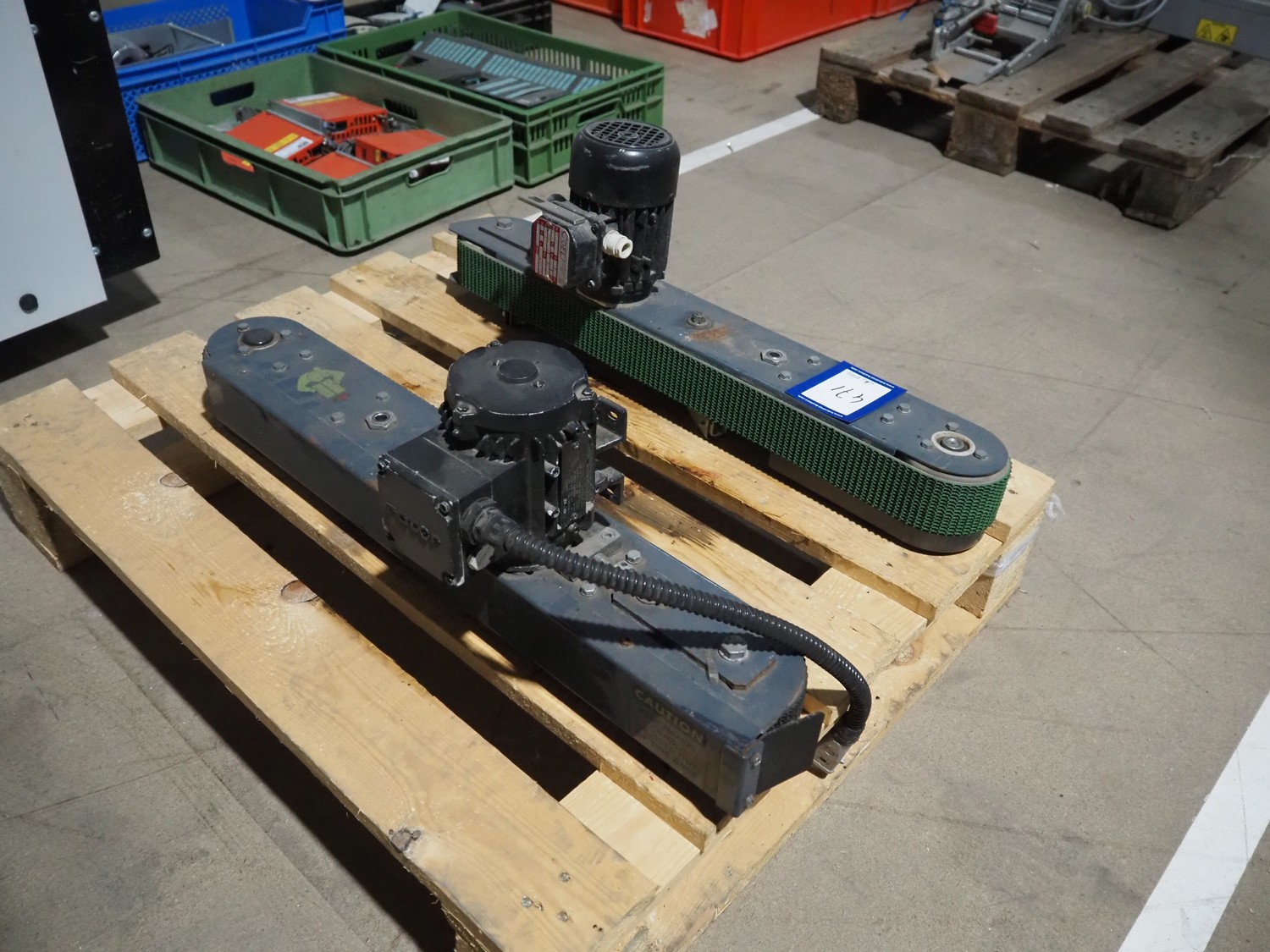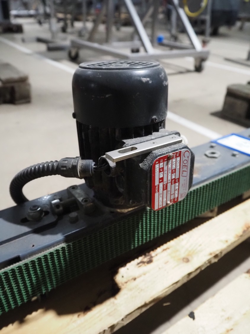 2 conveyors for box closing machine, belt width: 50 mm, total dimensions: (2x) 700 mm x 150 mm x 250 mm.