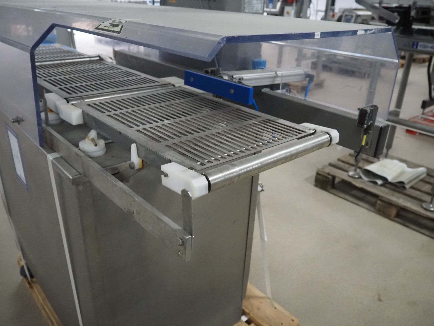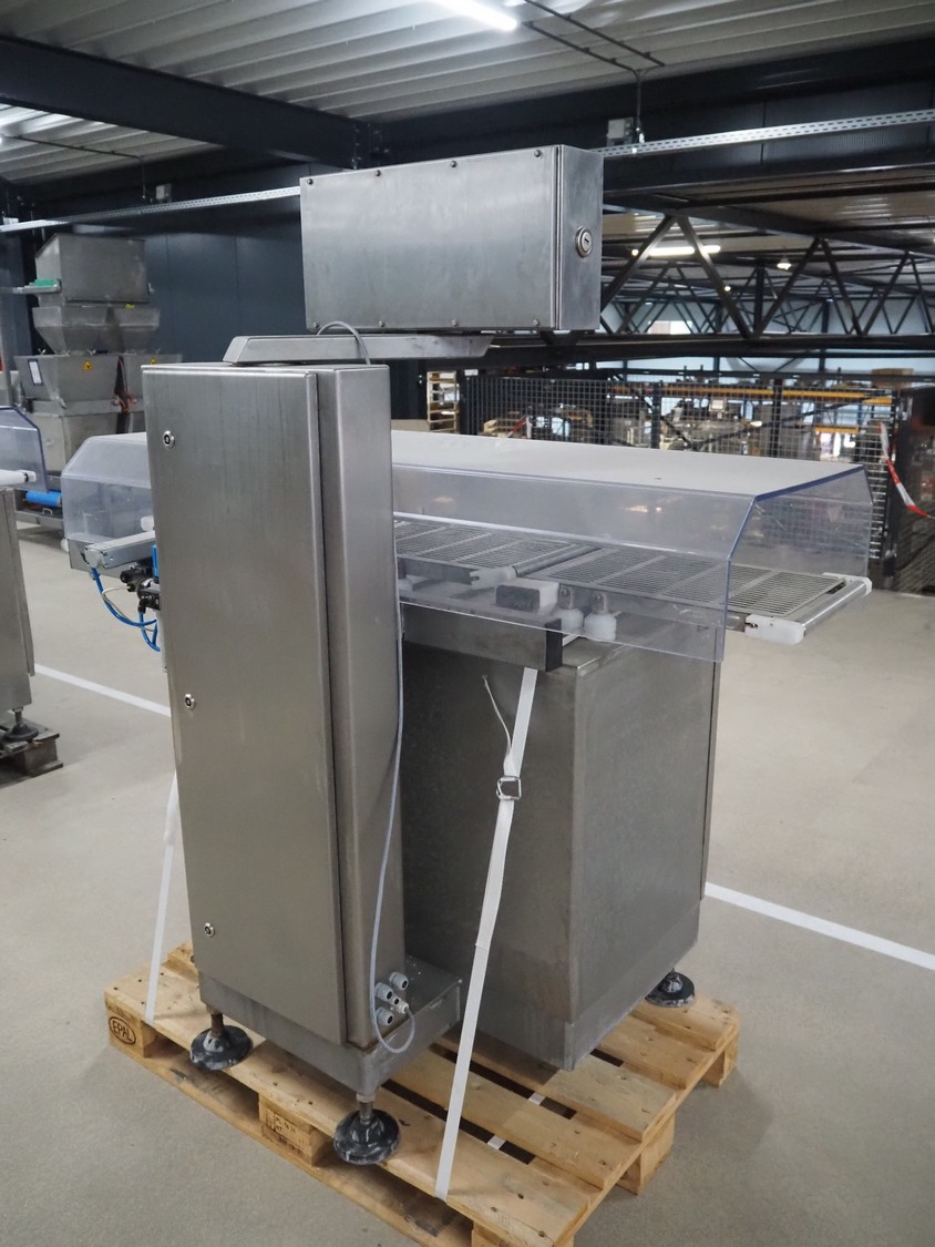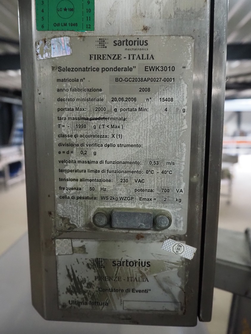Sartorius checkweigher with rejector, type: EWK3010, number: BO-GC2038AP0027-001, year of construction: 2008, 230 V, 50 Hz, 700 vA, e=d= 0.2 gram, belt width: 300 mm, total dimensions: 1600 mm x 900 mm x 1700 mm. Missing belt.