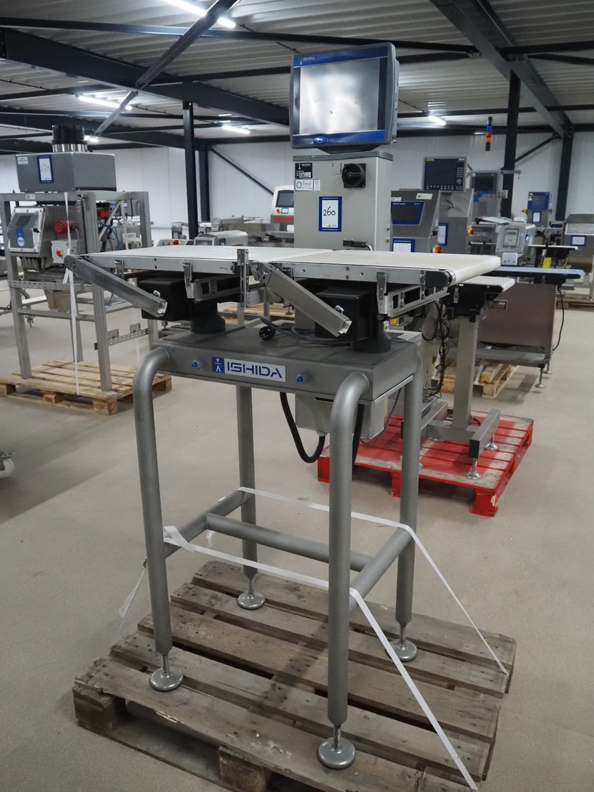 Ishida checkweigher , model: DACS-W-050-SB/SS-I-N(CTS), serial number: 557289, year of construction: 06/2007, 230 V, 1 Ph, 50 Hz, 3 A, maximum weighing range: 5000 gram, plastic belt, belt width: 370 mm, total dimensions: 1100 mm x 800 mm x 1800 mm.