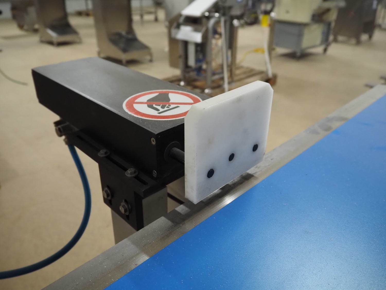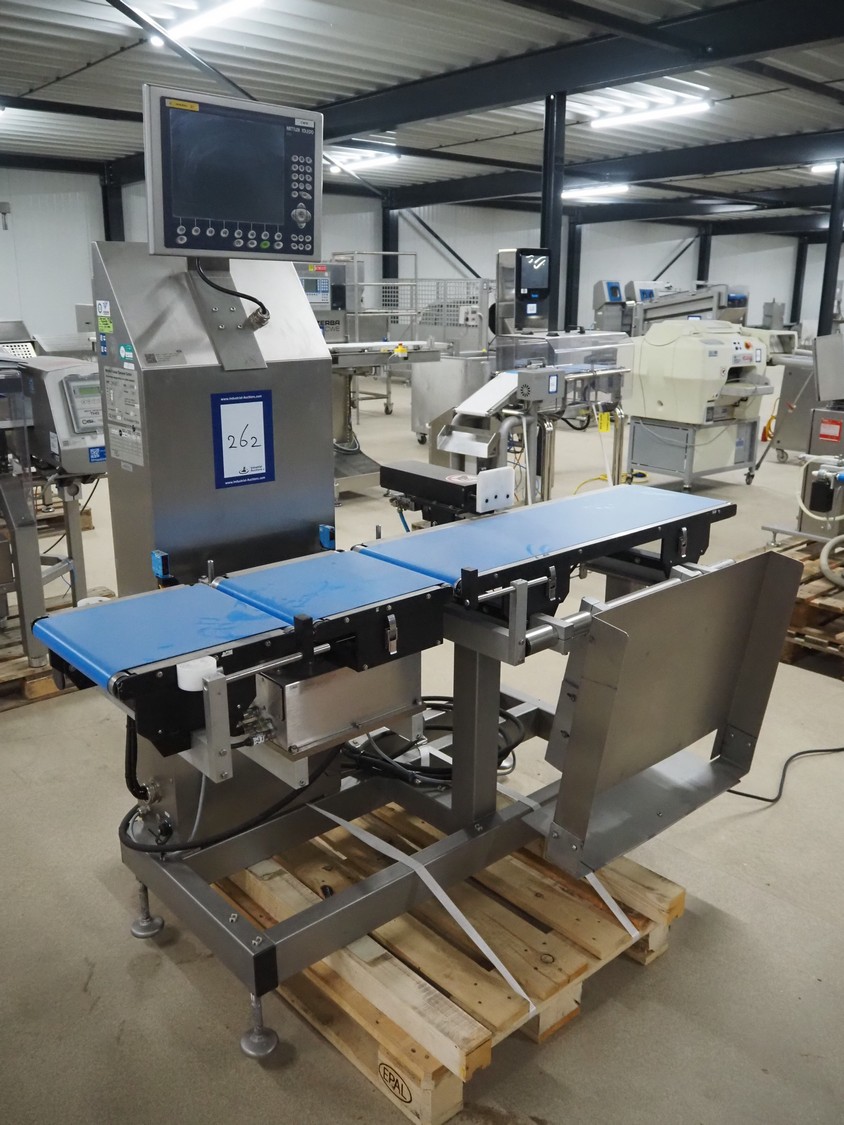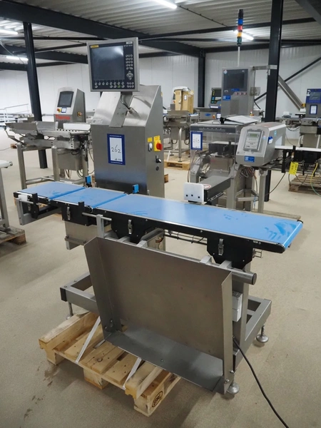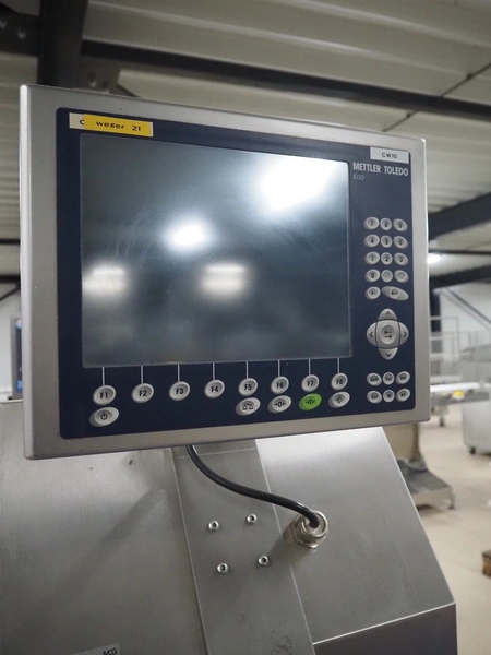 Mettler Toledo Garvens checkweigher with rejector, type: PAS3012, number: 17000537, year of construction: 2007, 230 V, 50/60 Hz, 600 kPa, maximum: 7500 gram, plastic belt, belt width: 300 mm, total dimensions: 1750 mm x 1000 mm x 1850 mm.