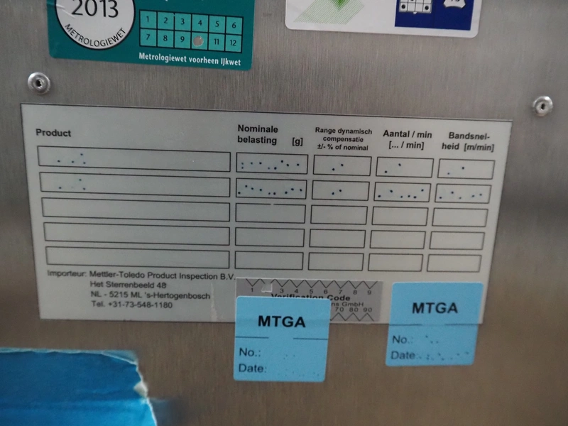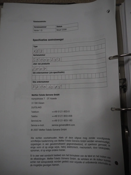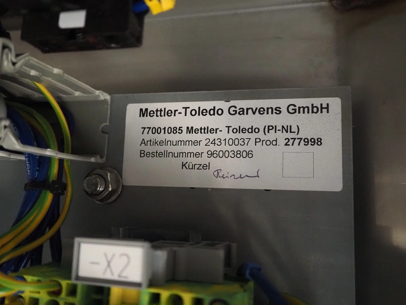 Mettler-Toledo Garvens GmbH checkweigher, type: XE 3, serial number: 35000253, year of construction: 2007, 230 V, 50 Hz, weighing range: 20-1500 gram, e=d= 1 gram, T= -1350 gram, plastic belt, belt width: 250 mm, total dimensions: 1050 mm x 700 mm x 1450 mm.