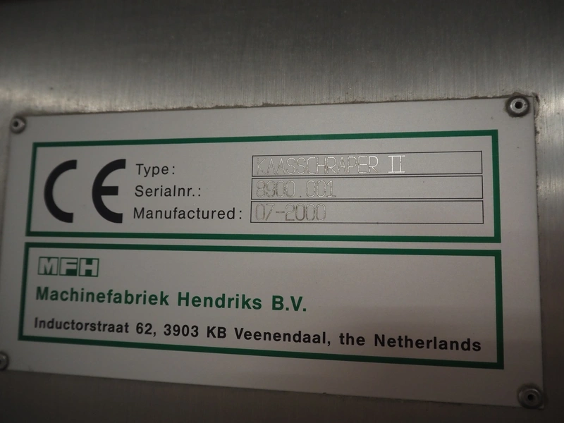 Machinefabriek Hendriks B.V. cheese scraper, type: KAASCHRAPER II, serial number: 8900.001, year of construction: 2000, clearance: 130 mm x 180 mm, total dimensions: 3400 mm x 1500 mm x 2280 mm.