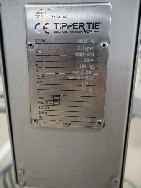 TipperTie mobile double clipper, model; KDCM 70, serial number: 4804-540, year of construction: 2014, 230 V, 50 Hz, 1.3 A, 0.3 kW, dimensions: 1280 mm x 850 mm x 1830 mm.