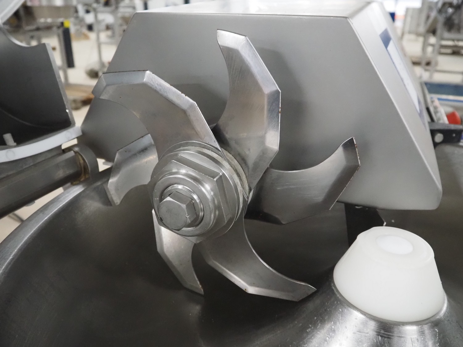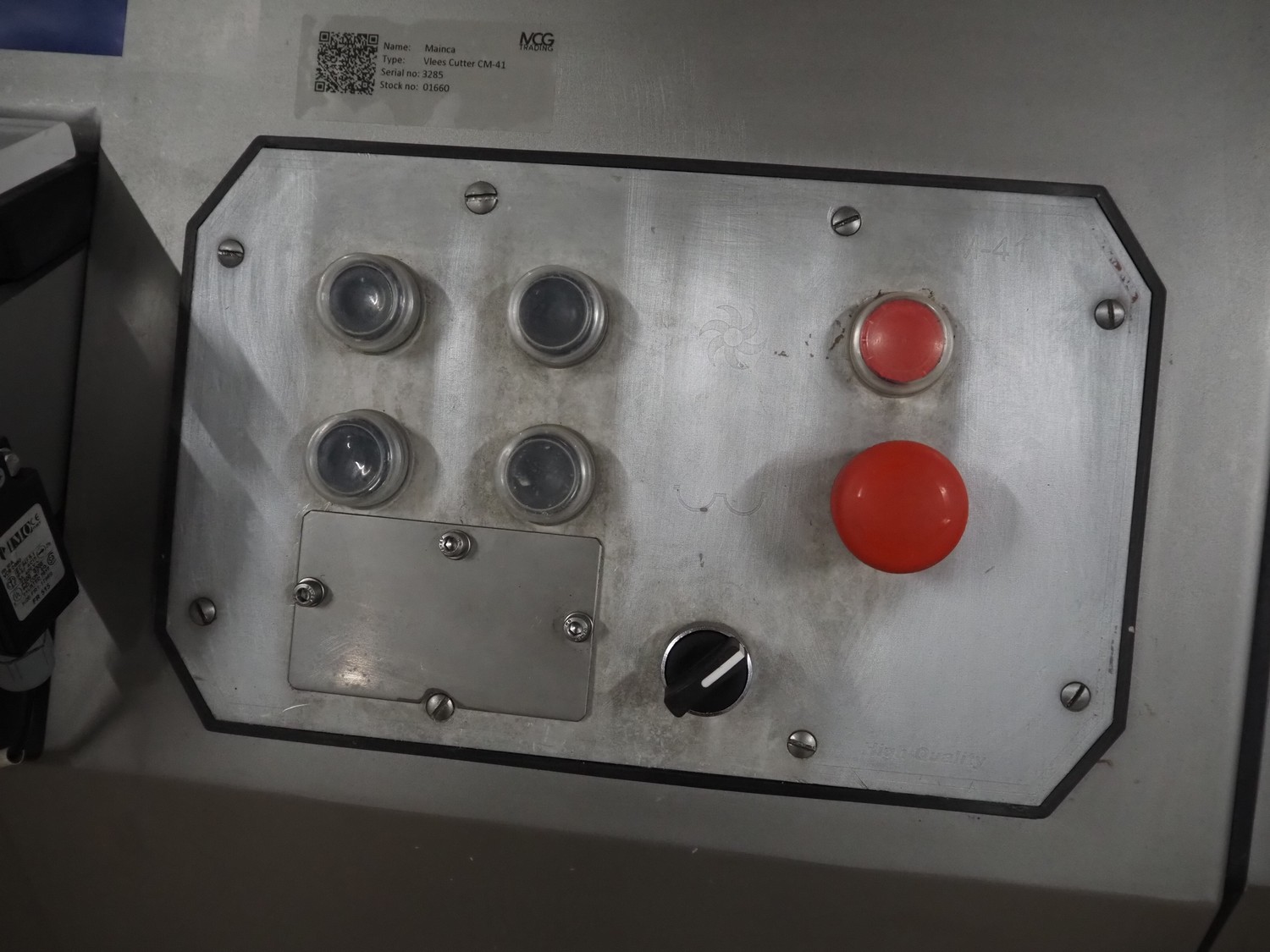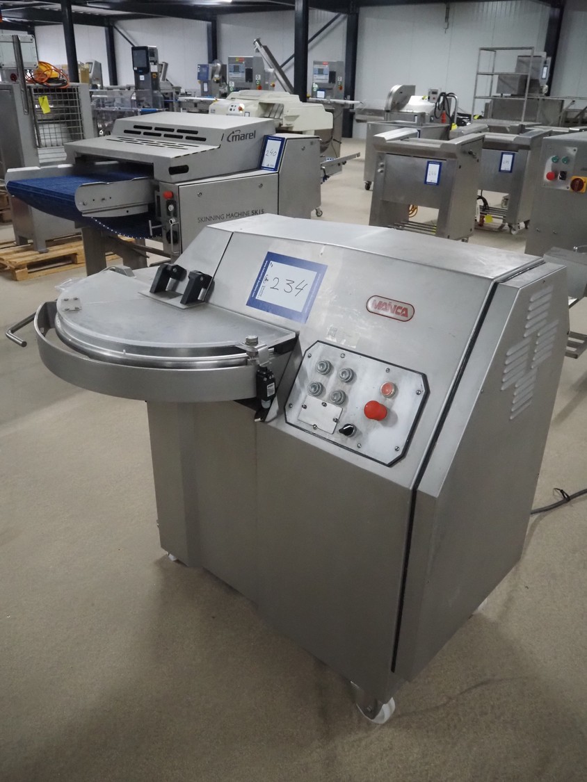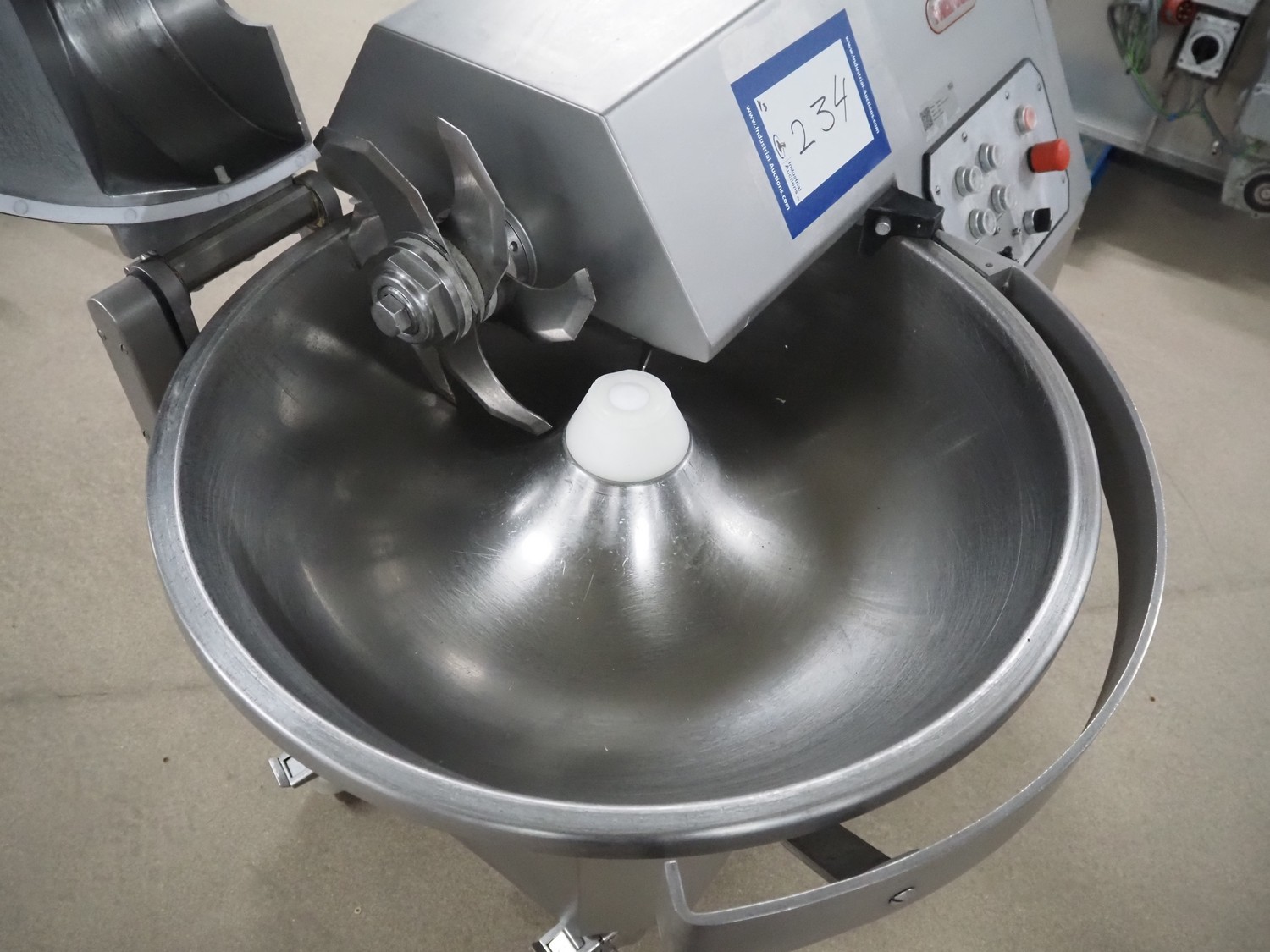 Mainca mobile cutter, model: CM-41, number: 3285, year of construction: 2010, 400 V, 3 Ph, 50 Hz, 19 A, 8.6 kW, s/s bowl, volume bowl: 40 liter, s/s knives, 2 speeds, dimensions: 1300 mm x 900 mm x 1100 mm. Including extra knife set.