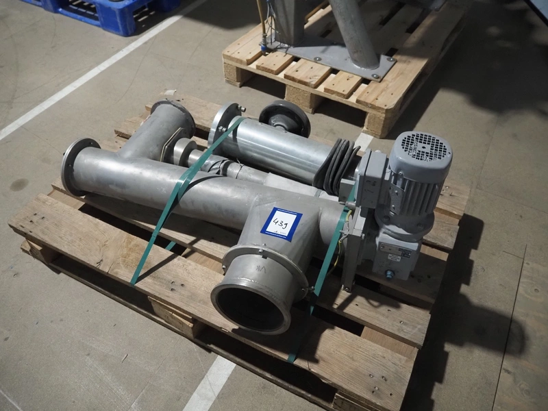 Pallet with powder dosing screw, dimensions: 1200 mm x 800 mm x 500 mm.