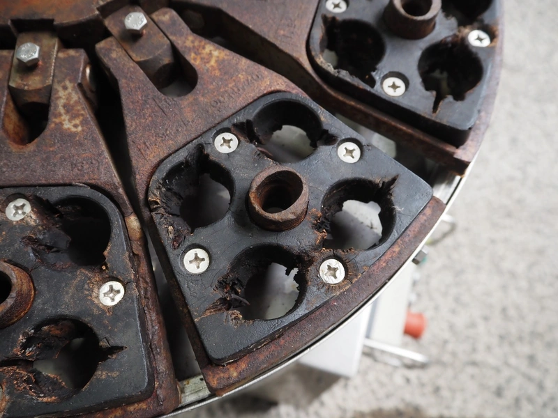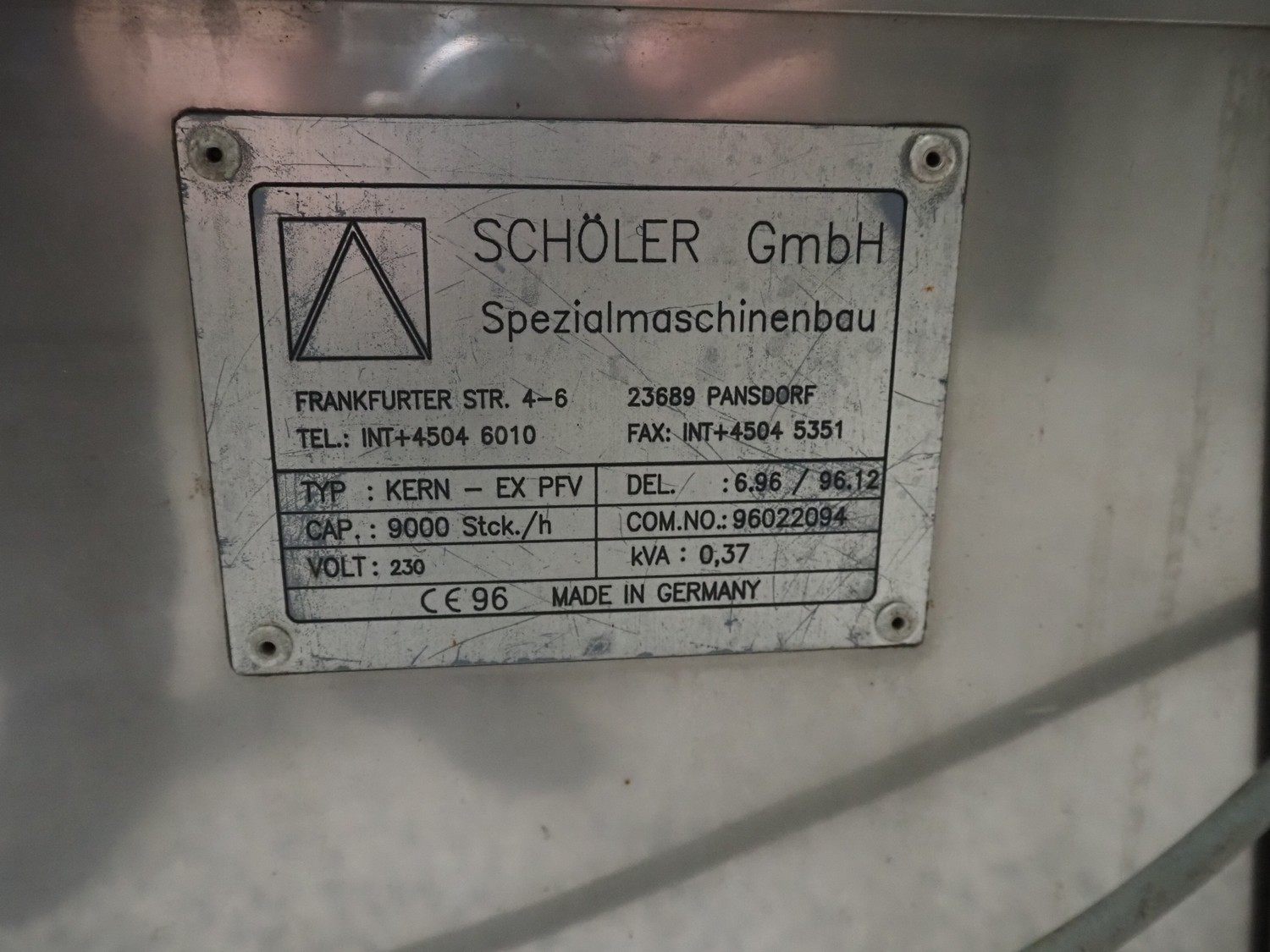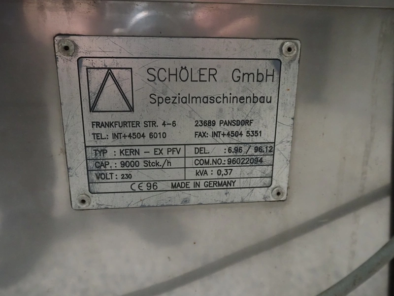 Schöler GmbH plum stoner, type: KERN-EX PFV, 230 V, 0.37 kVa, capacity: 9000 per/hour, (10x) 4 stoners, total dimensions: 950 mm x 640 mm x 1050 mm.
