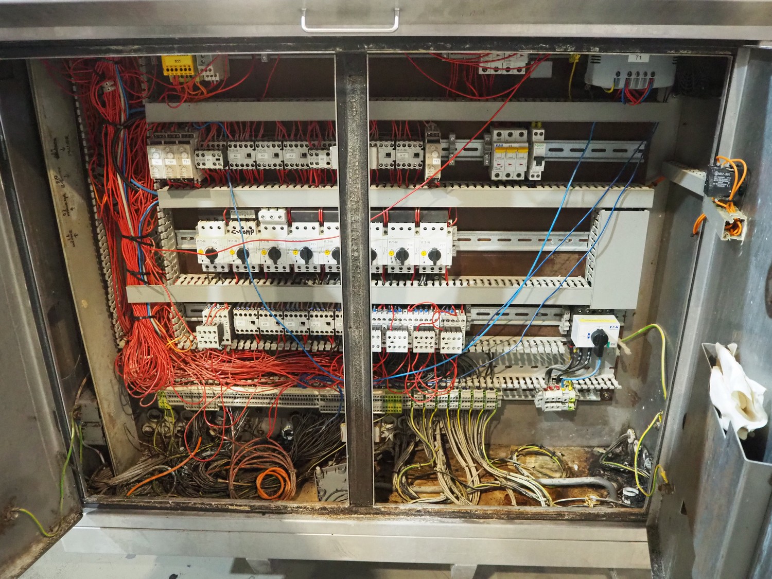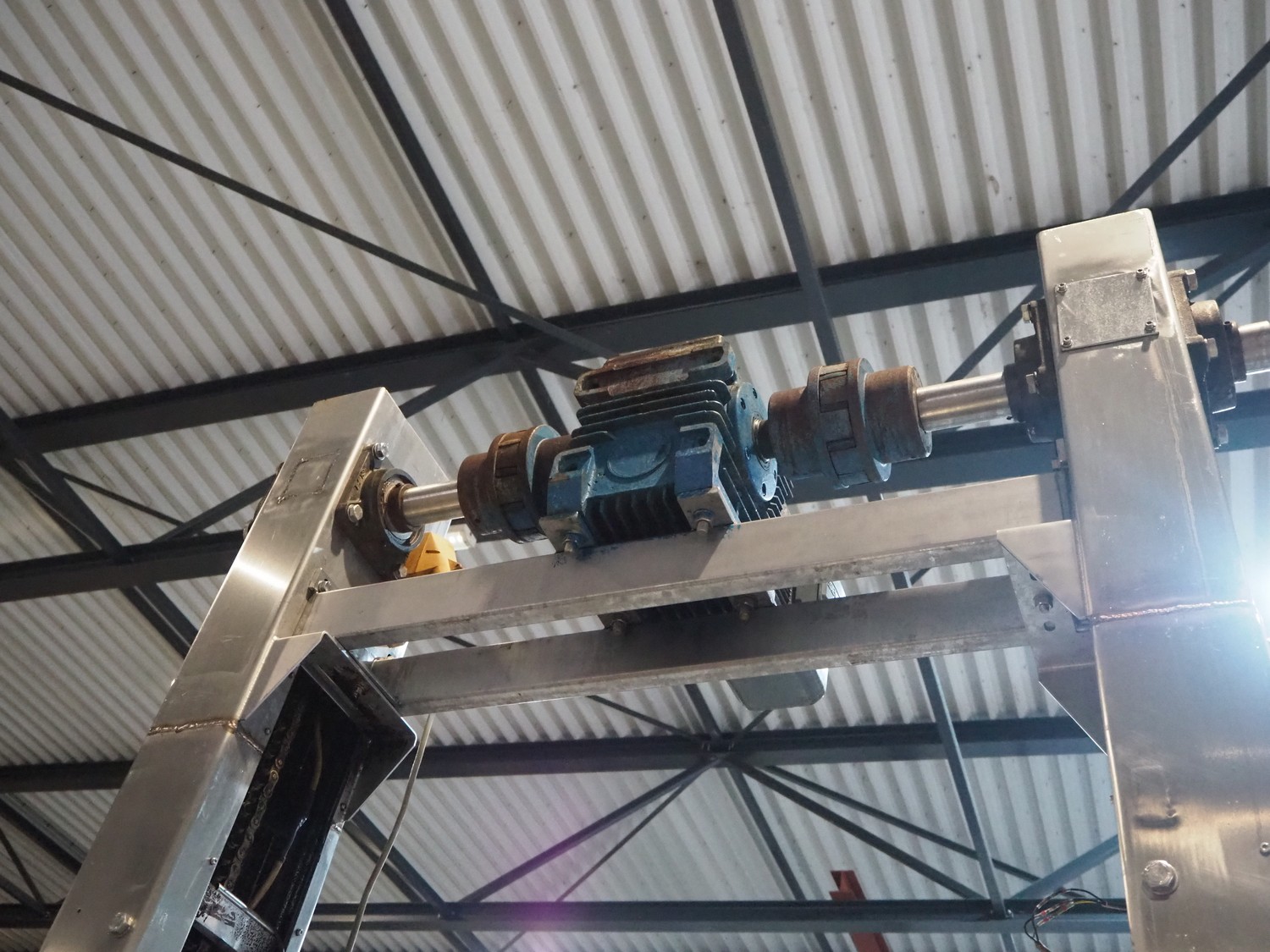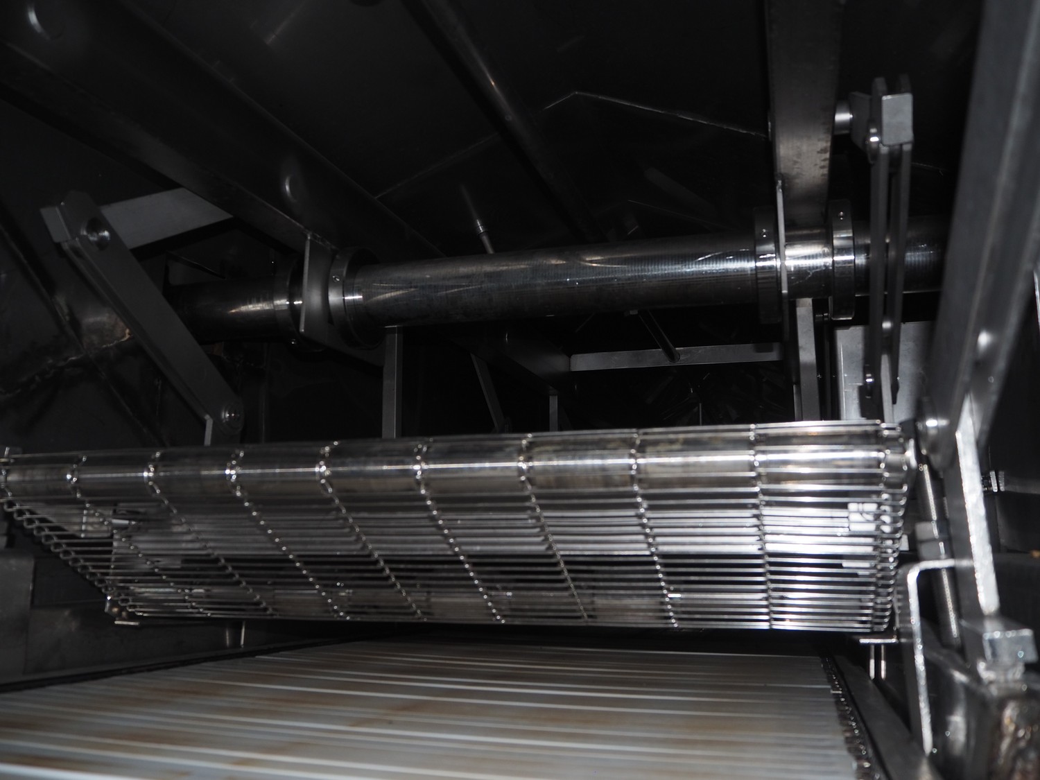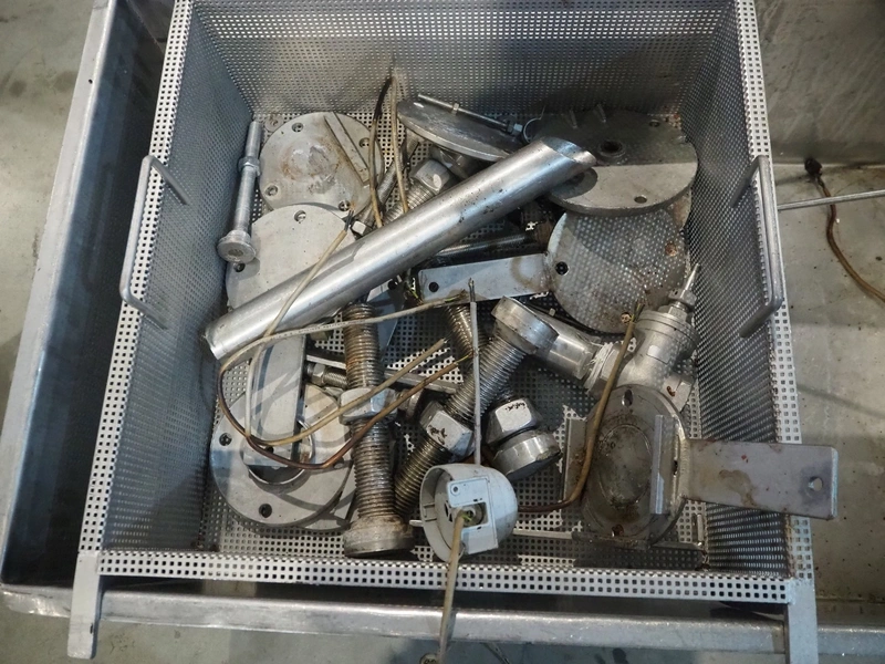 Tetra Laval Food belt fryer, type: BRN 4500/700, machine number: BRN4500/700-1046, year of construction: 1995, 415 V, 3 Ph, 50 Hz, 17.87 A, 6.47 kW, weight: 4140 kg, s/s belt, belt width: 700 mm, total dimensions: 8300 mm x 2000 mm x 3450 mm. Including s/s mobile filter tub, dimensions: 1300 mm x 750 mm x 500 mm. Without rollies.