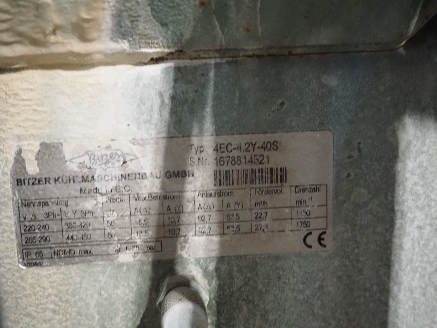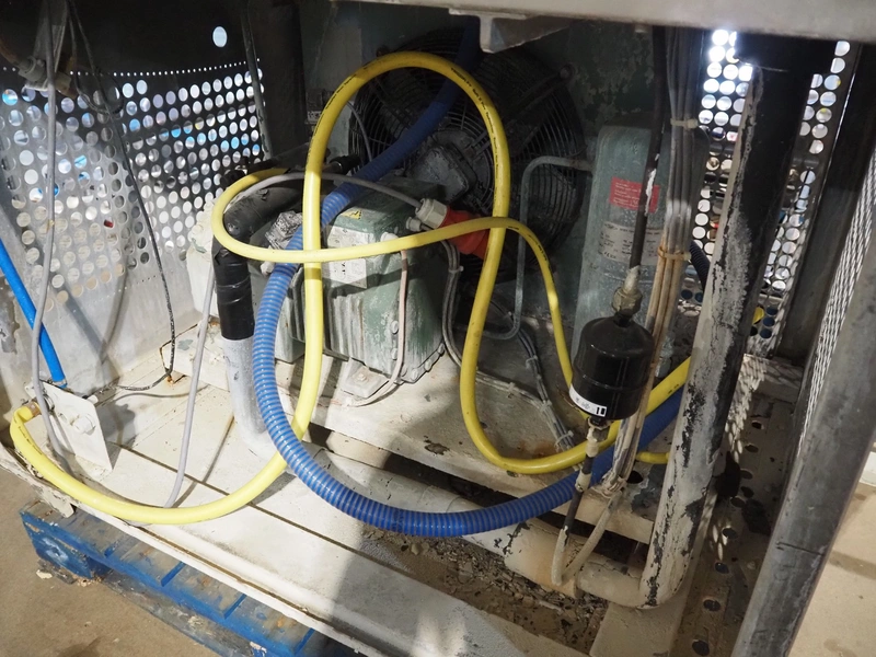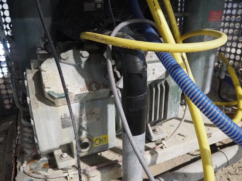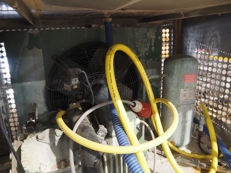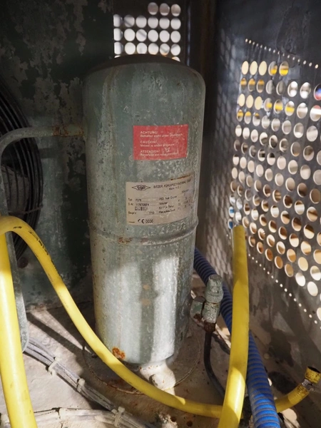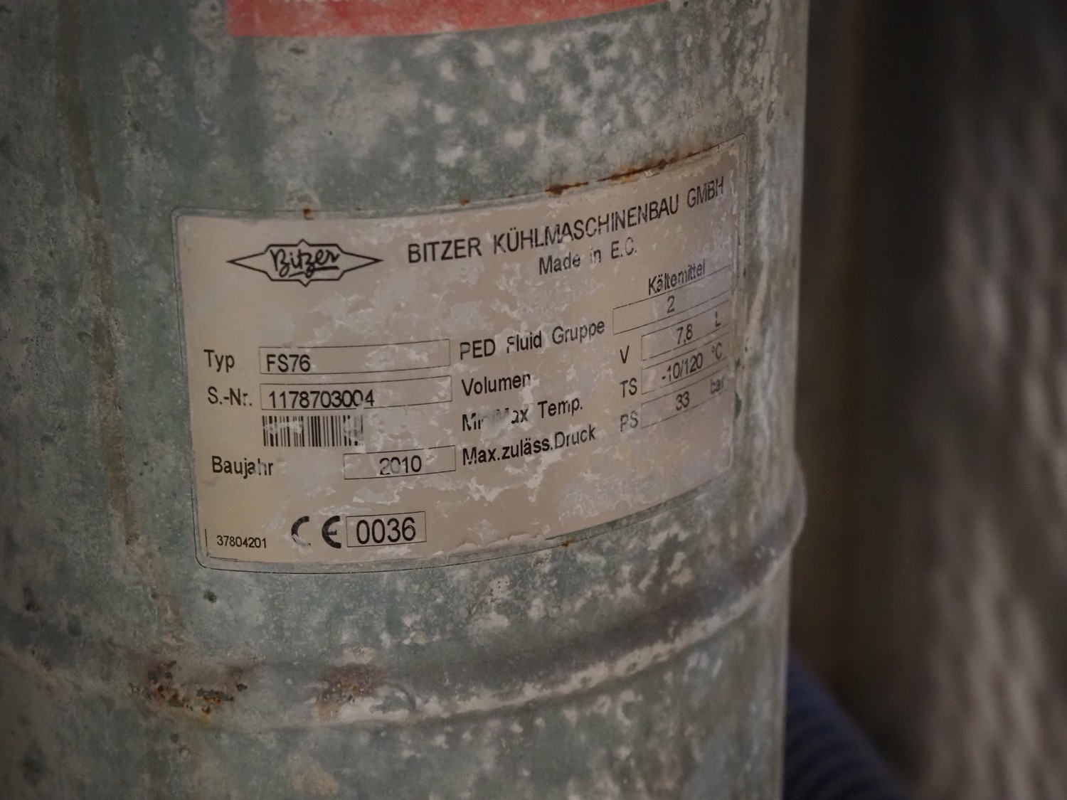 Funk flake ice machine, working width: 560 mm, Bizerba cooling and condensing unit, compressor type: 4EC-4.2Y-40S, serial number: 1678814521, 22.7/27.4 m³ per hour, dimensions: 1250 mm x 1000 mm x 1270 mm.