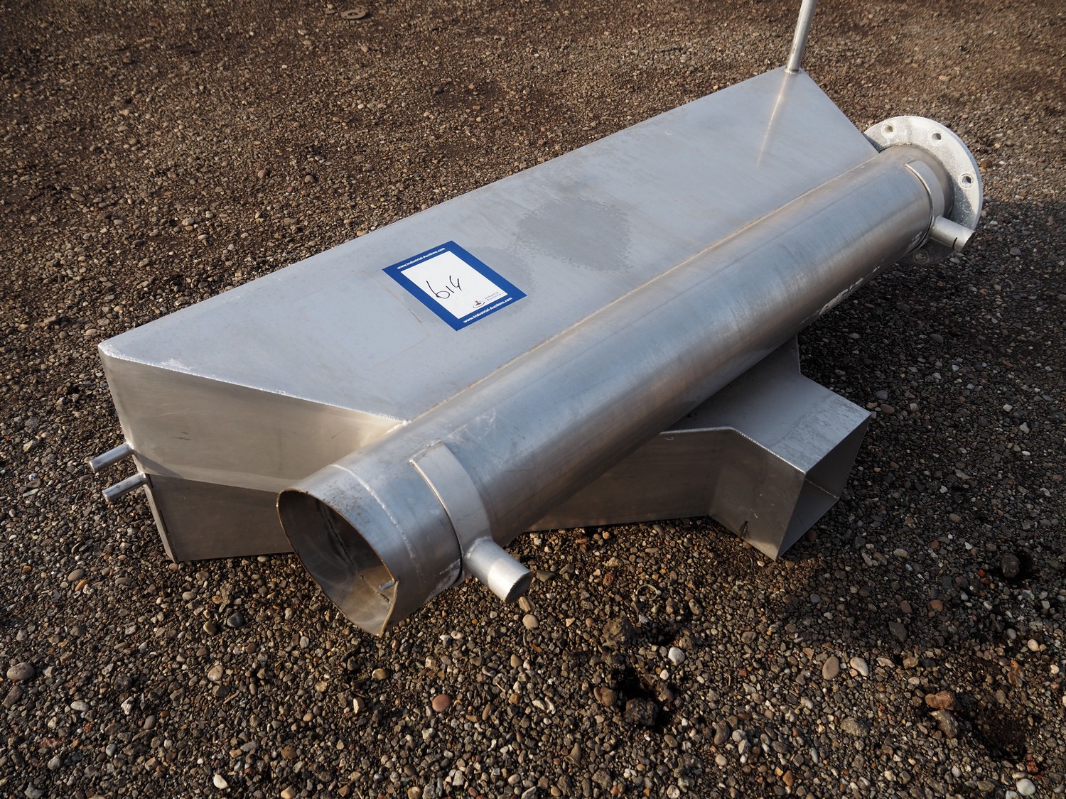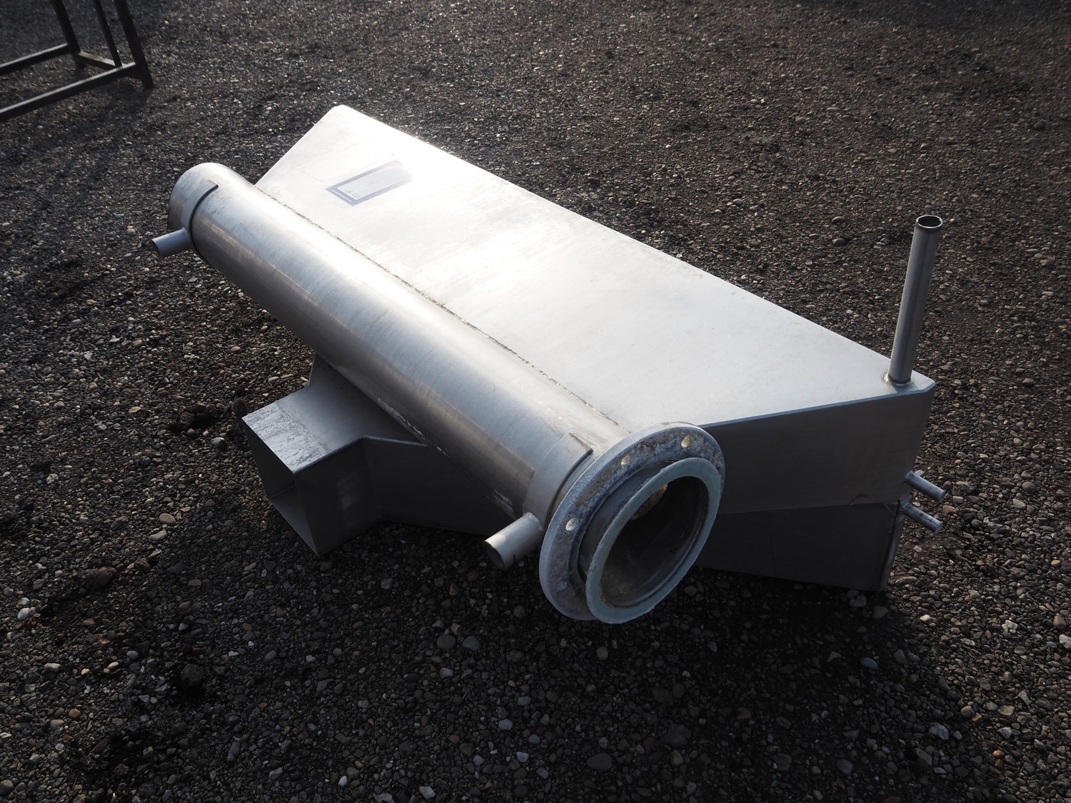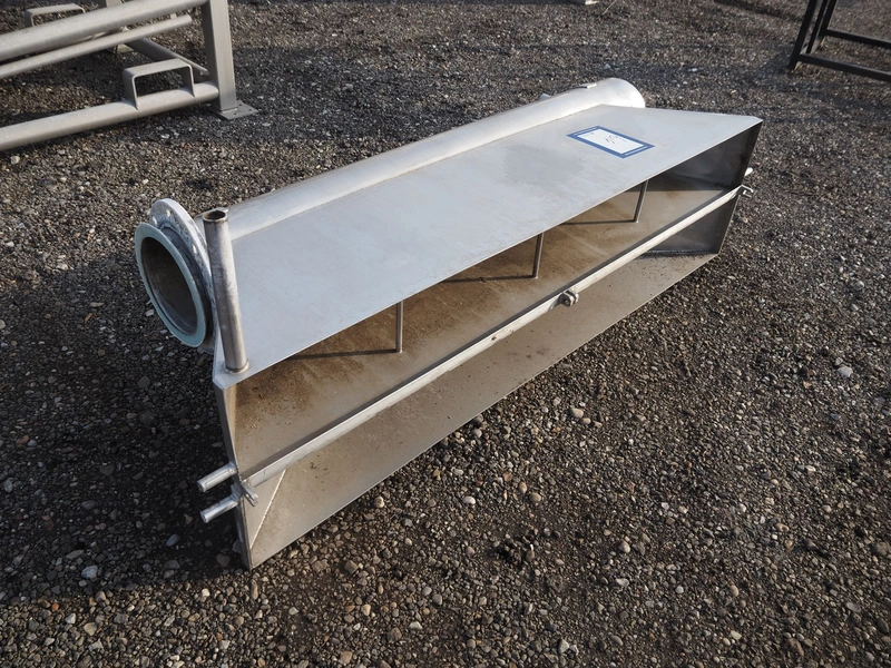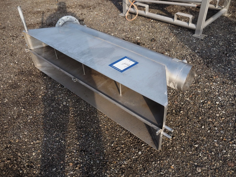 S/s infeed hopper, dimensions: 1880 mm x 750 mm x 750 mm.