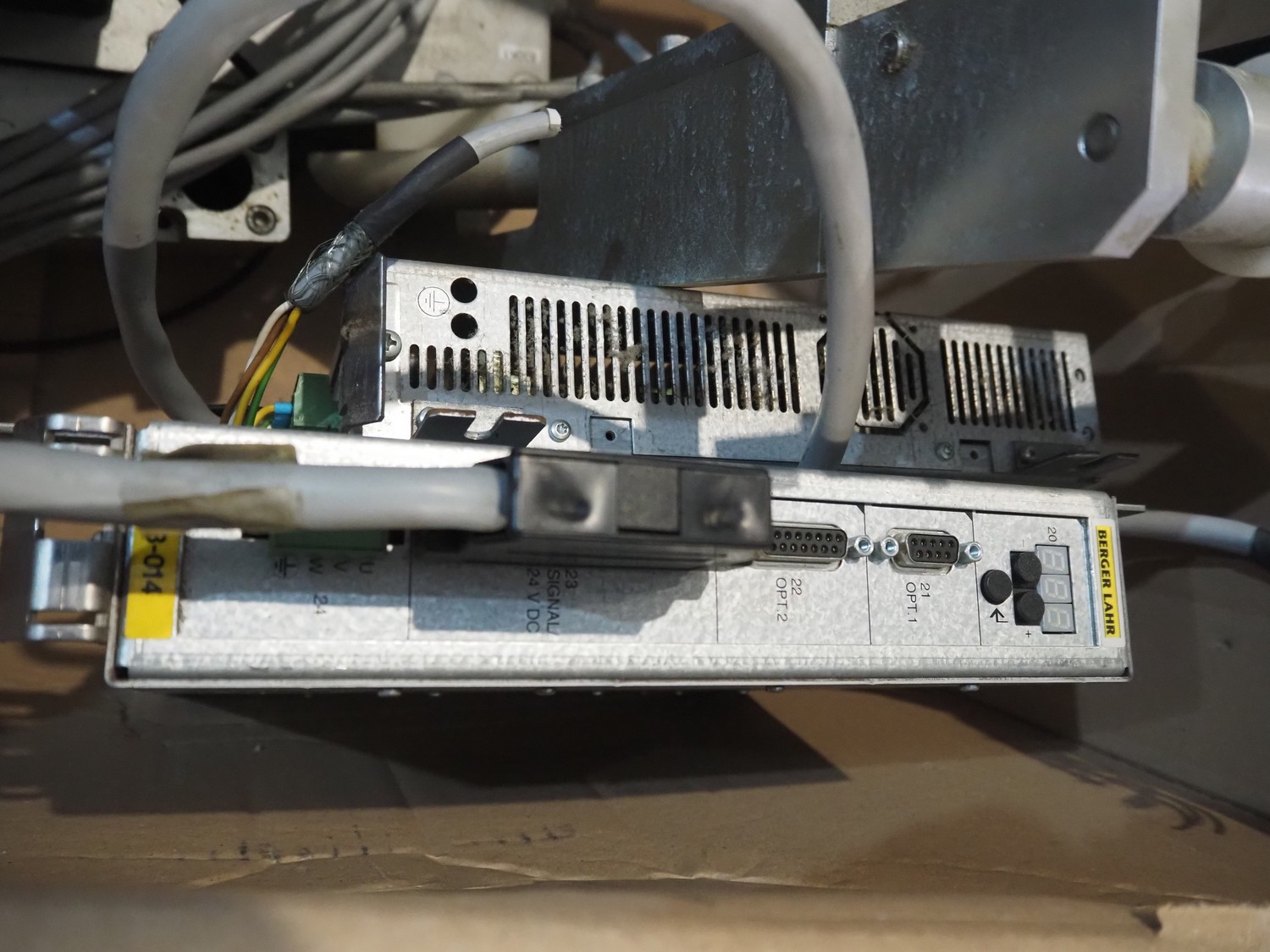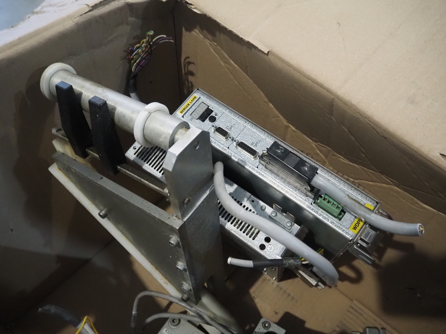 Box with Berger Lahr labelling machine, dimensions: 680 mm x 680 mm x 400 mm.