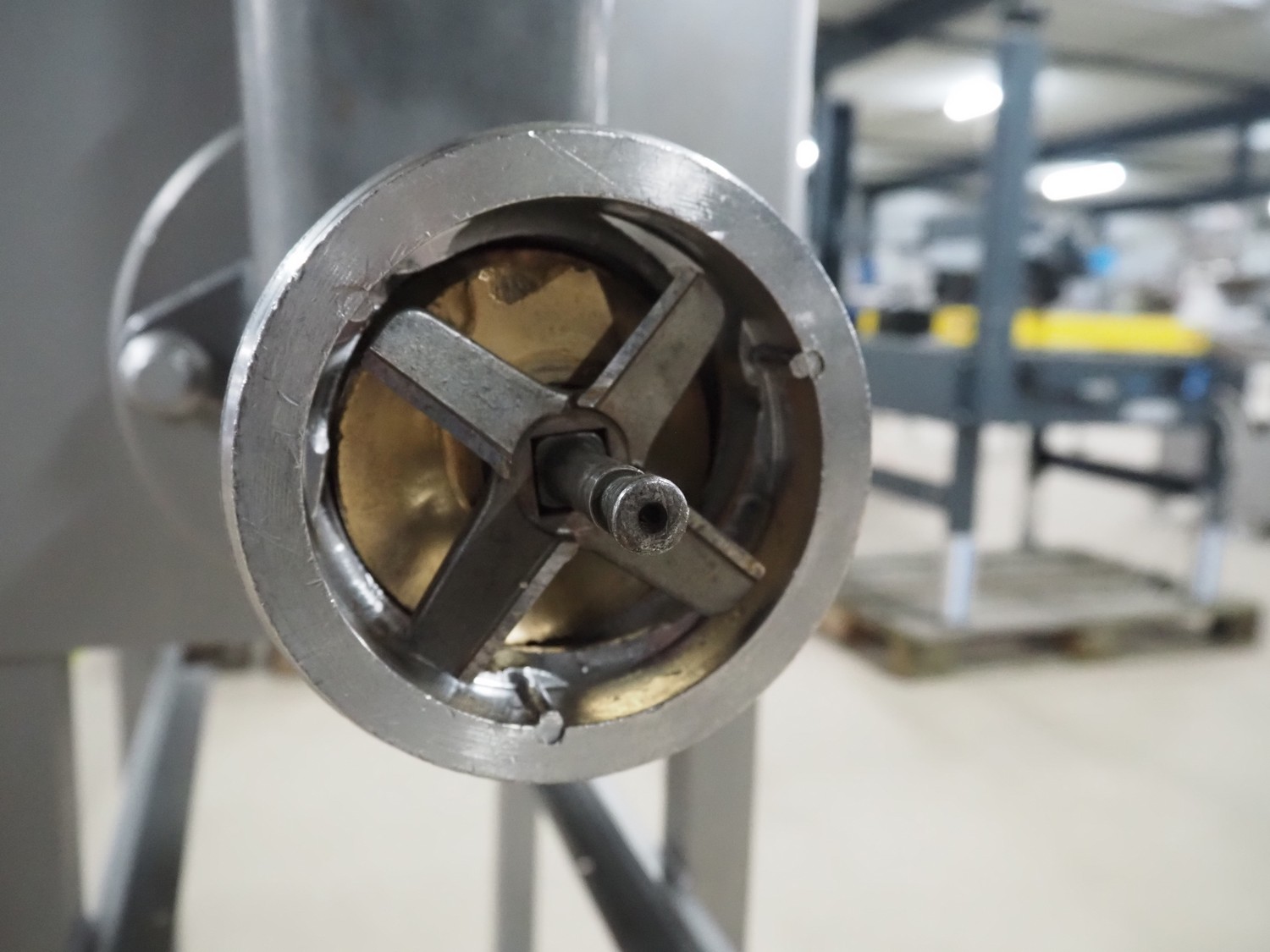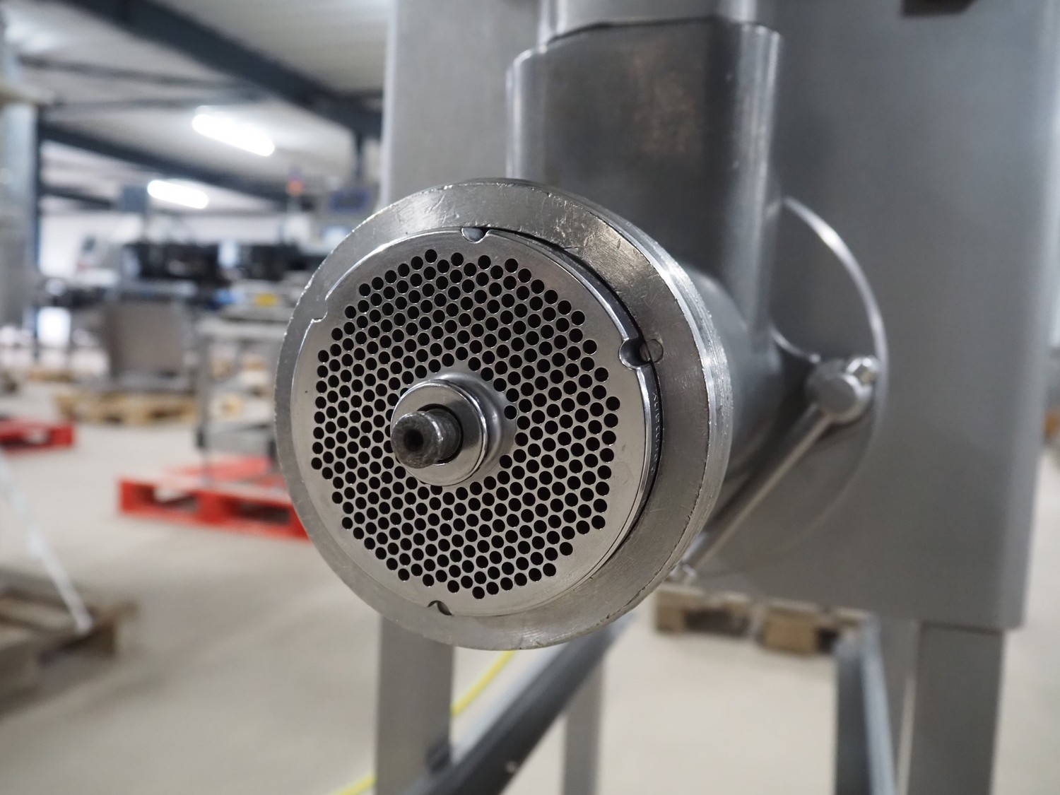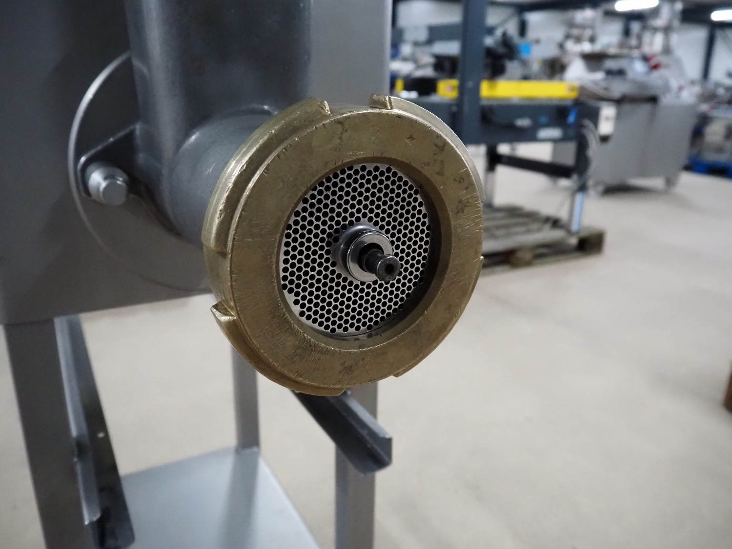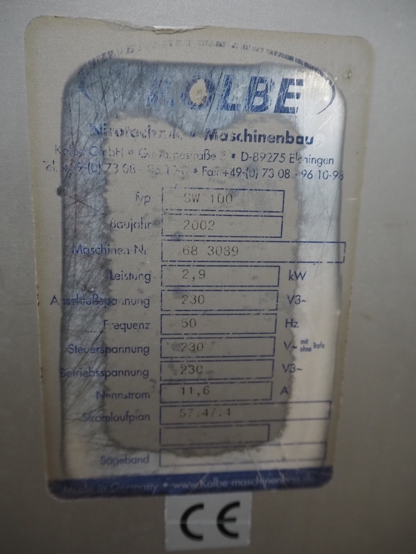 Kolbe grinder, type: SW 100, machine number: 68 3089, year of construction: 2002, 230 V, 3 Ph, 50 Hz, 11.6 A, 2.9 kW, diameter plate: 98 mm, total dimensions: 900 mm x 550 mm x 1320 mm.