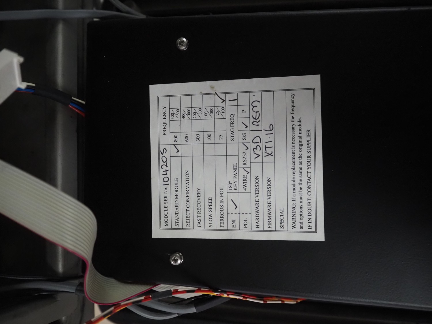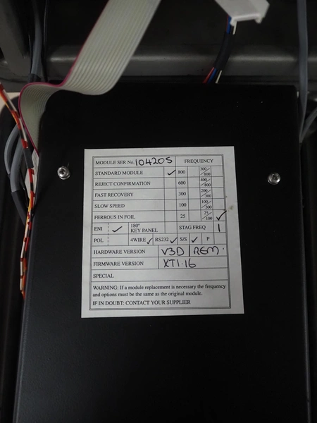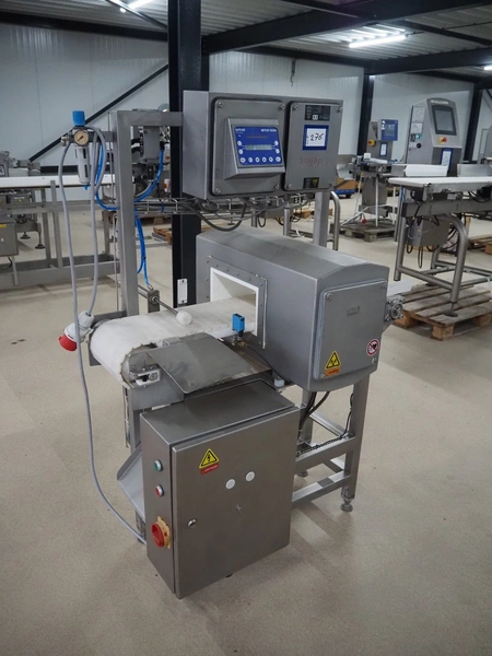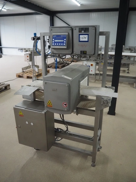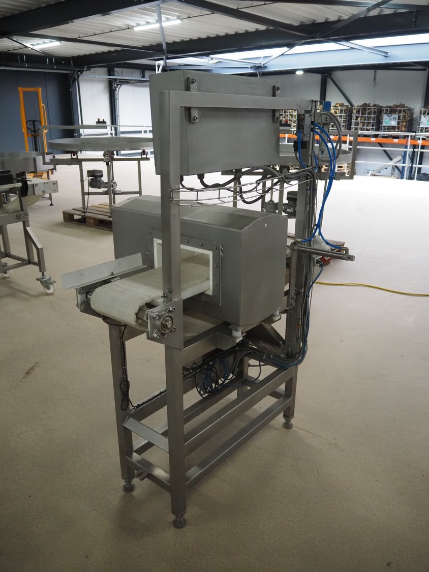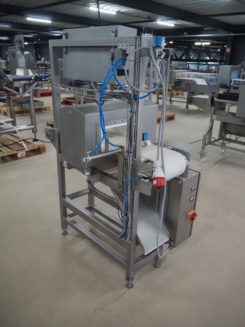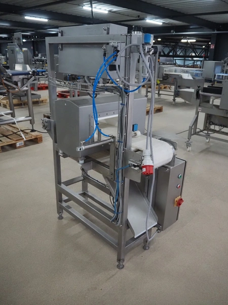 Safeline / Mettler Toledo metal detector with rejector, 100-240 V, 50/60 Hz, 330 W, plastic belt, belt width: 210 mm, clearance: 250 mm x 90 mm, total dimensions: 1100 mm x 800 mm x 1530 mm.