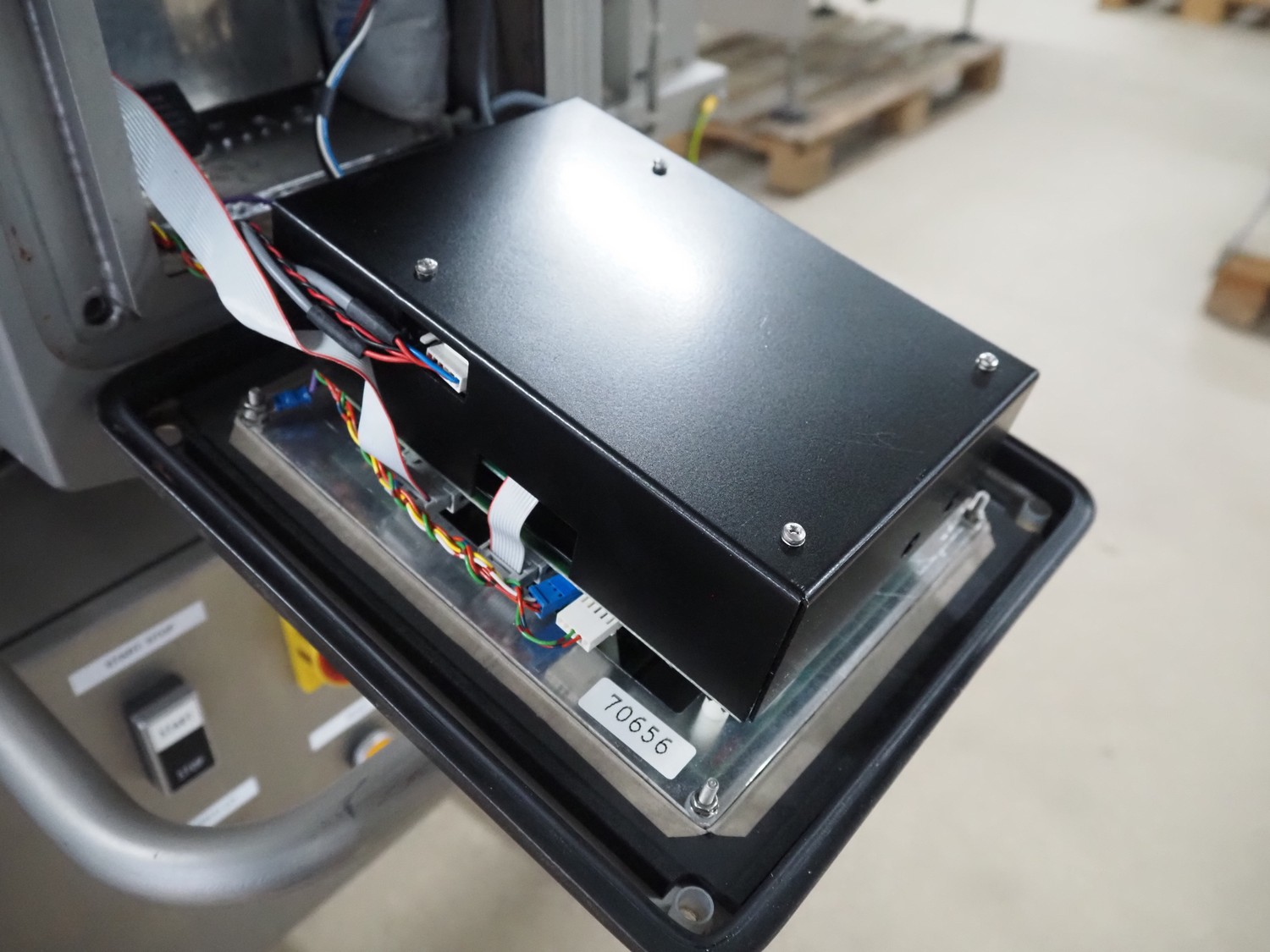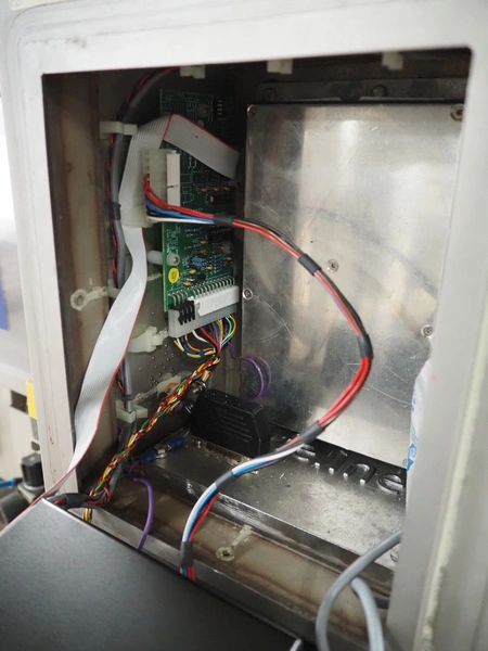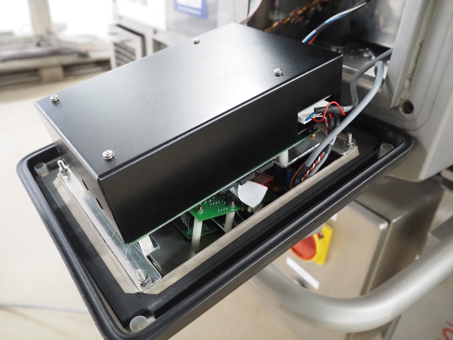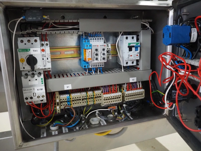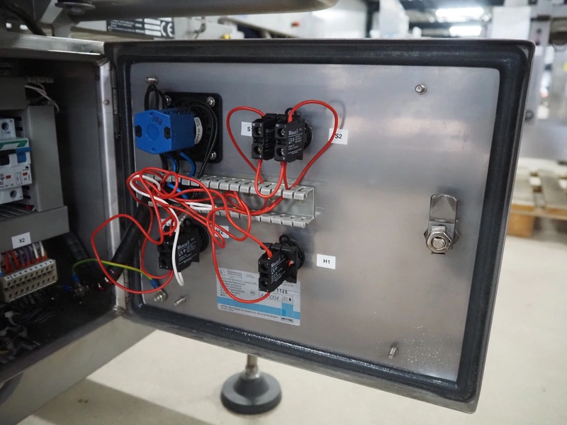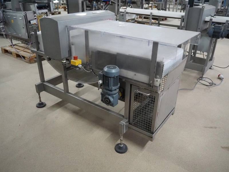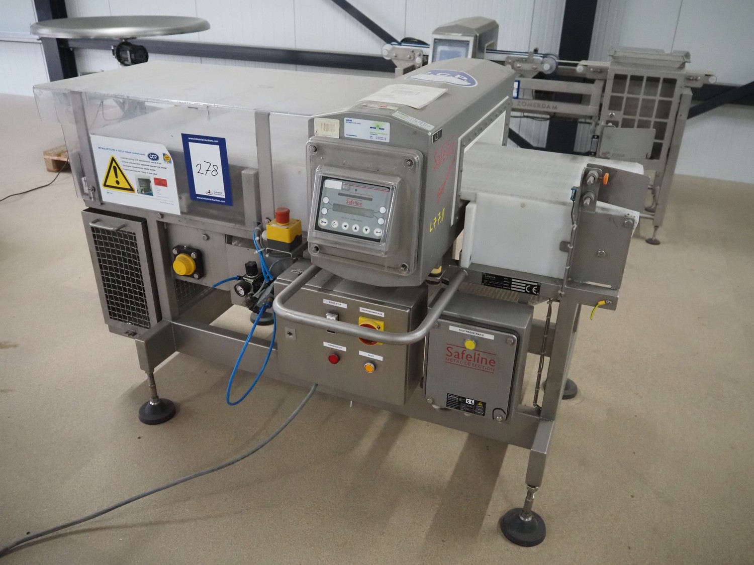 Safeline metal detector, serial number: 41262, year of construction: 4/2000, 100-240 Vac, 50/60 Hz, 330 W, plastic belt, belt width: 430 mm, clearance: 450 mm x 95 mm, total dimensions: 1750 mm x 1050 mm x 1130 mm.