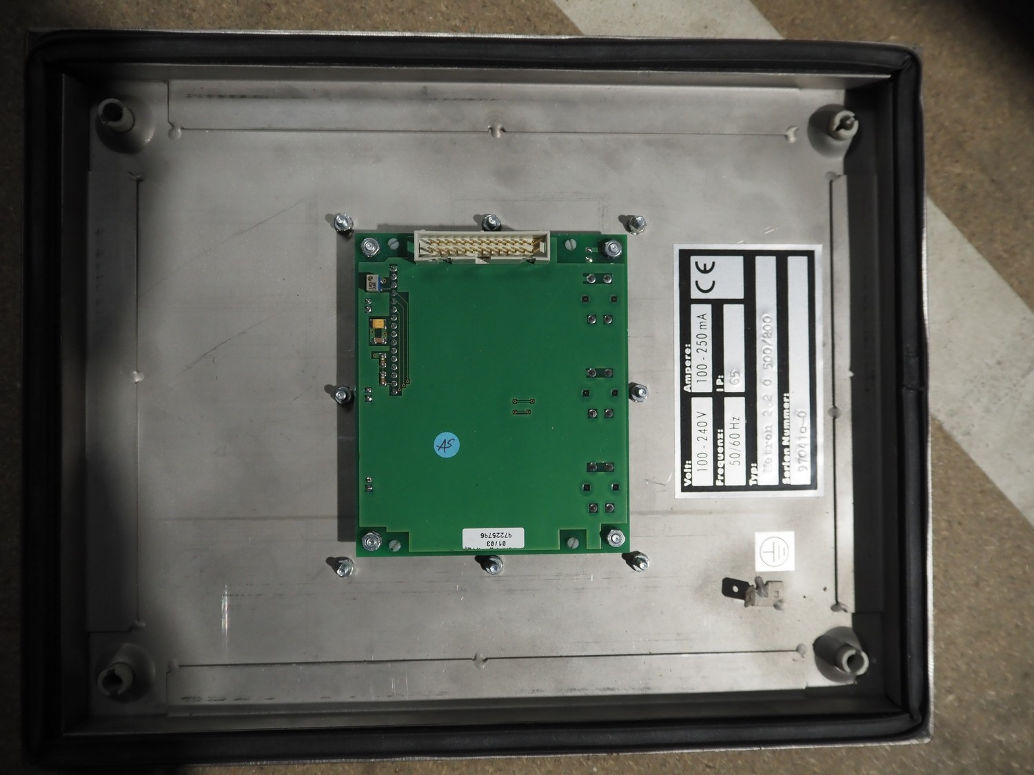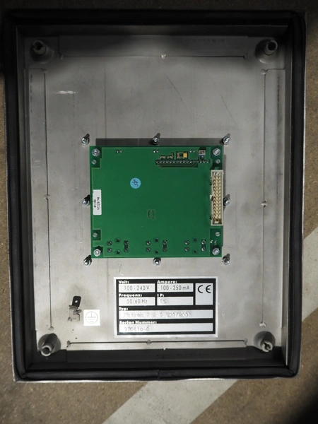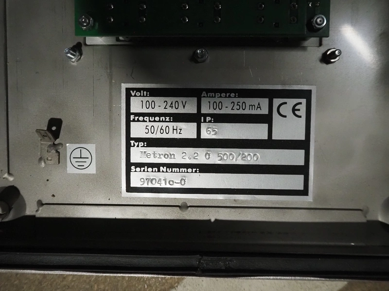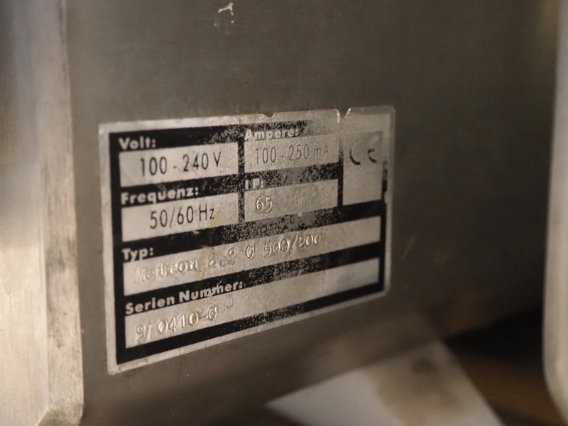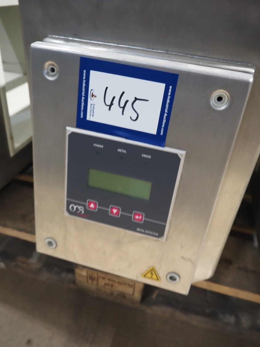 OCS metal detector head, type: Metron 2.2 C 500/200, serial number: 970410-0, 100-230 V, 50/60 Hz, 100-250 mA, clearance: 500 mm x 200 mm, total dimensions: 900 mm x 300 mm x 470 mm.