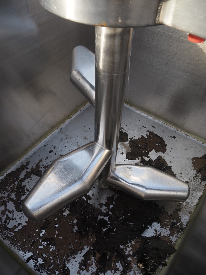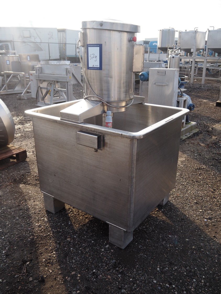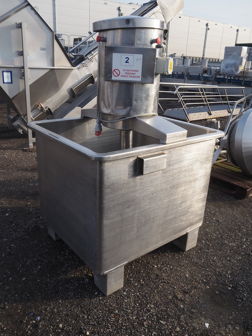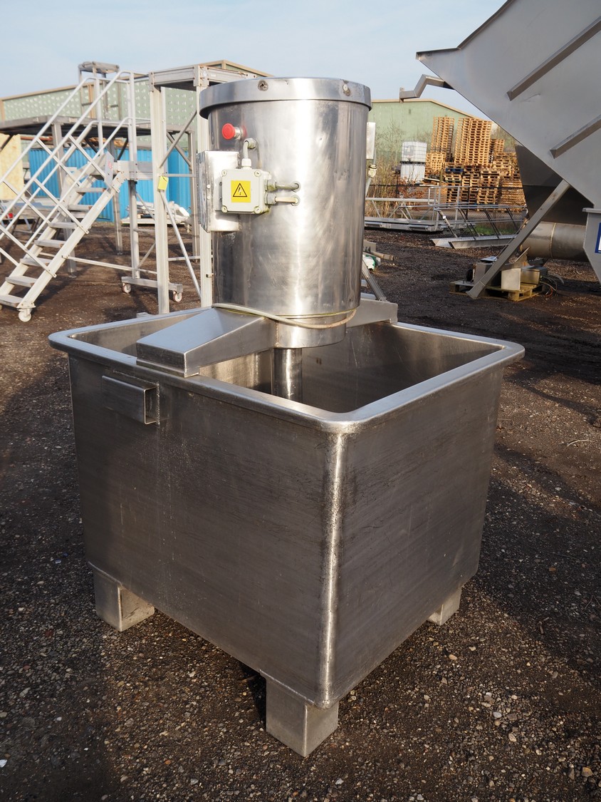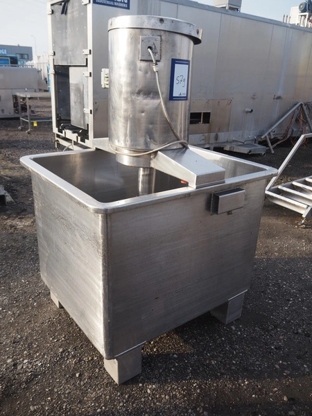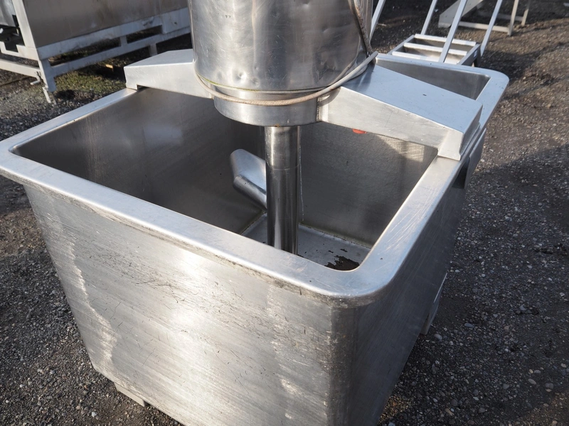 S/s mixing tub, inside dimensions: 1110 mm x 920 mm x 850 mm, total dimensions: 1230 mm x 1050 mm x 1850 mm.