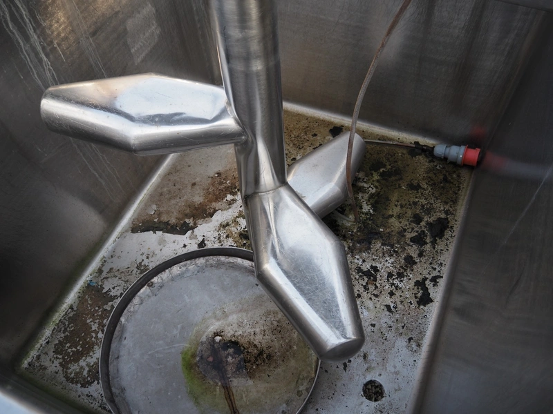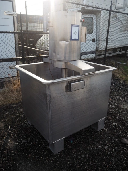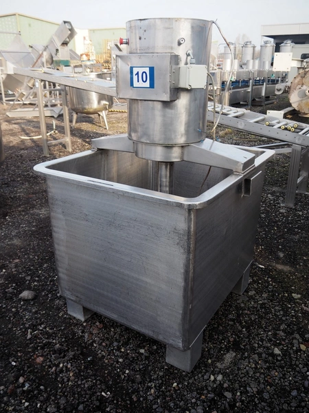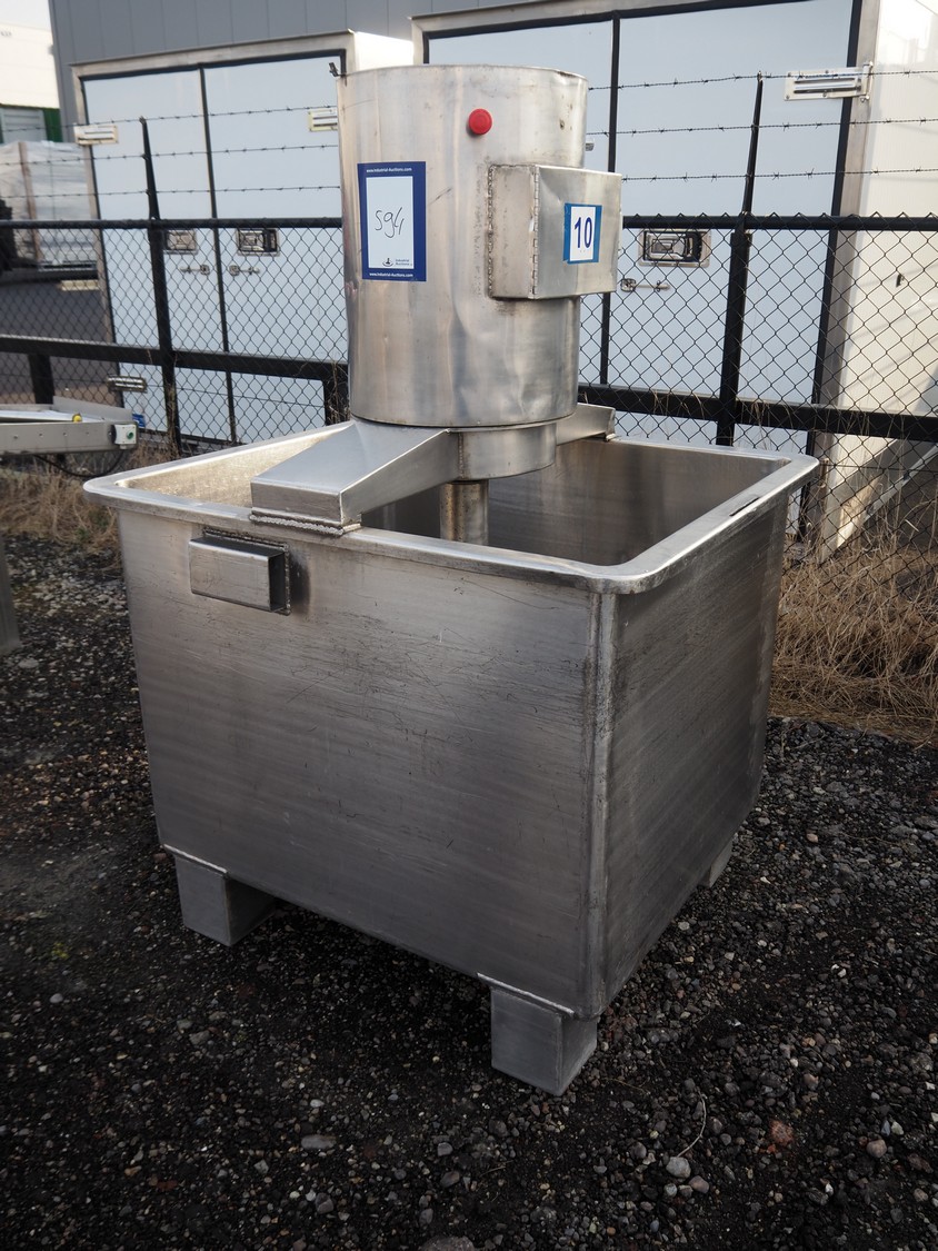 S/s mixing tub, inside dimensions: 1110 mm x 920 mm x 850 mm, total dimensions: 1230 mm x 1050 mm x 1850 mm.