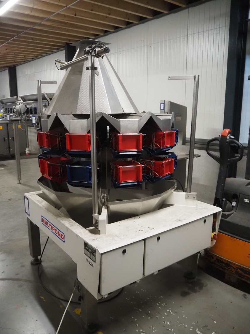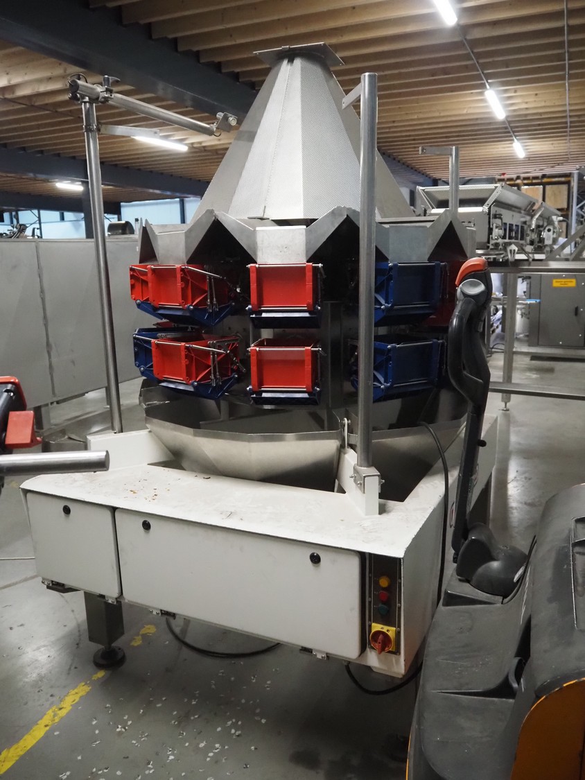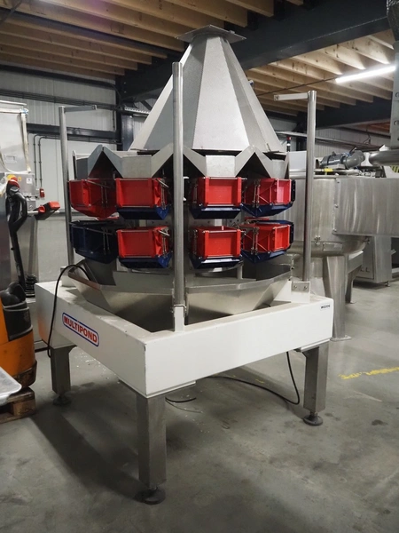 Multipond 10 head multihead weigher, type: MP1024, factory number: 567, year of construction: 1993, weighing capacity: 2400 g, dimensions: 1600 mm x 1400 mm x 2200 mm.